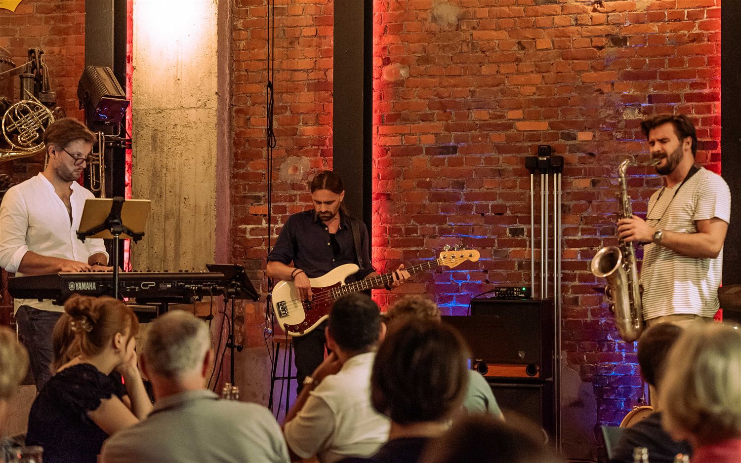 Terrasjesweer buiten, maar in het MuzeCafé waren de jazzliefhebbers op post voor een stomend eerste MJO Invites concert van het nieuwe seizoen. Het Viking Trio en Lennert Baerts speelden er een stevige set. (foto's Ann Jordens)82885