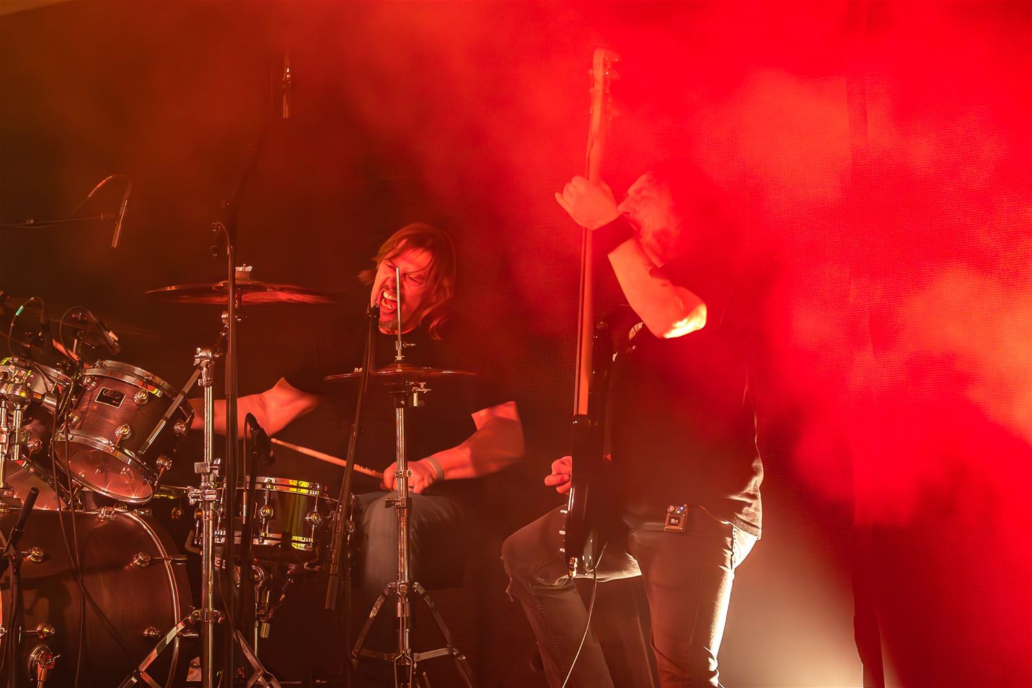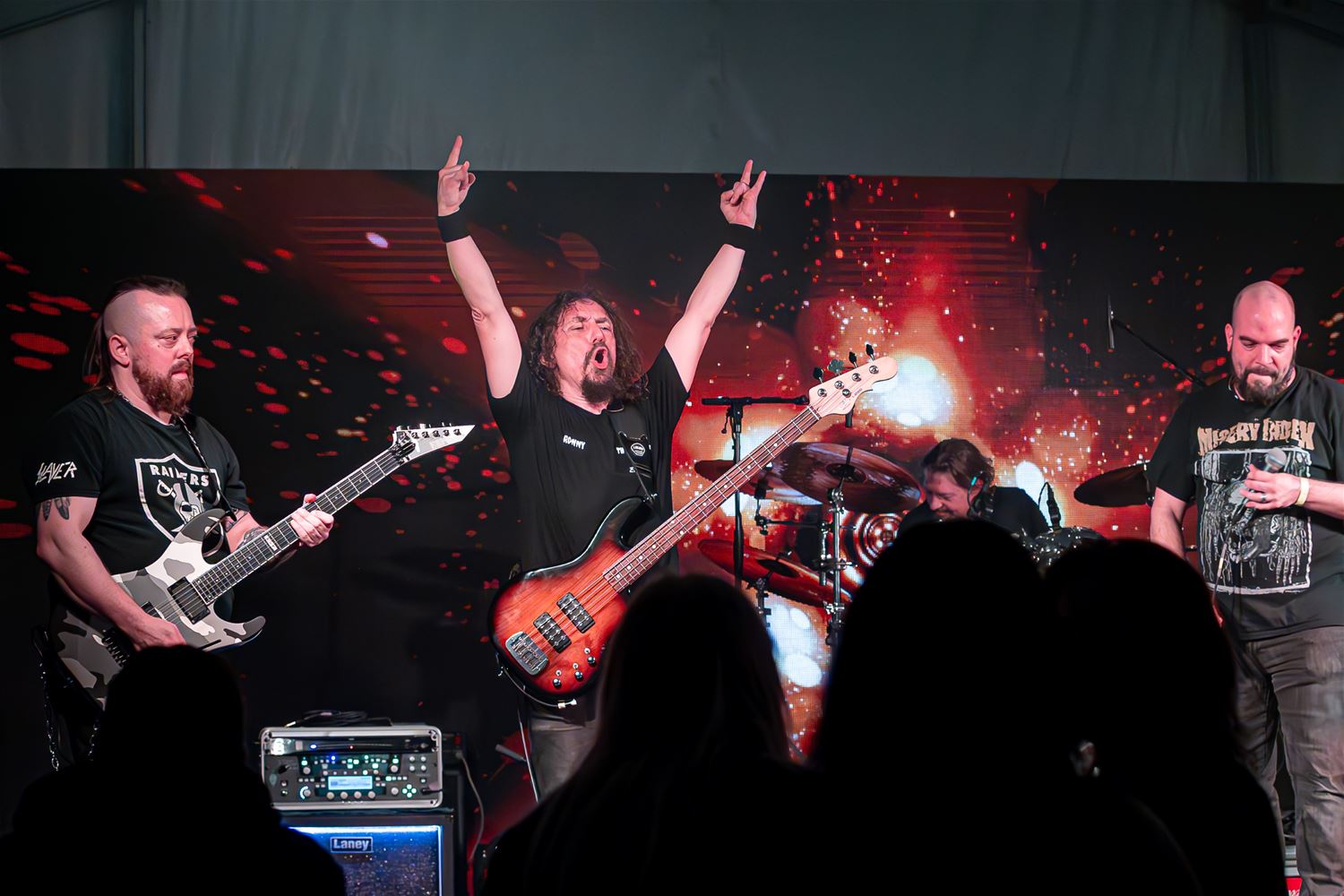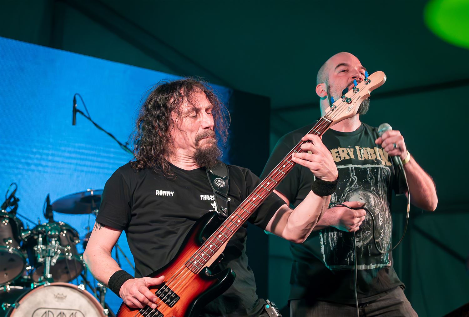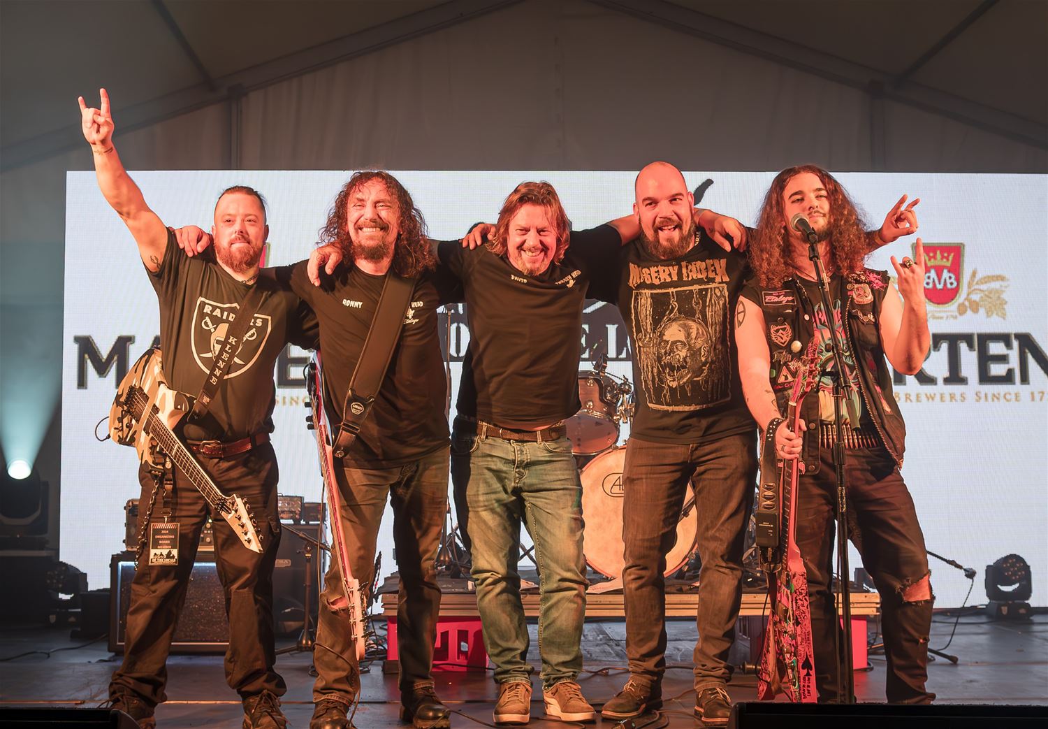 Met vijf heel verschillende bands koos The Night of the Locals dit jaar voor een programmatie in de breedte. Living Room Setup mocht openen voor een nog vrij lege tent. Het trio uit Hasselt-Genk-Maasmechelen speelt meestal easy-listening muziek maar koos nu voor meer uptempo nummers. Goose Blues uit Hasselt speelde voor het eerst in deze bezetting.Muzikanten met heel wat 'levenservaring' zetten knappe Chicagoblues neer die zeker kan evolueren naar de affiches van de bluesclubs of bluesfestivals.Thrashhead, een eerder jonge band hier uit de streek, deed de decibels voor het eerst pieken. Heavy metal met de fans op de eerst rij ... het dak ging net niet van de tent af. Opmerkelijke versie van Pink Floyd klassieker 'Another Brick in the wall' overigens. En dan was het de beurt aan de Locals zelf. Robert Quitens had zijn discipelen rond zich verzameld voor een stevige rockset. Met ook een dosis pech, enerzijds werden ze even opgehouden door een technisch probleem en anderzijds moest zanger Peter Bilterest vechten tegen stemproblemen, toch haalde hij het einde van de set. Tussendoor kwam Tony Sempels - Masked Singergewijs - opduiken in een hondenpak om een nummer mee te zingen. Het was al rond half één toen Rocco & Arturo van We Two met 'family' het podium bestegen. De showbeesten die eerder op de dag elders gespeeld hadden, gingen er nog even enthousiast tegen aan, rockklassiekers, doorregen met knappe gitaarsolo's , de zangkwaliteit van Arturo gecombineerd met het showgehalte van Rocco. Het publiek genoot van deze afslsluiter van de zilveren editie van de Locals. (foto's Roman Marytka)79915