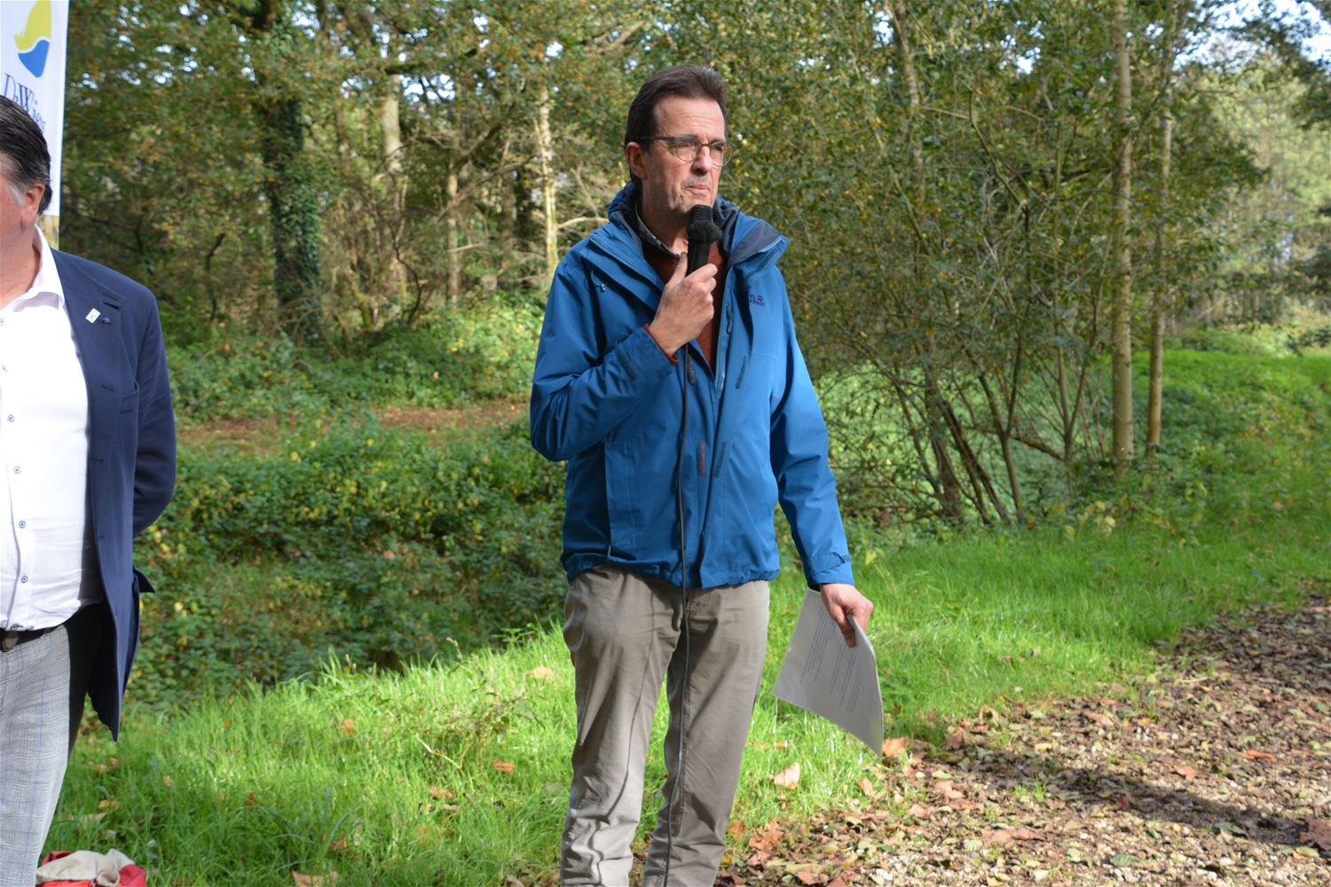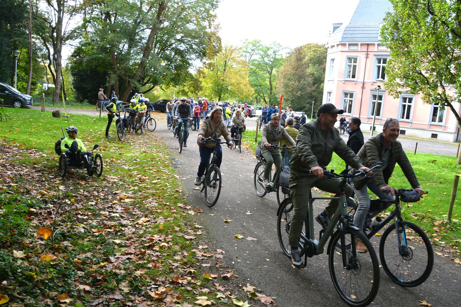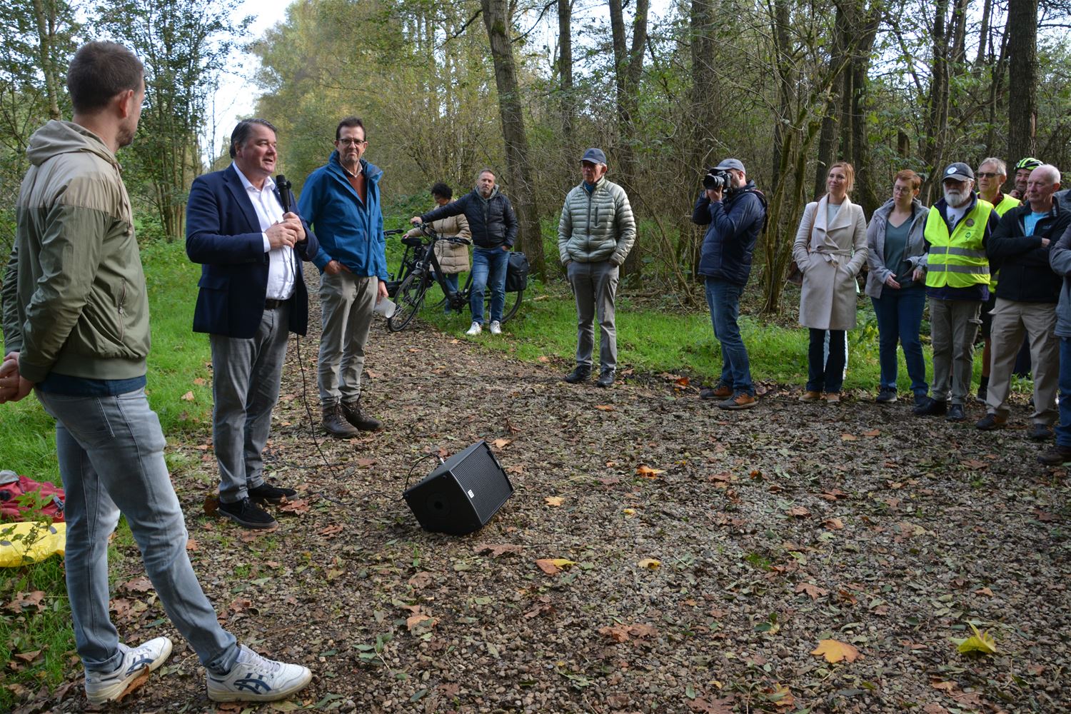 De trage wegen van de Mangelbeekvallei zijn deze namiddag officieel geopend. Dat gebeurde met een korte plechtigheid aan de ingang van het natuurgebied, op Meylandt achter de blokhut. Schepen van Mobiliteit Lode Schops vertelde dat het trage wegen dossier niet altijd een makkelijk verhaal is. Dat illustreerde hij met de Mulkens, een dossier dat 30 jaar geleden werd ingeleid en waar pas vorige week verharding is aangebracht. Paul Coolen onderstreepte de belangrijke rol van de 7 dorpsraden die hielpen bij het afstappen en inventariseren van 200 km trage wegen, ook al zijn er nog missing links. Karel Stevens van de Vlaamse Landmaatschappij belichtte dat hiermee - en de bijhorende investering van 1 miljoen euro - de eerste fase is afgerond, maar dat nu de tweede fase van Mijn Mangelbeek begint: namelijk de eigenlijke inrichting van de vallei met aandacht voor de natuur en het water. De waterhuishouding is immers zwaar verstoord door de mijnverzakkingen en het rechttrekken van de Mangelbeek in het verleden. Alles is nu in kaart gebracht, er is een plan opgemaakt en bij Europa worden nieuwe middelen aangevraagd. Na het knippen van het lint vertrokken de fietsers voor een tocht van 25 km over trage wegen en de wandelaars voor 10 km door de Mangelveekvallei. Later vanmiddag was er dan nog de kortere wandeling door het natuurgebied. 83401