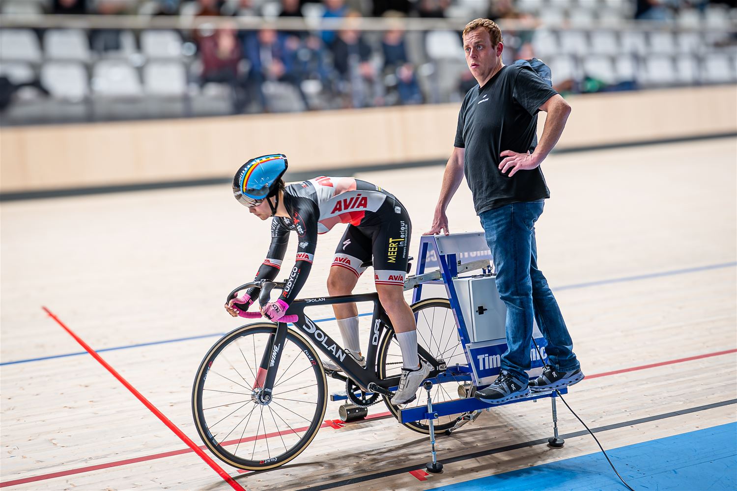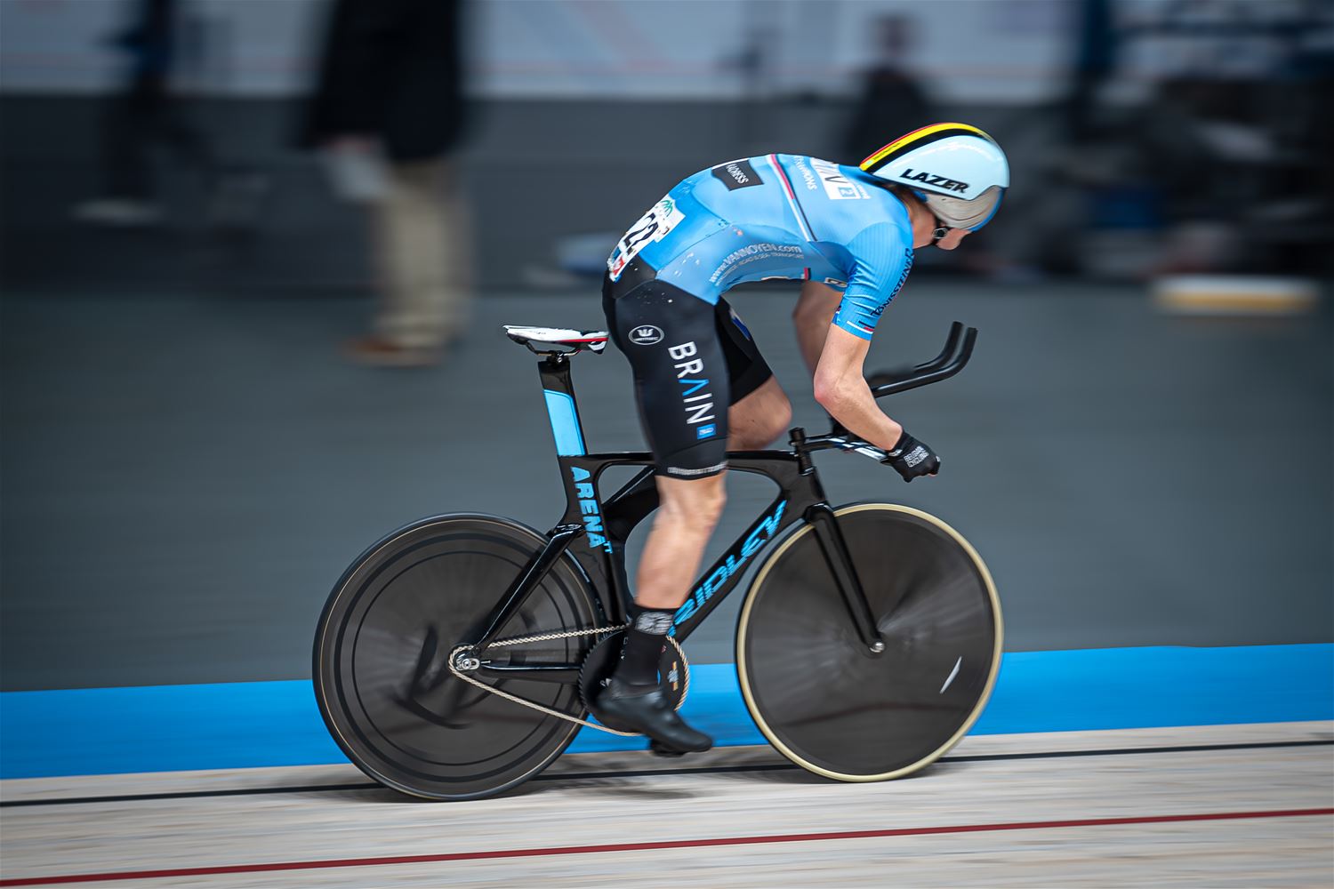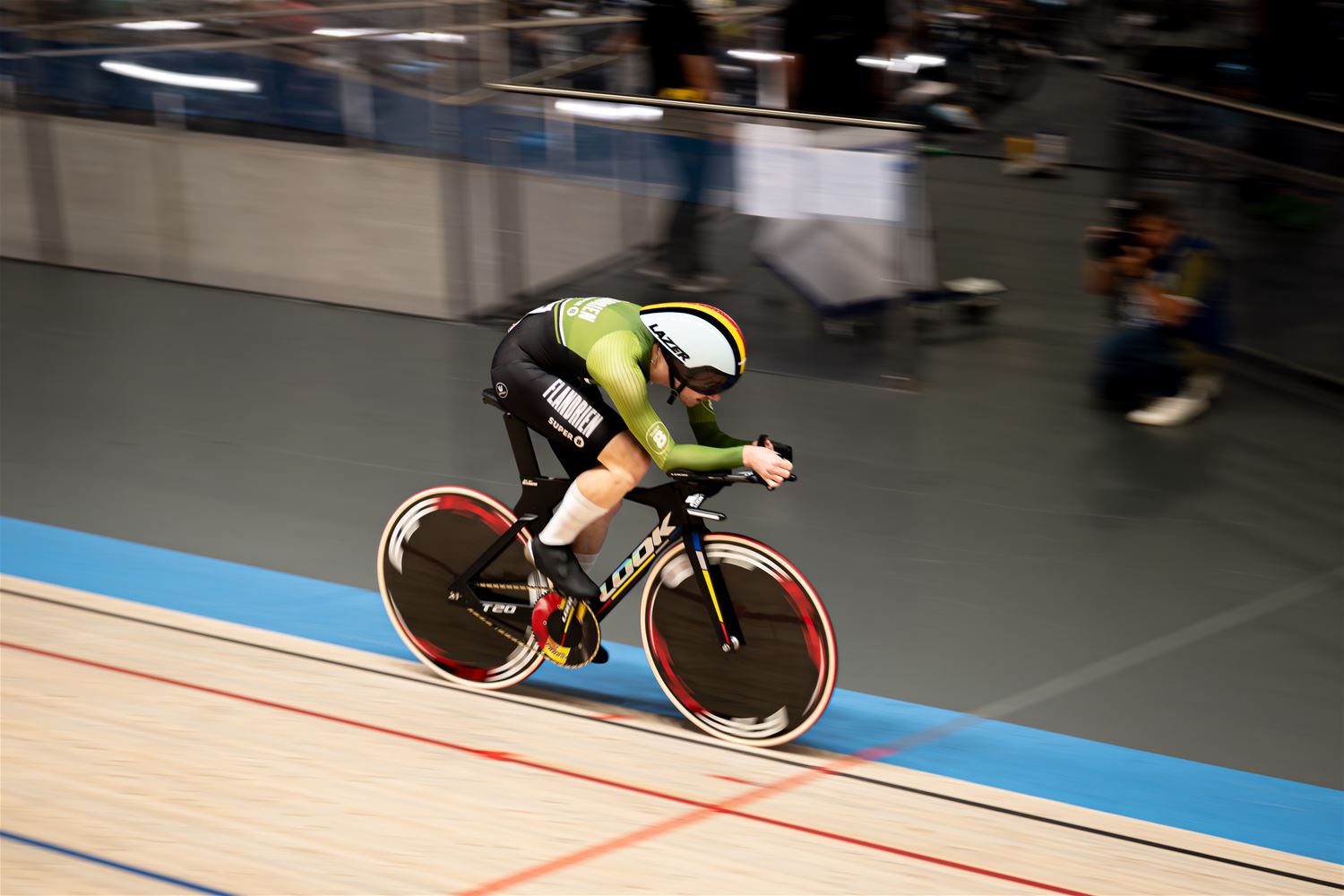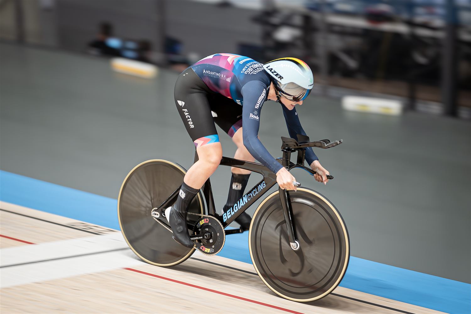 Tuur Dens (Team Flanders-Baloise) was de grote winnaar op de eerste avond van de Belgische baankampioenschappen op de velodroom. Hij was eerst de snelste in de tijdrit over één kilometer. Daarin klokte hij 1:01.553, bijna één seconde minder dan zilveren medaillewinnaar Gianluca Pollefliet, derde was Thibaut Bernard. En ook in de afvallingskoers was Dens de beste, daarin liet hij titelverdediger en ploegmaat Jules Hesters achter zich in de slotsprint, terwijl Gianluca Pollefliet brons wegkaapte. Bij de vrouwen - in afwezigheid van wereldkampioene Lotte Kopecky - won Marith Vanhove de afvalling voor Katrijn De Clercq en Sara Maes. In de 500 meter tijdrit was de winst voor Julie Nicolaes, die het met 34.681 haalde voor Valerie Jenaer en Vanhove. Vandaag zijn er opnieuw kampioensschappen tussen 11 en 18 uur, inwoners van Heusden-Zolder mogen gratis binnen. (foto's Roman Martyka)79572