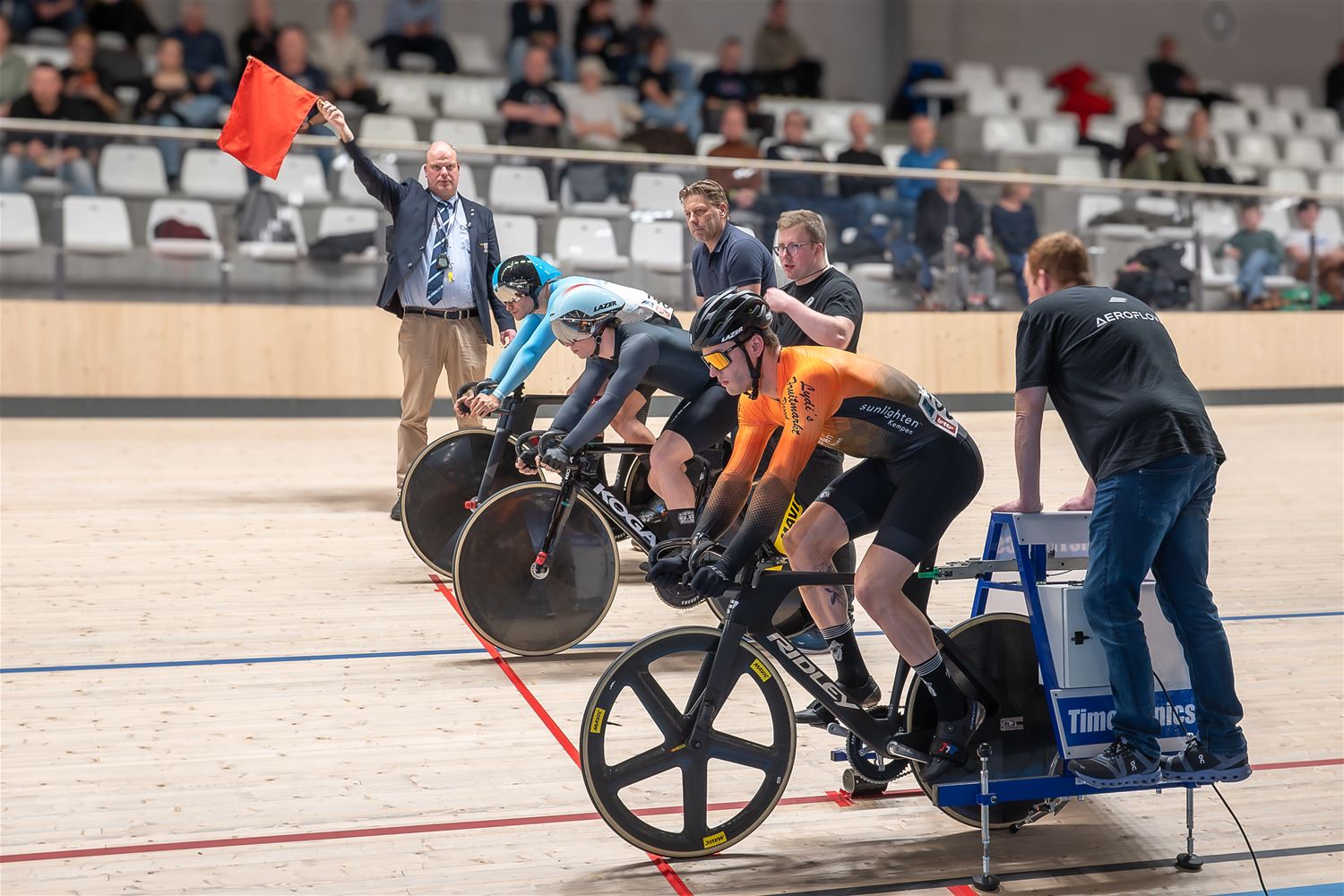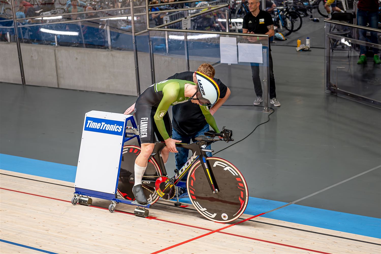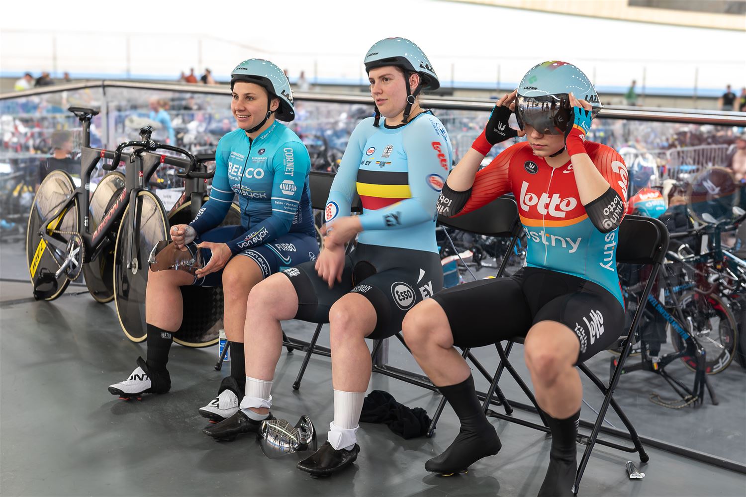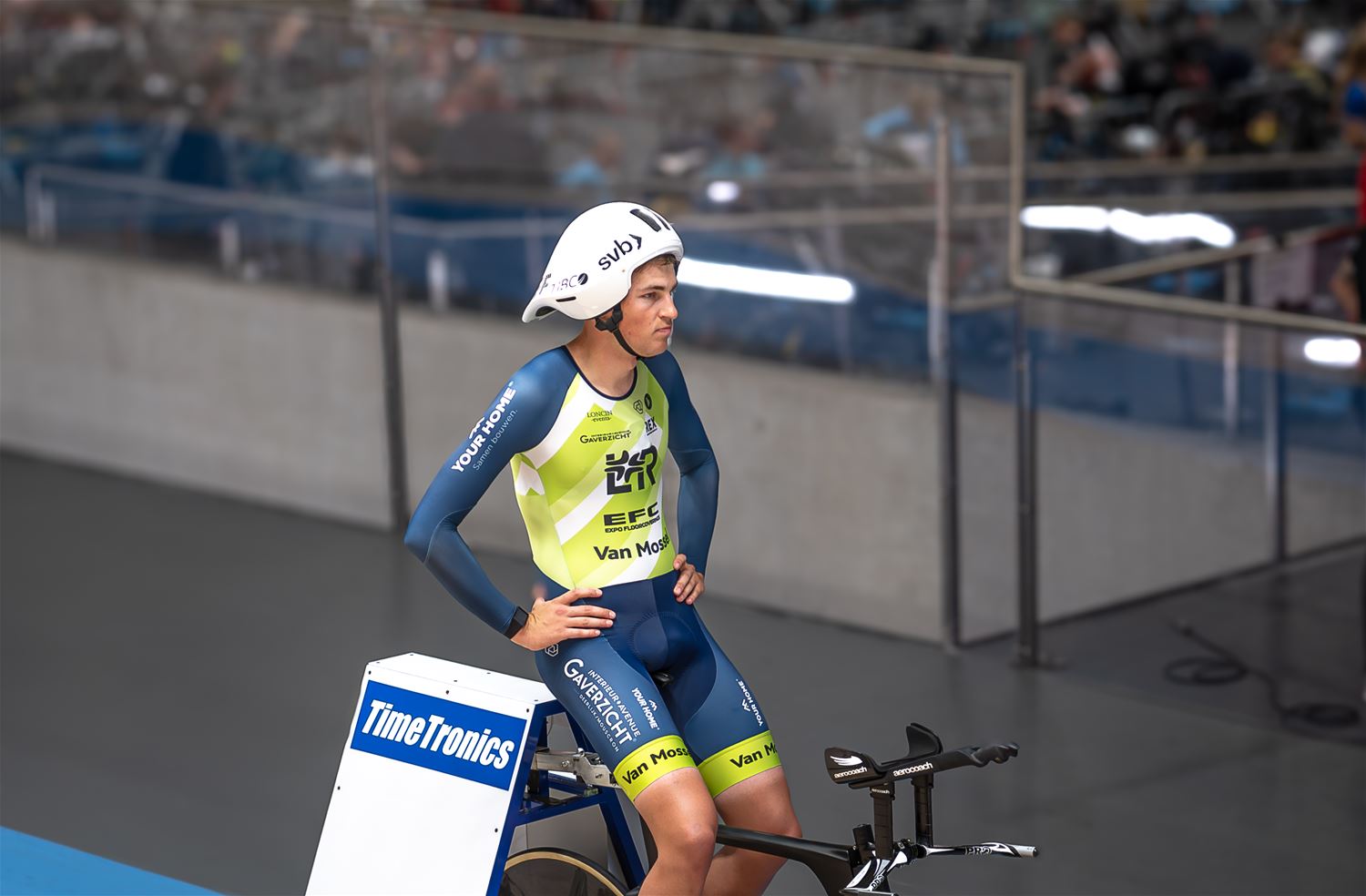 Tuur Dens (Team Flanders-Baloise) was de grote winnaar op de eerste avond van de Belgische baankampioenschappen op de velodroom. Hij was eerst de snelste in de tijdrit over één kilometer. Daarin klokte hij 1:01.553, bijna één seconde minder dan zilveren medaillewinnaar Gianluca Pollefliet, derde was Thibaut Bernard. En ook in de afvallingskoers was Dens de beste, daarin liet hij titelverdediger en ploegmaat Jules Hesters achter zich in de slotsprint, terwijl Gianluca Pollefliet brons wegkaapte. Bij de vrouwen - in afwezigheid van wereldkampioene Lotte Kopecky - won Marith Vanhove de afvalling voor Katrijn De Clercq en Sara Maes. In de 500 meter tijdrit was de winst voor Julie Nicolaes, die het met 34.681 haalde voor Valerie Jenaer en Vanhove. Vandaag zijn er opnieuw kampioensschappen tussen 11 en 18 uur, inwoners van Heusden-Zolder mogen gratis binnen. (foto's Roman Martyka)79572