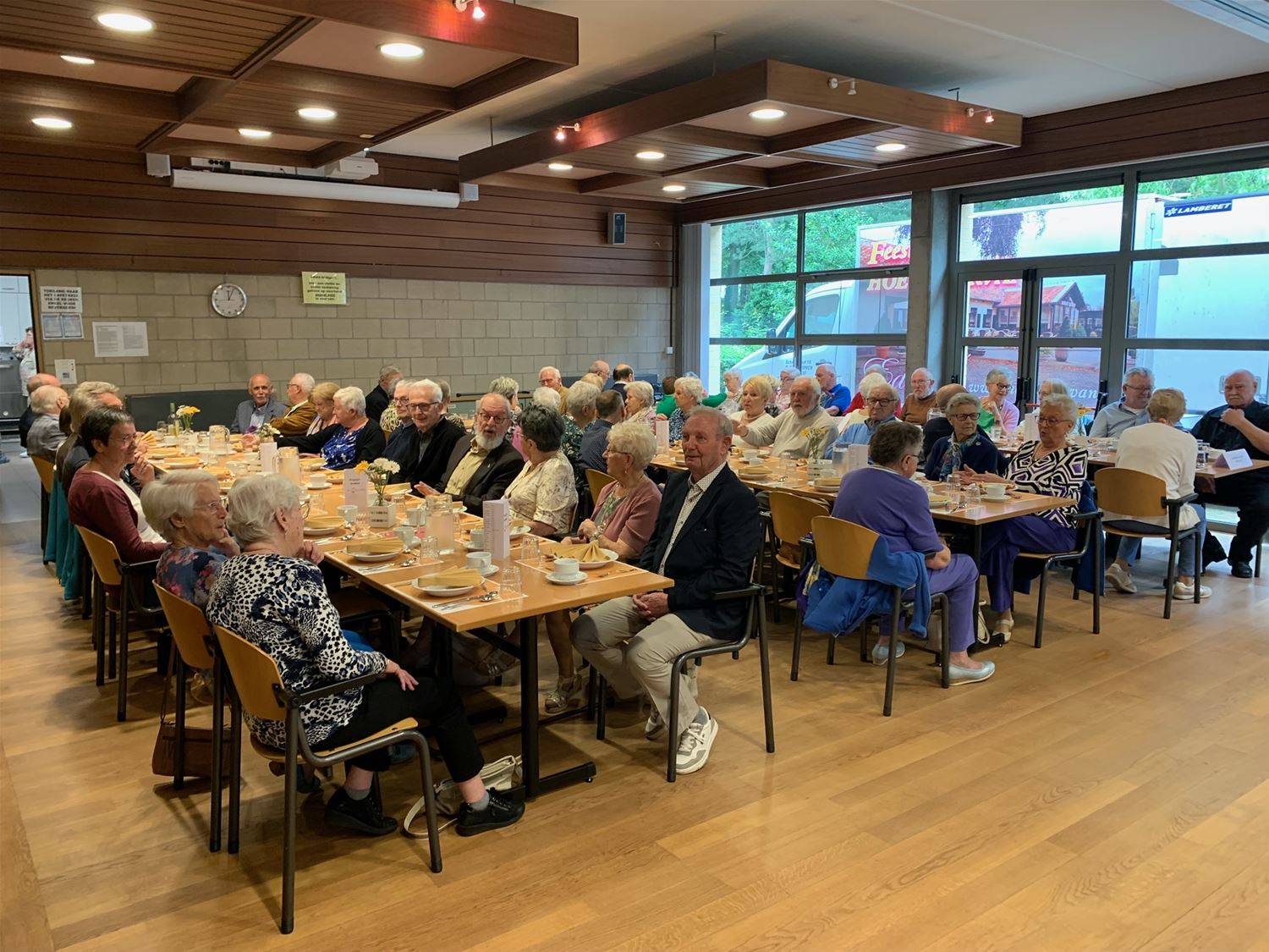 Vandaag en morgen organiseert het gemeentebestuur het feest voor de 75-plussers. Die worden in twee groepen ontvangen in De Zandloper waar ze een feestmaal krijgen aangeboden. Ze werden vandaag verwelkomd door onder meer de burgemeester. Voor de muzikale animatie zorgt het duo René en Lydia met meezingers en hits van weleer. (foto's Julien Maebe)81106