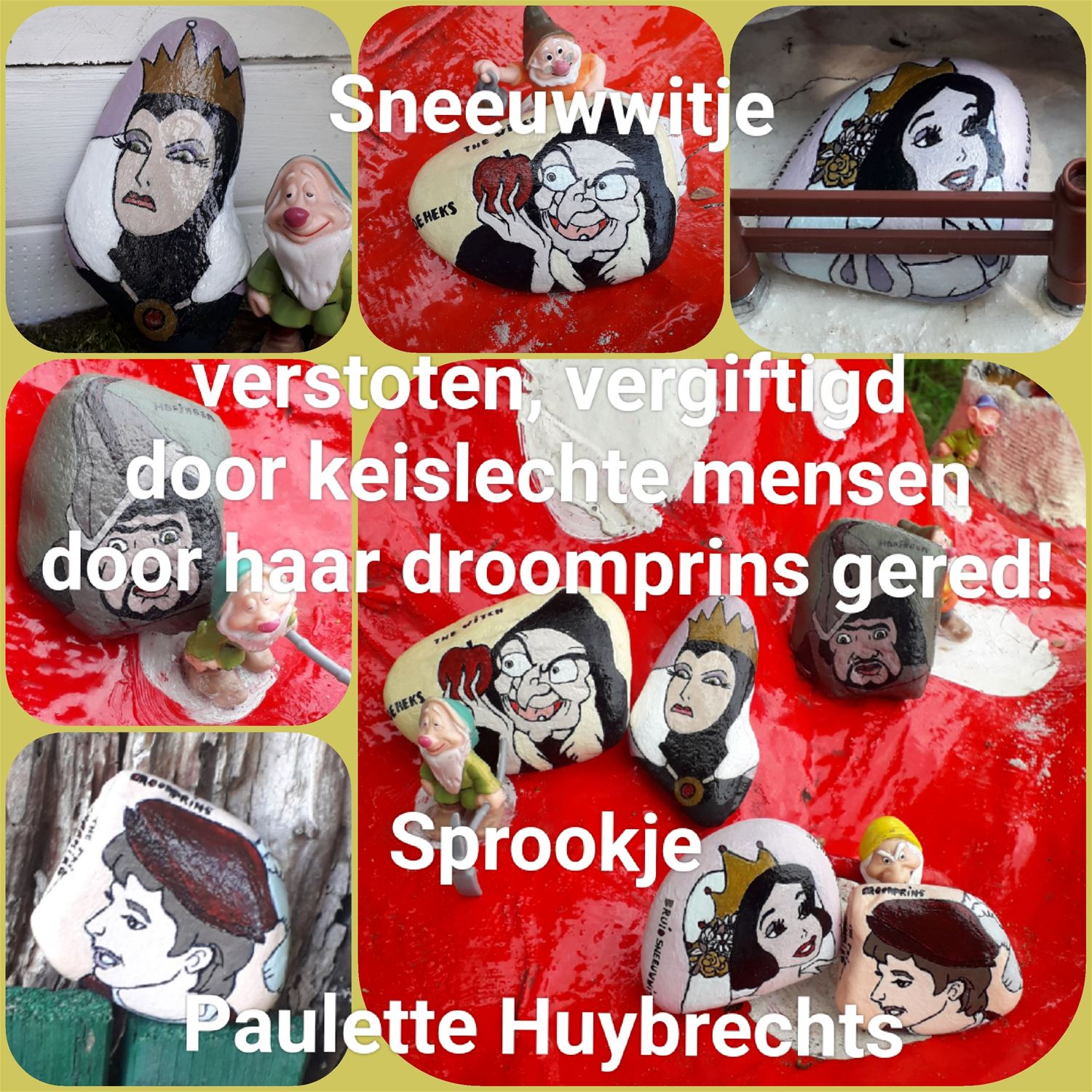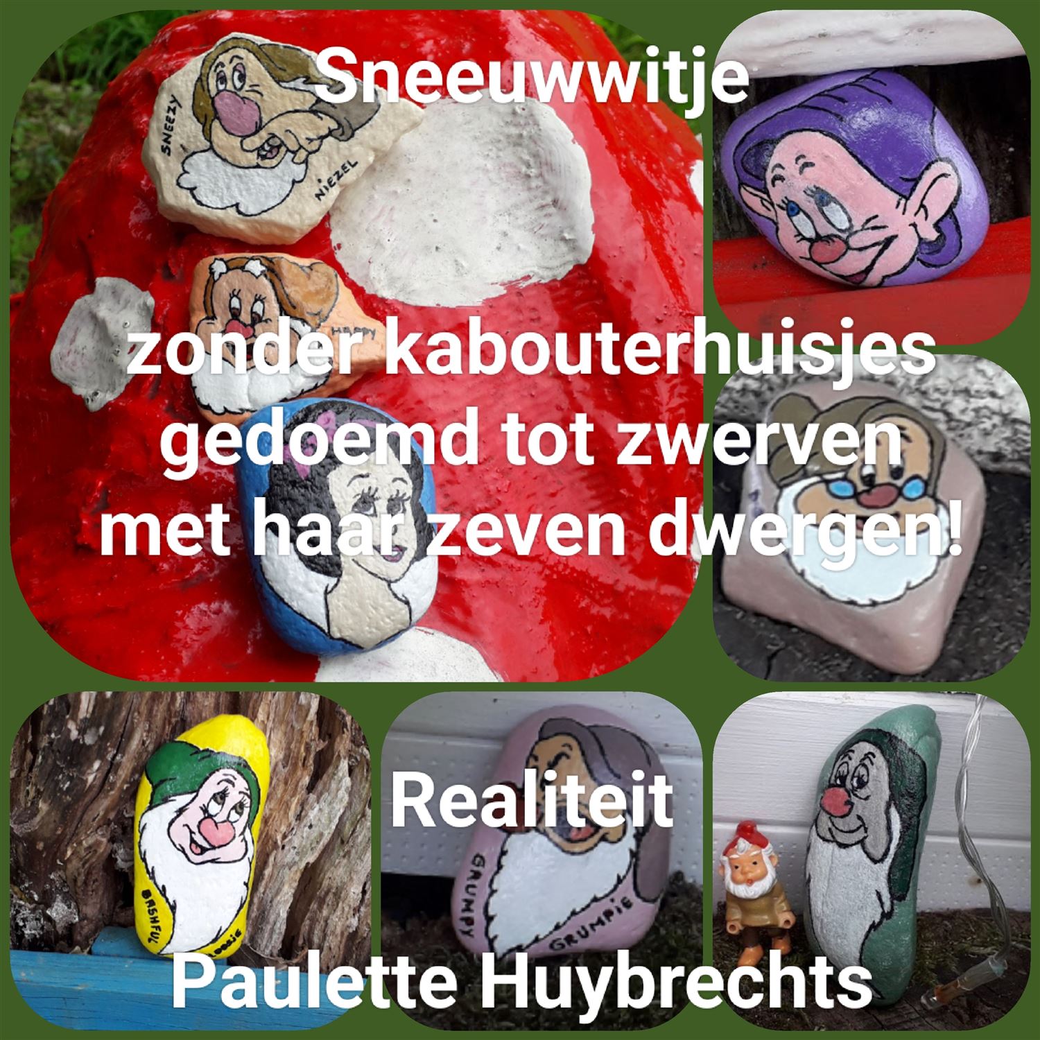 In de coronaperiode hield Paulette Huybrechts zich bezig met het beschilderen van stenen, een soort van Happy Stones. De kabouterhuisjes in de Mangelbeekvallei inspireerden haar met het sprookje van Sneeuwwitje. Ze heeft toen 13 stenen beschilderd en in een tijdsspanne van 2 maanden aan de huisjes gelegd. Het ene kabouterhuisje is ondertussen vernield en afgebroken, maar Paulette hoopt dat haar stenen een fijne thuis hebben gekregen. En omdat het thema van de poëzieweek 'thuis' is, heeft ze met de foto's van haar stenen twee 'elfjes' gemaakt.79884