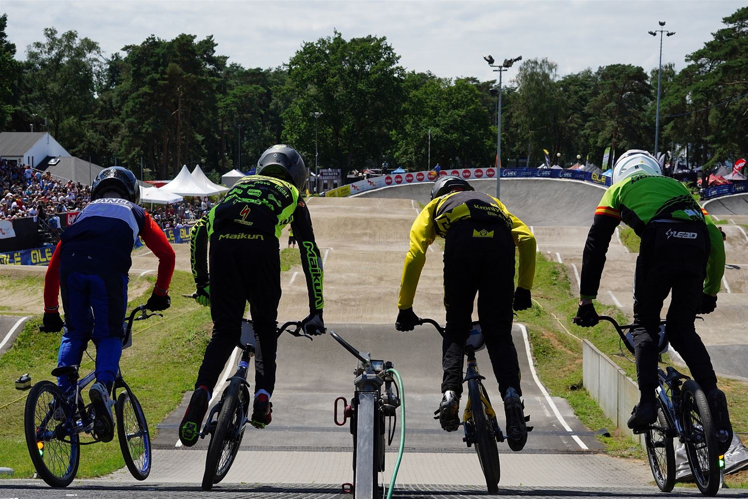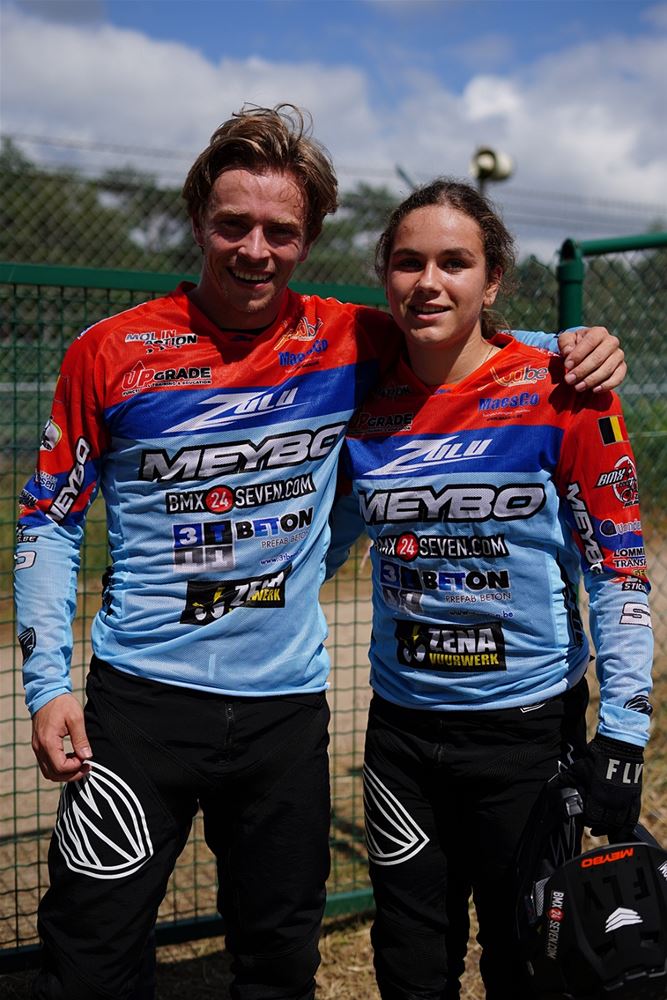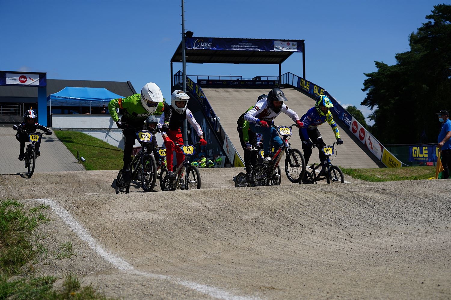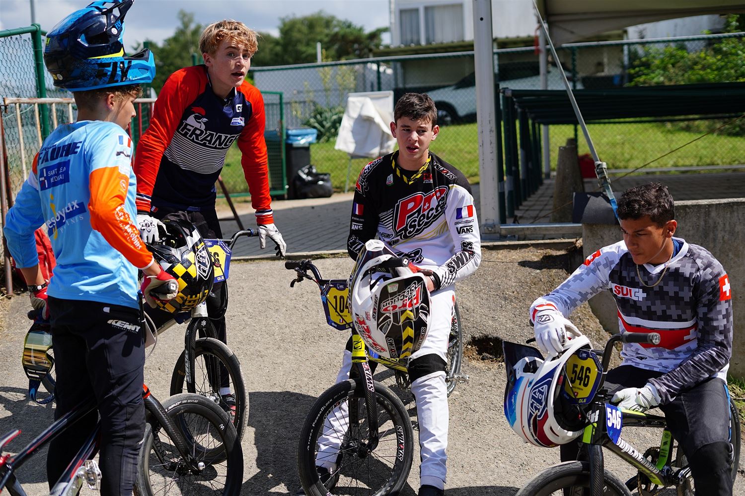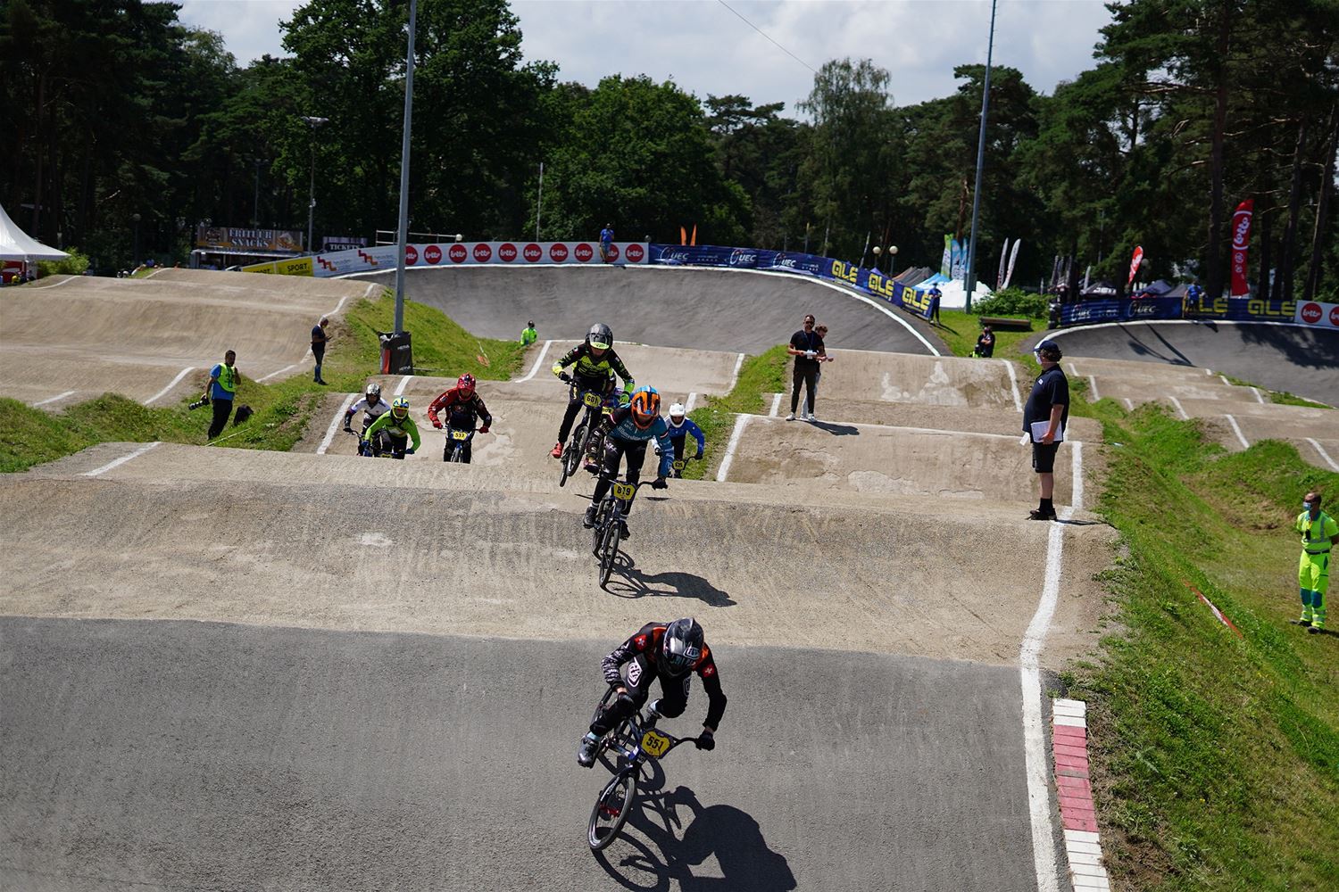 Het EK BMX kon vandaag heel de dag rekenen op stralend weer, er waren dan ook heel wat toeschouwers opgedaagd. En die kregen waar voor hun geld. Zo werd vandaag een jonge discipline opgevoerd: de ploegentijdrit. Daarin nemen telkens drie renners per land het tegen elkaar op. En Belgie mocht juichen, want zowxel de dames als de heren behaalden zilver. Bij de vrouwen verdedigden Elke Vanhoof, Aiko Gommers en Robyn Gommers de Belgische kleuren. Bij de mannen was gekozen voor een jong team, maar Thibaut Stoffels, Wannes Magdelijns en Jools Melis overtroffen de verwachtingen en werden dus tweede. De titel ging twee keer naar Frankrijk, dat dus erg tevreden mag terugblikken op de Europese kampioenschappen. (foto's Stephan Volders)70067