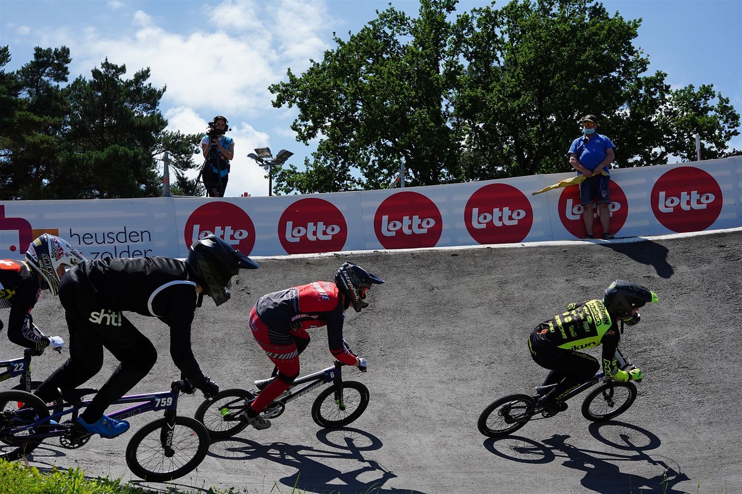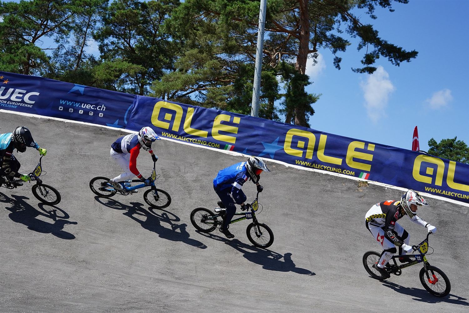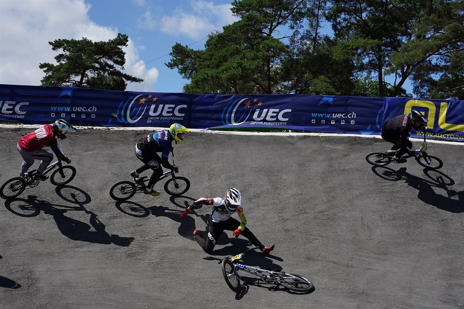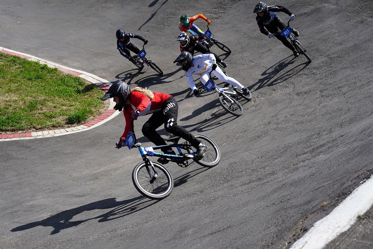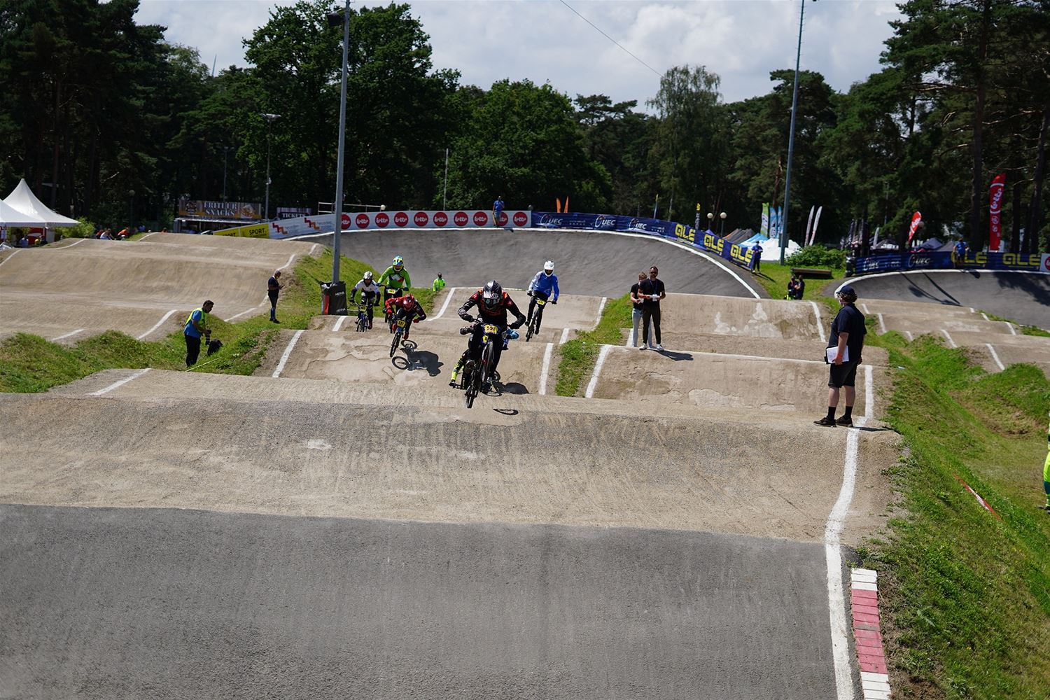 Het EK BMX kon vandaag heel de dag rekenen op stralend weer, er waren dan ook heel wat toeschouwers opgedaagd. En die kregen waar voor hun geld. Zo werd vandaag een jonge discipline opgevoerd: de ploegentijdrit. Daarin nemen telkens drie renners per land het tegen elkaar op. En Belgie mocht juichen, want zowxel de dames als de heren behaalden zilver. Bij de vrouwen verdedigden Elke Vanhoof, Aiko Gommers en Robyn Gommers de Belgische kleuren. Bij de mannen was gekozen voor een jong team, maar Thibaut Stoffels, Wannes Magdelijns en Jools Melis overtroffen de verwachtingen en werden dus tweede. De titel ging twee keer naar Frankrijk, dat dus erg tevreden mag terugblikken op de Europese kampioenschappen. (foto's Stephan Volders)70067