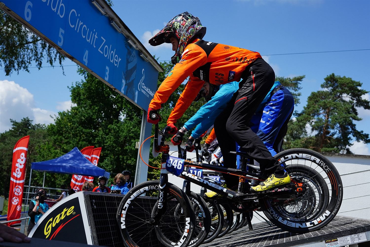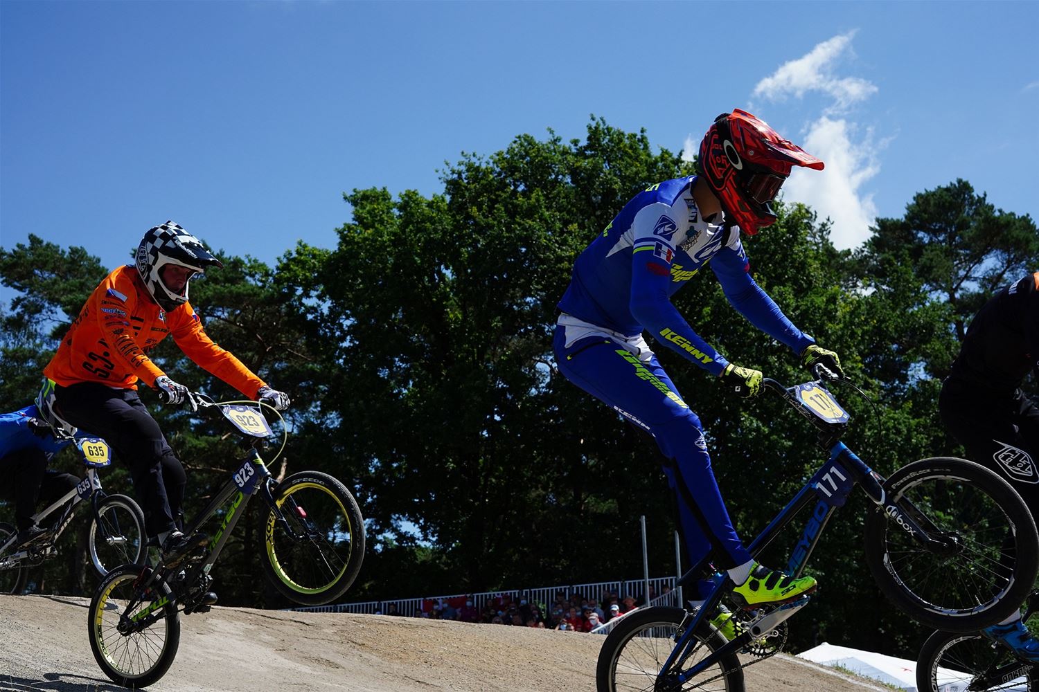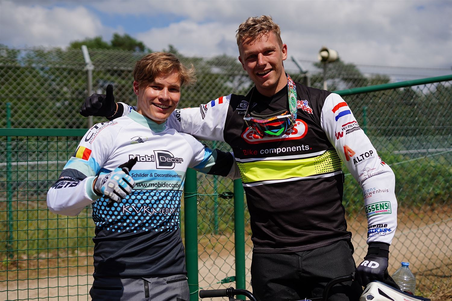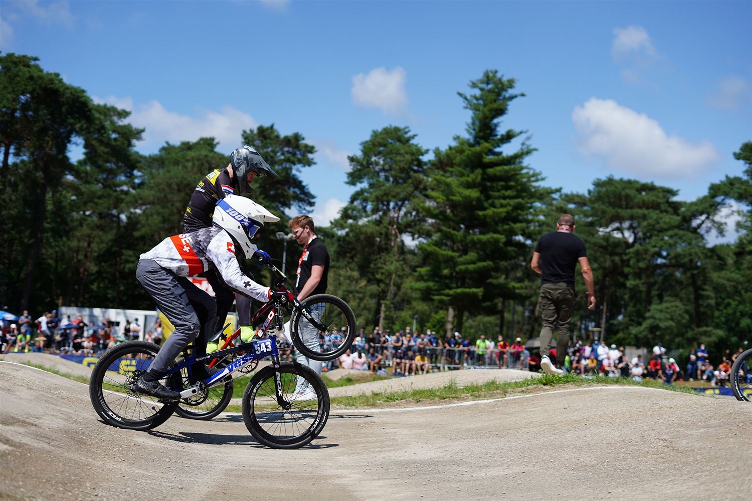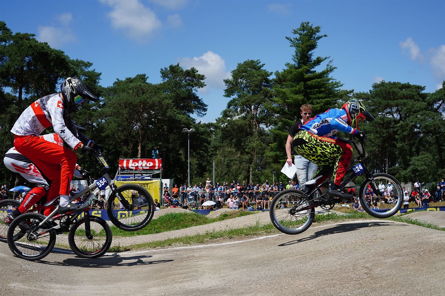Het EK BMX kon vandaag heel de dag rekenen op stralend weer, er waren dan ook heel wat toeschouwers opgedaagd. En die kregen waar voor hun geld. Zo werd vandaag een jonge discipline opgevoerd: de ploegentijdrit. Daarin nemen telkens drie renners per land het tegen elkaar op. En Belgie mocht juichen, want zowxel de dames als de heren behaalden zilver. Bij de vrouwen verdedigden Elke Vanhoof, Aiko Gommers en Robyn Gommers de Belgische kleuren. Bij de mannen was gekozen voor een jong team, maar Thibaut Stoffels, Wannes Magdelijns en Jools Melis overtroffen de verwachtingen en werden dus tweede. De titel ging twee keer naar Frankrijk, dat dus erg tevreden mag terugblikken op de Europese kampioenschappen. (foto's Stephan Volders)70067