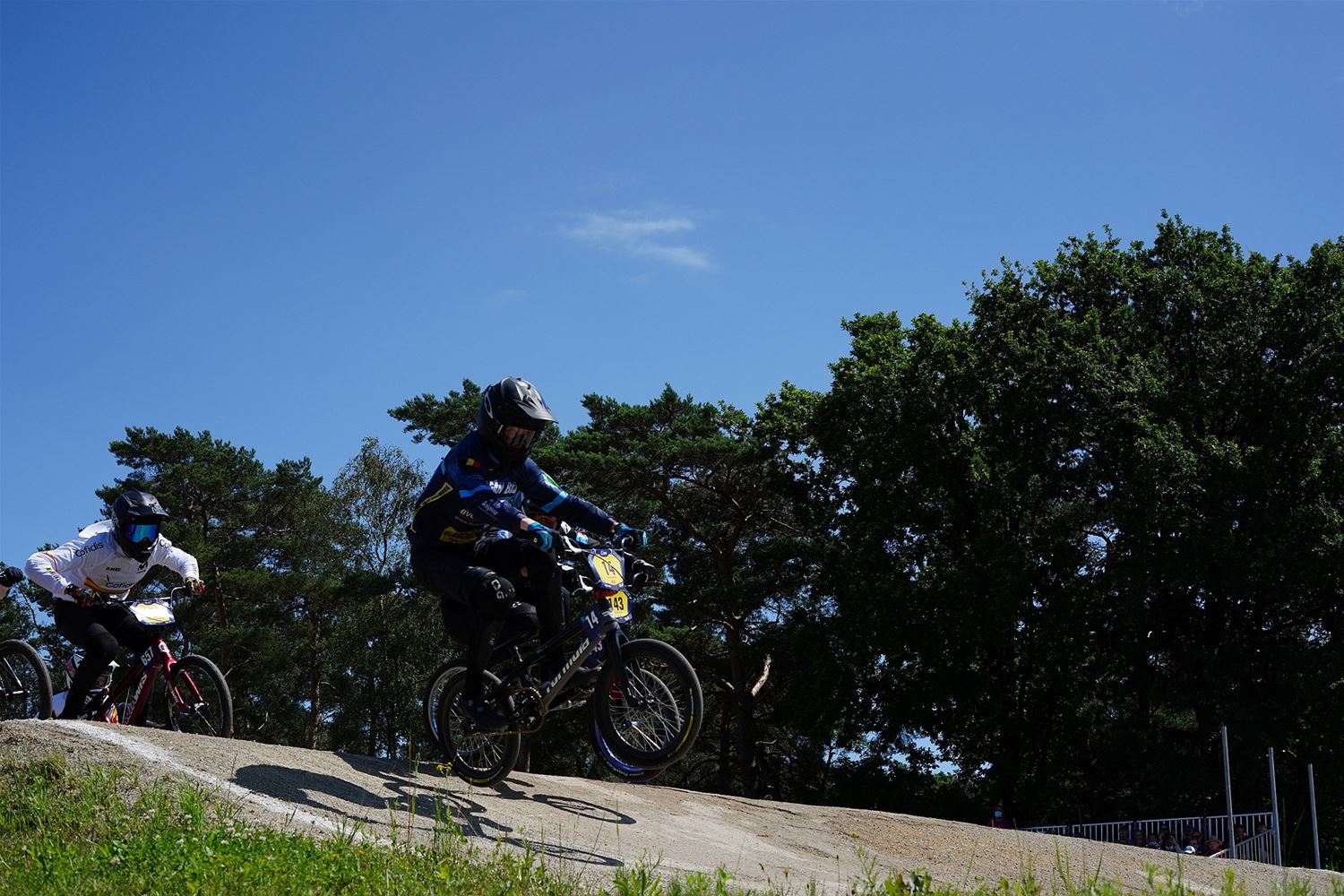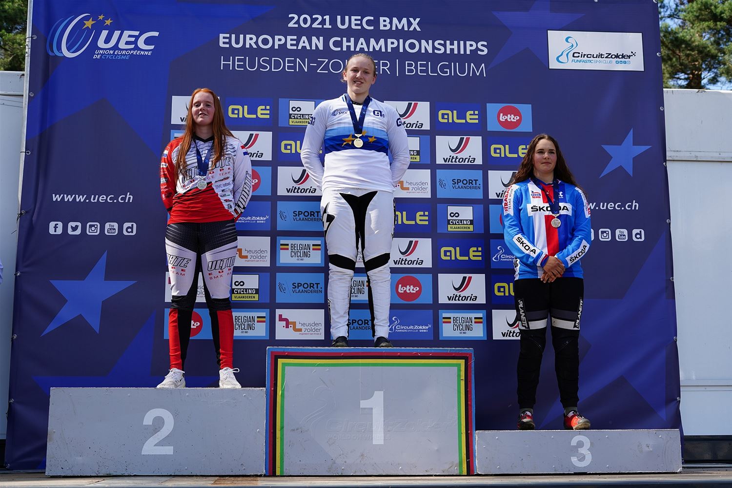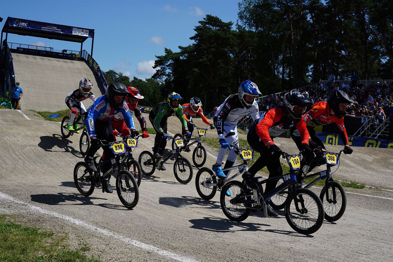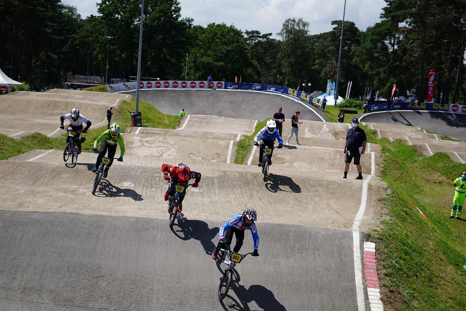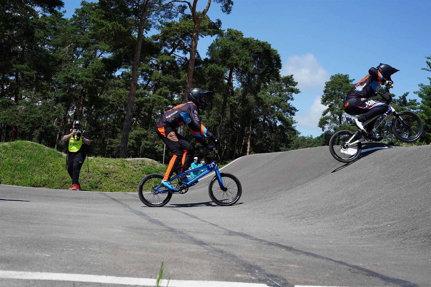 Het EK BMX kon vandaag heel de dag rekenen op stralend weer, er waren dan ook heel wat toeschouwers opgedaagd. En die kregen waar voor hun geld. Zo werd vandaag een jonge discipline opgevoerd: de ploegentijdrit. Daarin nemen telkens drie renners per land het tegen elkaar op. En Belgie mocht juichen, want zowxel de dames als de heren behaalden zilver. Bij de vrouwen verdedigden Elke Vanhoof, Aiko Gommers en Robyn Gommers de Belgische kleuren. Bij de mannen was gekozen voor een jong team, maar Thibaut Stoffels, Wannes Magdelijns en Jools Melis overtroffen de verwachtingen en werden dus tweede. De titel ging twee keer naar Frankrijk, dat dus erg tevreden mag terugblikken op de Europese kampioenschappen. (foto's Stephan Volders)70067