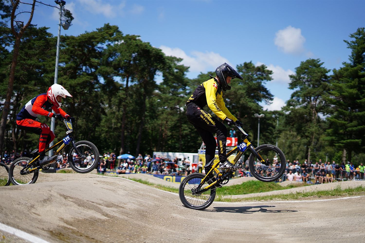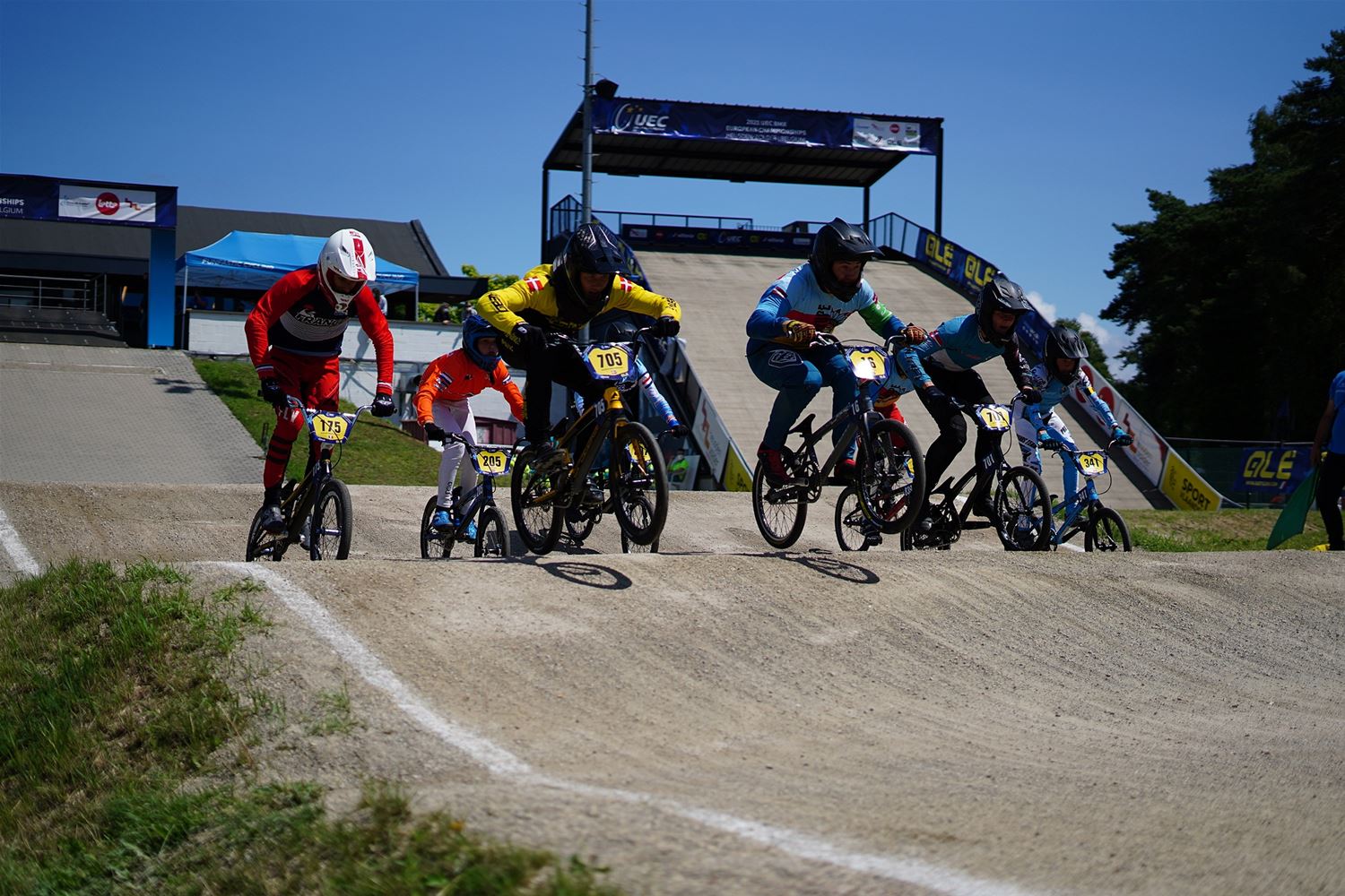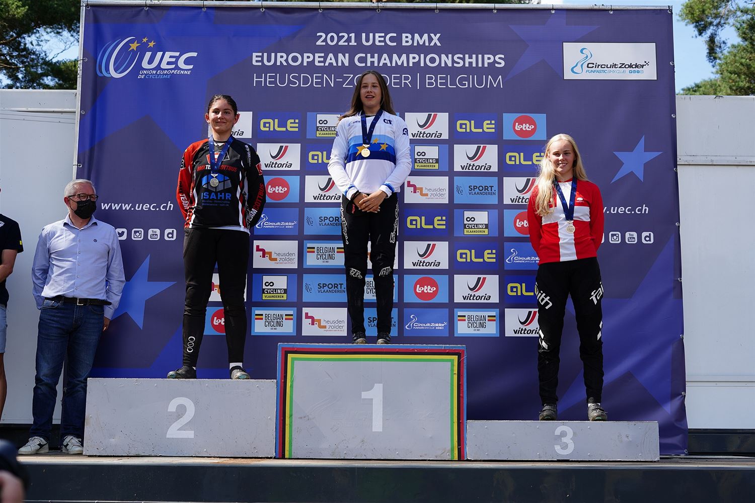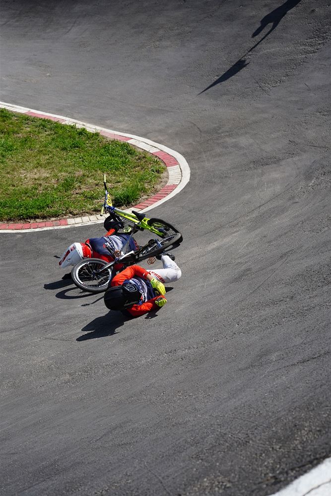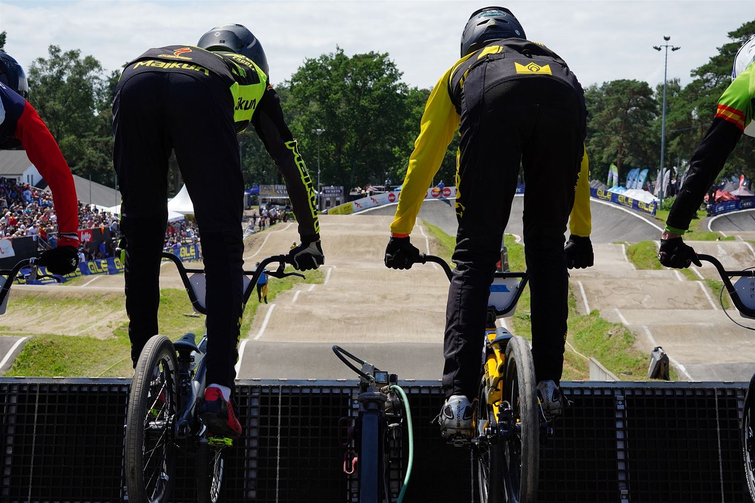 Het EK BMX kon vandaag heel de dag rekenen op stralend weer, er waren dan ook heel wat toeschouwers opgedaagd. En die kregen waar voor hun geld. Zo werd vandaag een jonge discipline opgevoerd: de ploegentijdrit. Daarin nemen telkens drie renners per land het tegen elkaar op. En Belgie mocht juichen, want zowxel de dames als de heren behaalden zilver. Bij de vrouwen verdedigden Elke Vanhoof, Aiko Gommers en Robyn Gommers de Belgische kleuren. Bij de mannen was gekozen voor een jong team, maar Thibaut Stoffels, Wannes Magdelijns en Jools Melis overtroffen de verwachtingen en werden dus tweede. De titel ging twee keer naar Frankrijk, dat dus erg tevreden mag terugblikken op de Europese kampioenschappen. (foto's Stephan Volders)70067