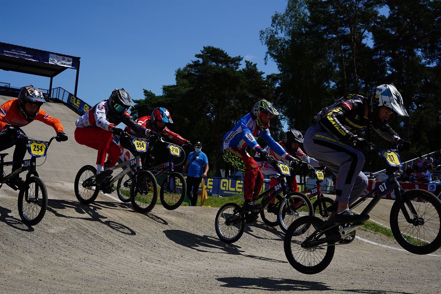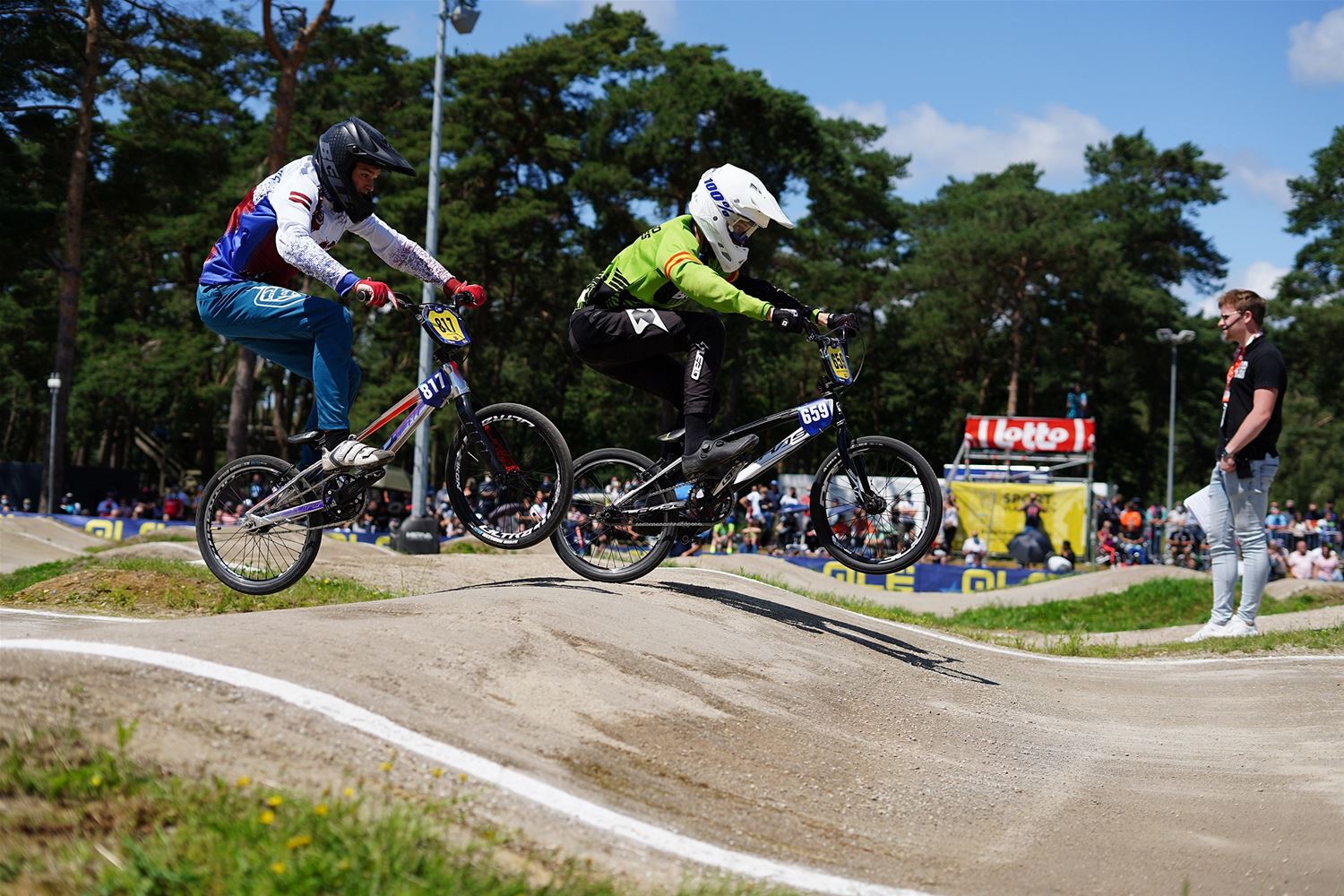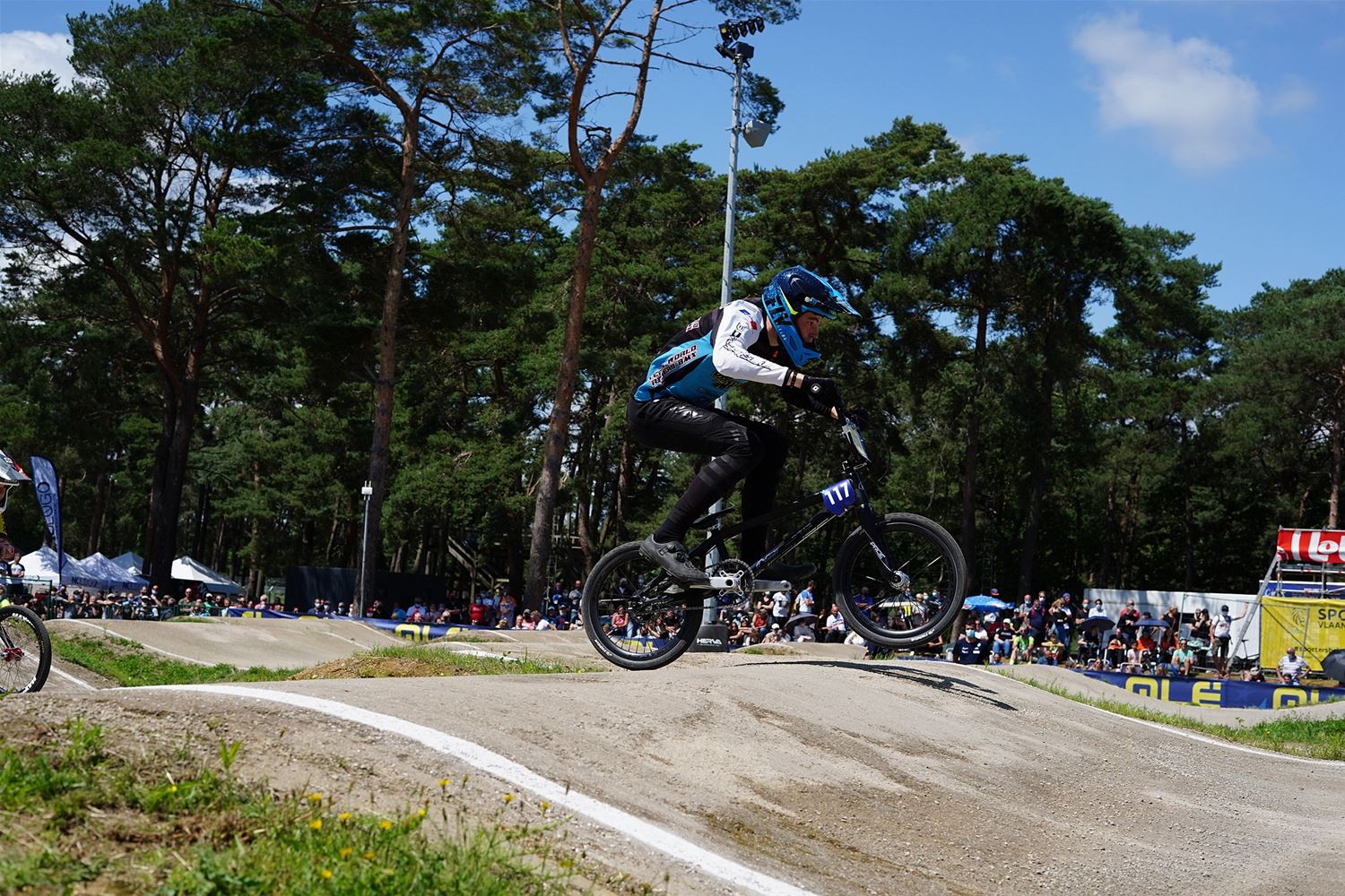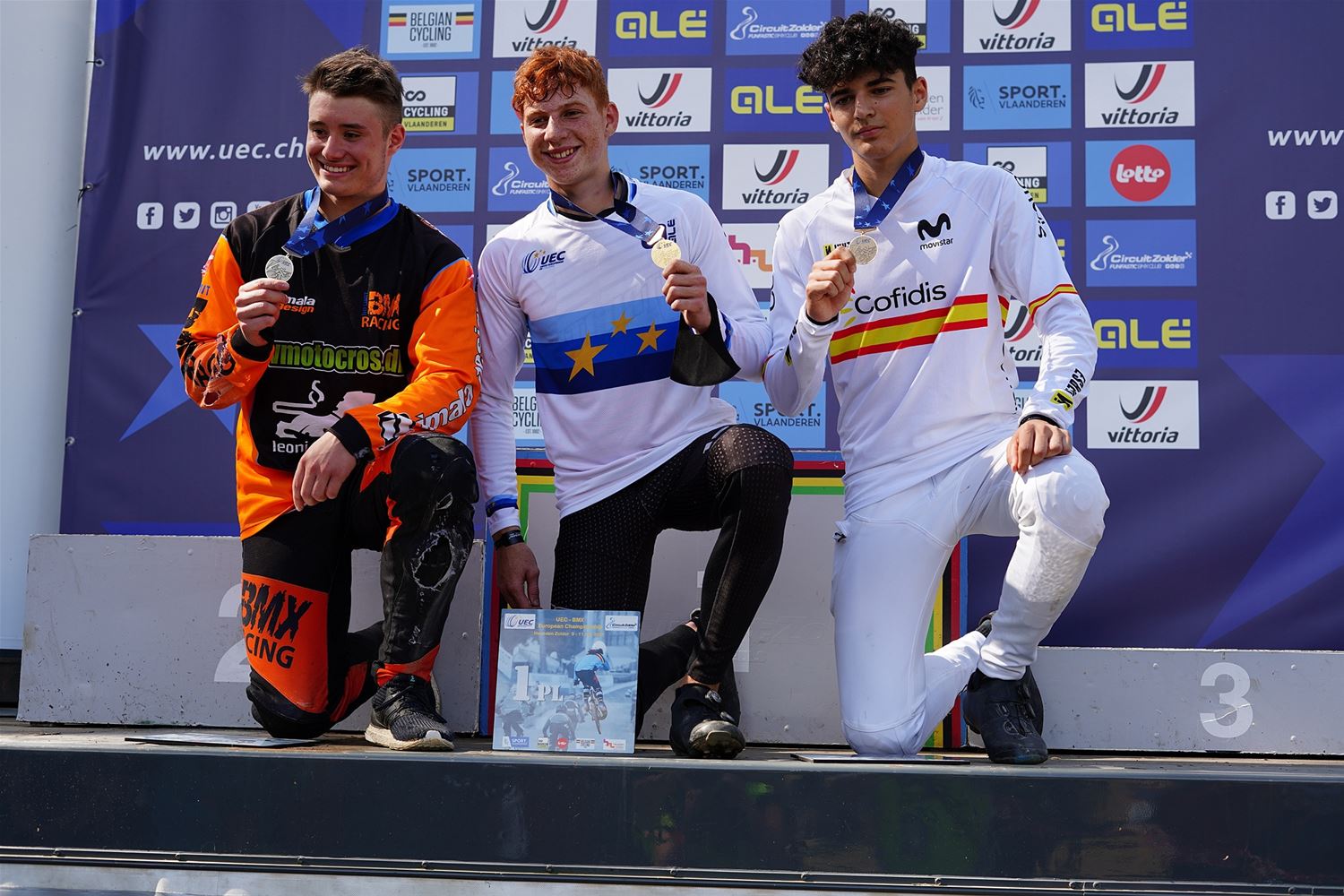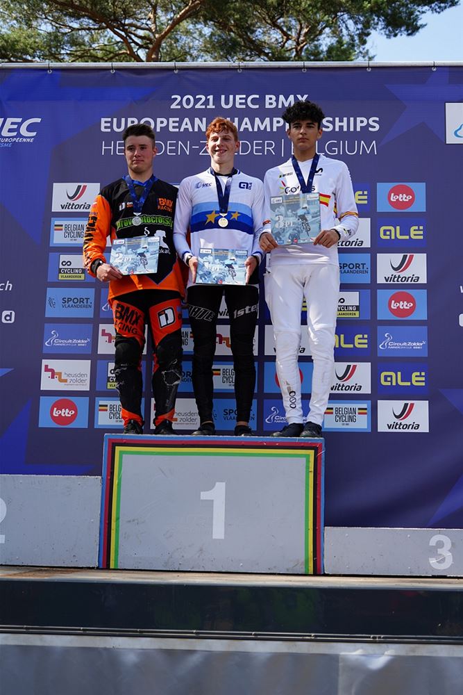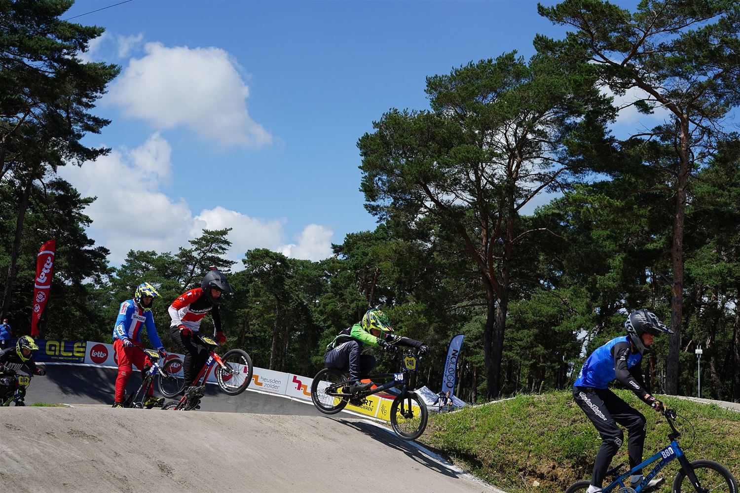 Het EK BMX kon vandaag heel de dag rekenen op stralend weer, er waren dan ook heel wat toeschouwers opgedaagd. En die kregen waar voor hun geld. Zo werd vandaag een jonge discipline opgevoerd: de ploegentijdrit. Daarin nemen telkens drie renners per land het tegen elkaar op. En Belgie mocht juichen, want zowxel de dames als de heren behaalden zilver. Bij de vrouwen verdedigden Elke Vanhoof, Aiko Gommers en Robyn Gommers de Belgische kleuren. Bij de mannen was gekozen voor een jong team, maar Thibaut Stoffels, Wannes Magdelijns en Jools Melis overtroffen de verwachtingen en werden dus tweede. De titel ging twee keer naar Frankrijk, dat dus erg tevreden mag terugblikken op de Europese kampioenschappen. (foto's Stephan Volders)70067