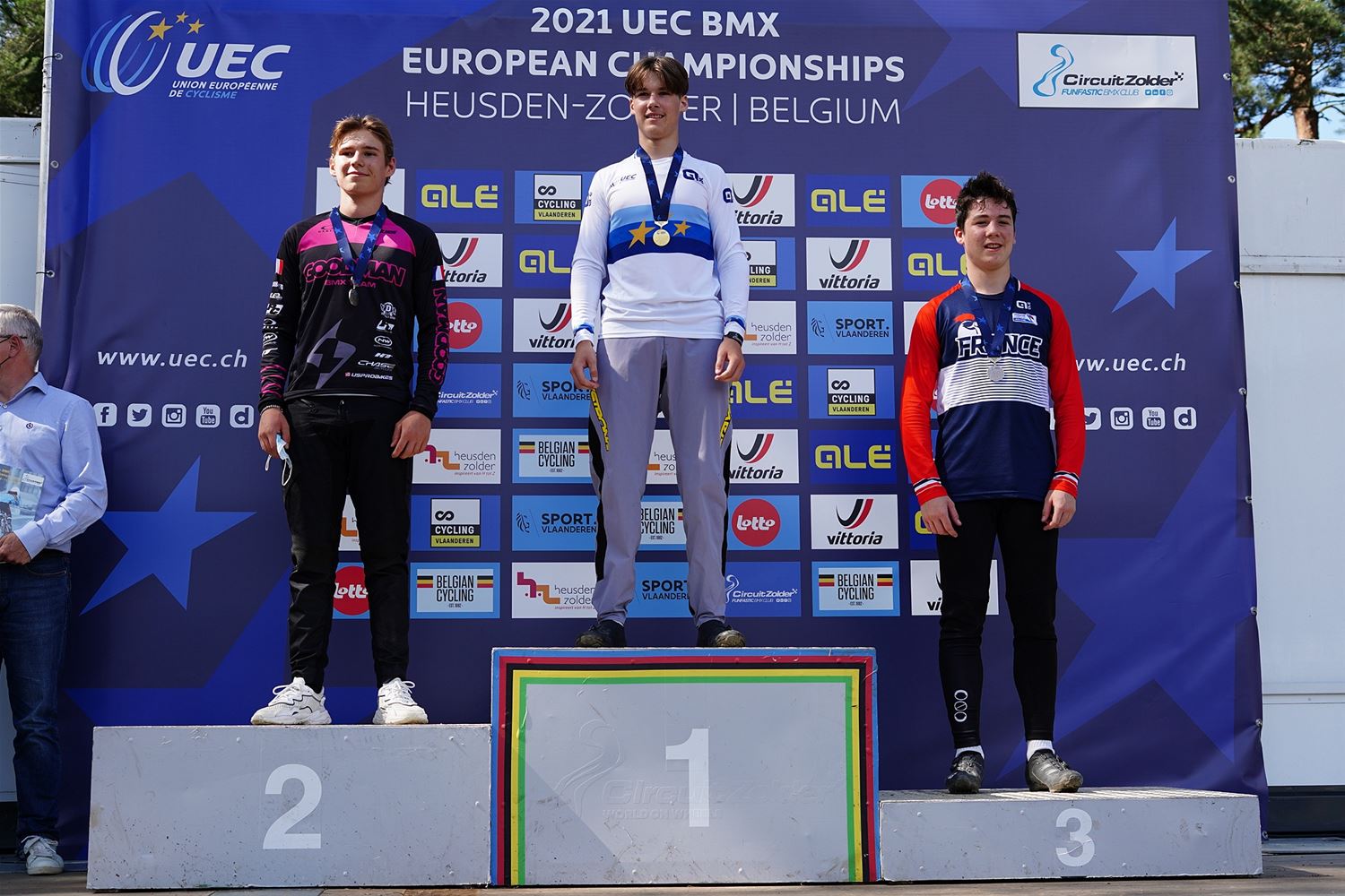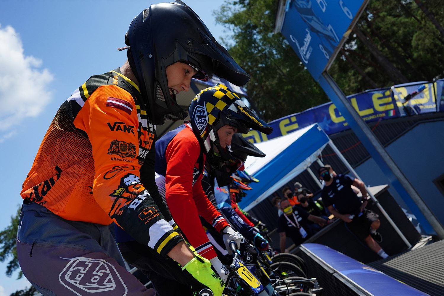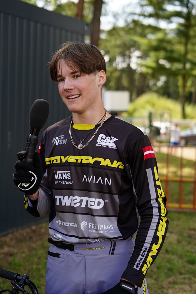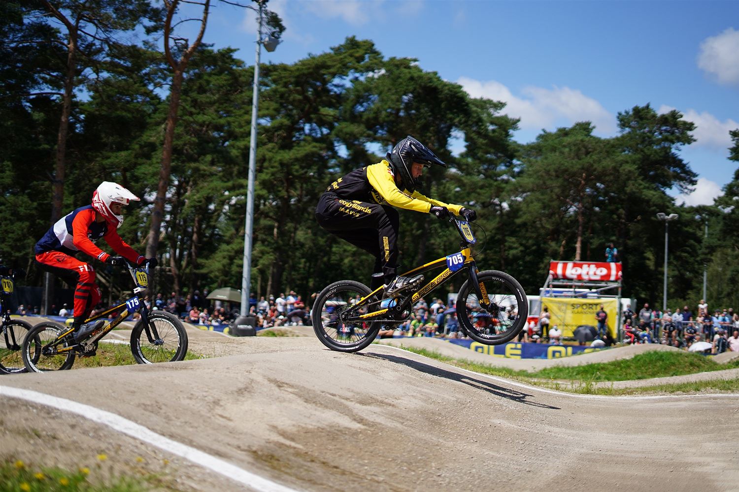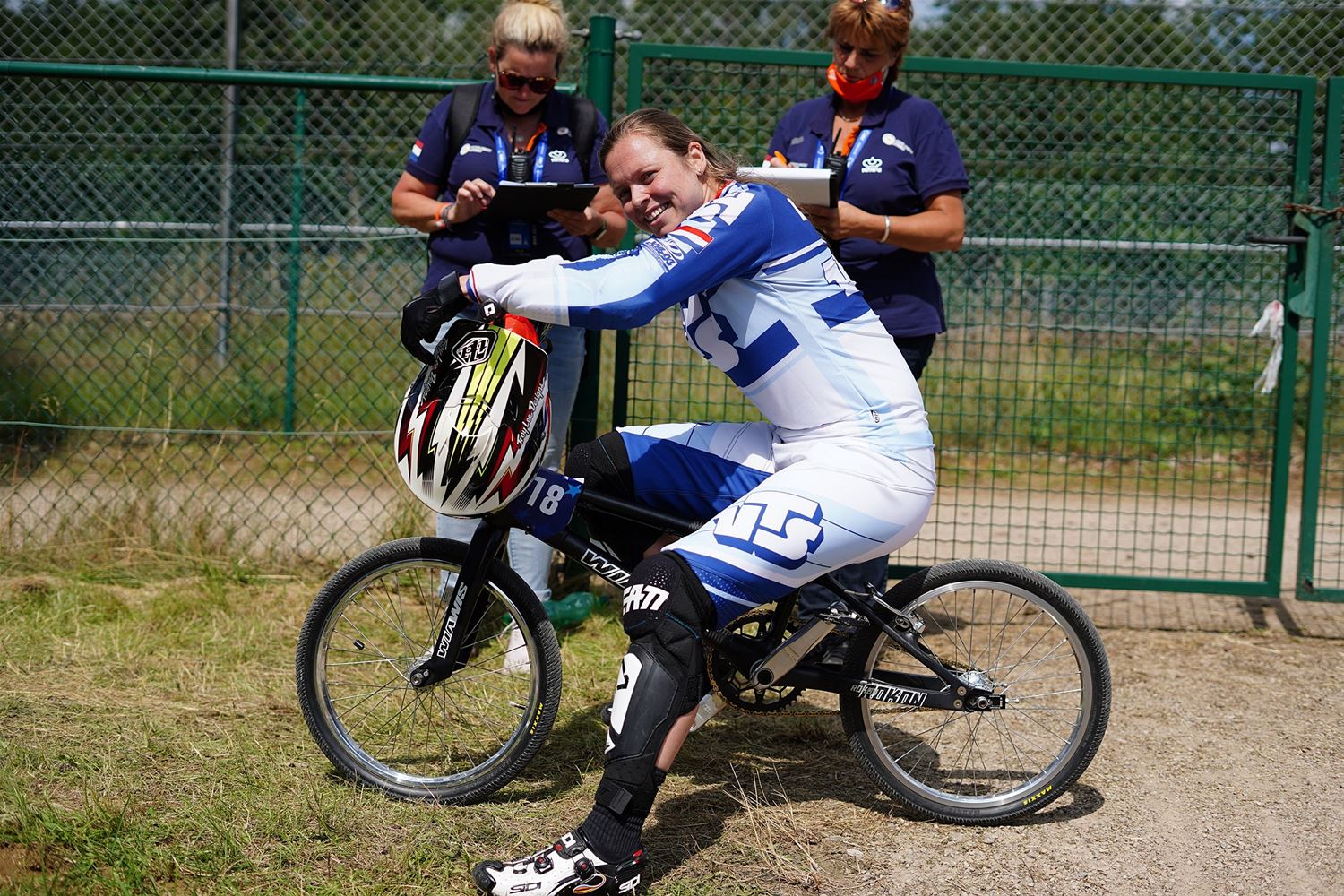 Het EK BMX kon vandaag heel de dag rekenen op stralend weer, er waren dan ook heel wat toeschouwers opgedaagd. En die kregen waar voor hun geld. Zo werd vandaag een jonge discipline opgevoerd: de ploegentijdrit. Daarin nemen telkens drie renners per land het tegen elkaar op. En Belgie mocht juichen, want zowxel de dames als de heren behaalden zilver. Bij de vrouwen verdedigden Elke Vanhoof, Aiko Gommers en Robyn Gommers de Belgische kleuren. Bij de mannen was gekozen voor een jong team, maar Thibaut Stoffels, Wannes Magdelijns en Jools Melis overtroffen de verwachtingen en werden dus tweede. De titel ging twee keer naar Frankrijk, dat dus erg tevreden mag terugblikken op de Europese kampioenschappen. (foto's Stephan Volders)70067
