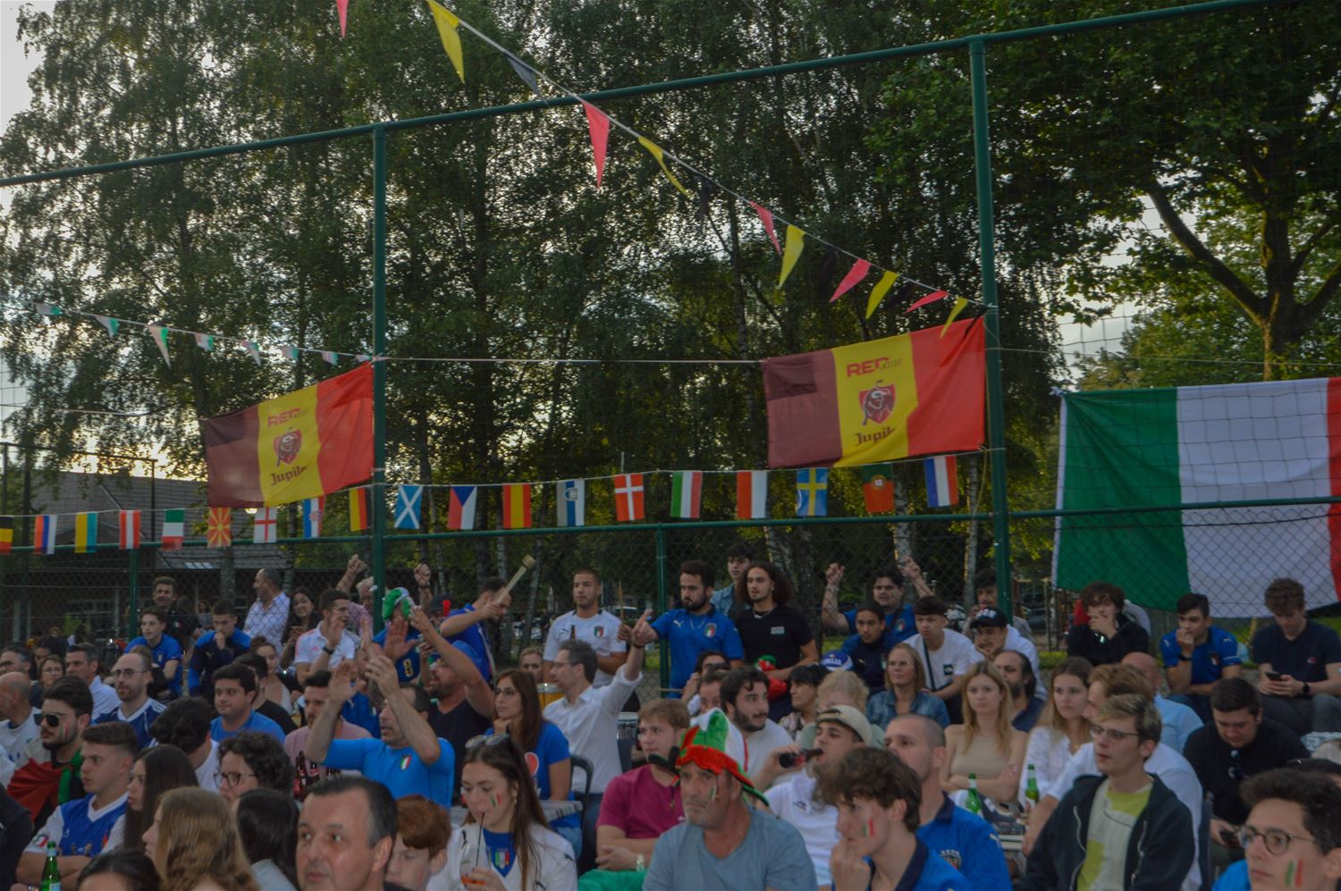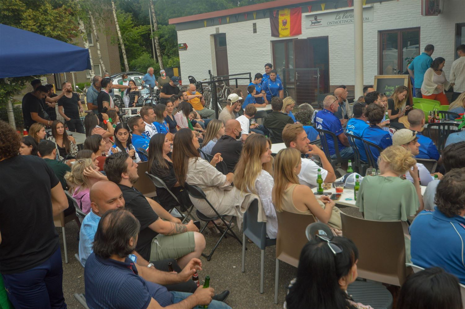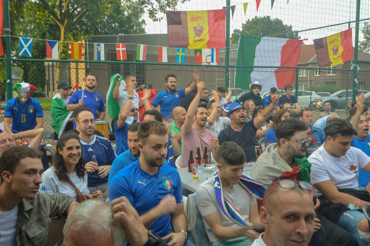 Het zag er lang bekaaid uit en de massa Italiaanse supporters aan La Baracca vreesden dat er deze keer geen feestje inzat. Maar eindelijk besliste de laatste penalty over Europese winst voor de Azzurri. Voor de Belgen één troost: ze zijn uitgeschakeld door de Europese kampioenen. Maar op Lindeman barstte het feest los en dat zal nog wel een hele tijd voortduren. (Foto's David Amgad)70070