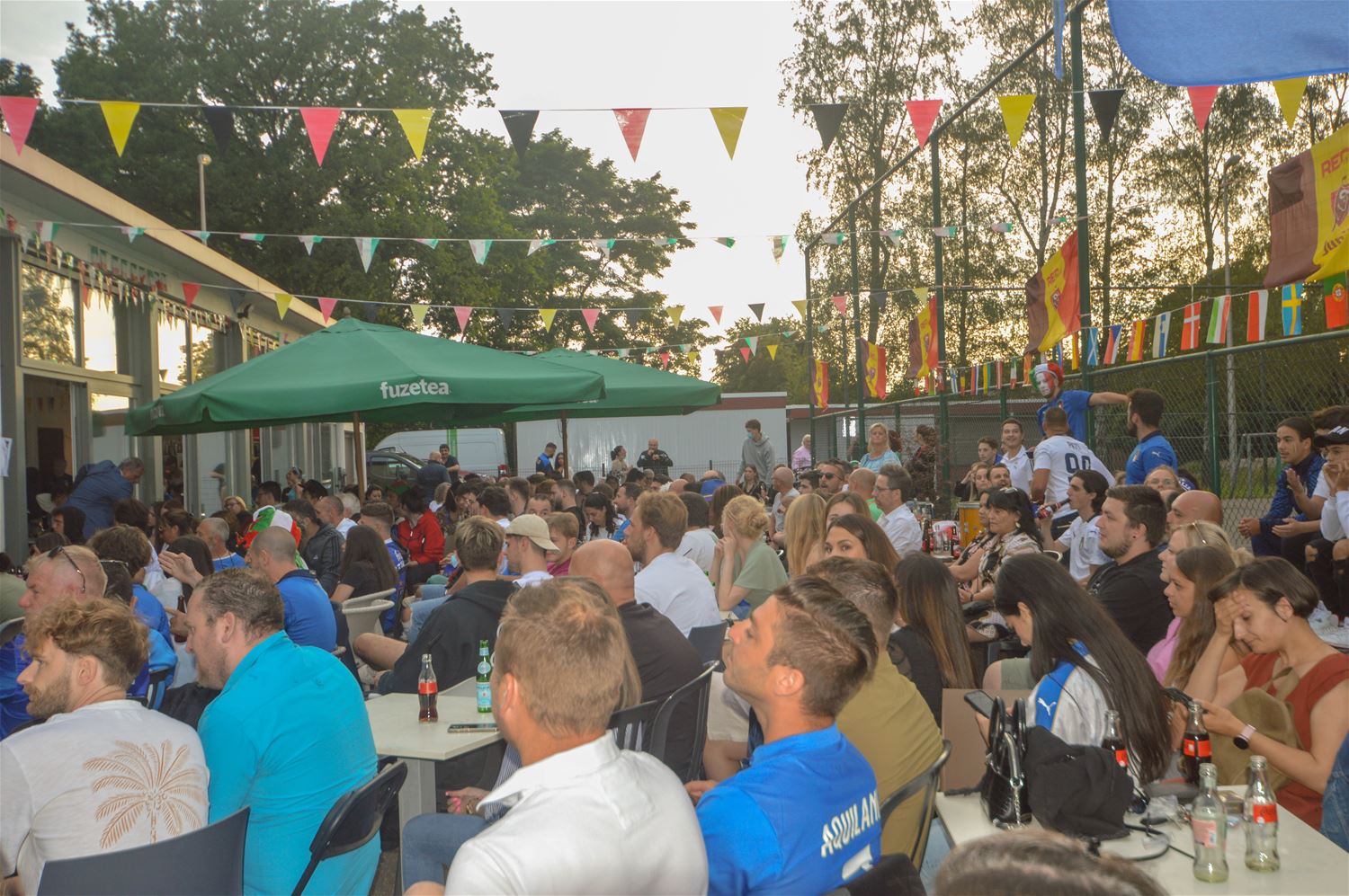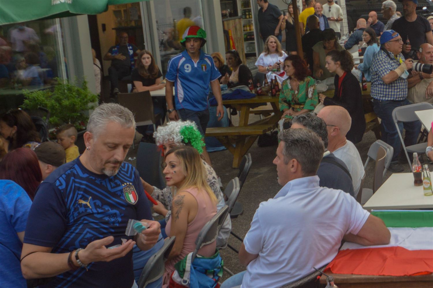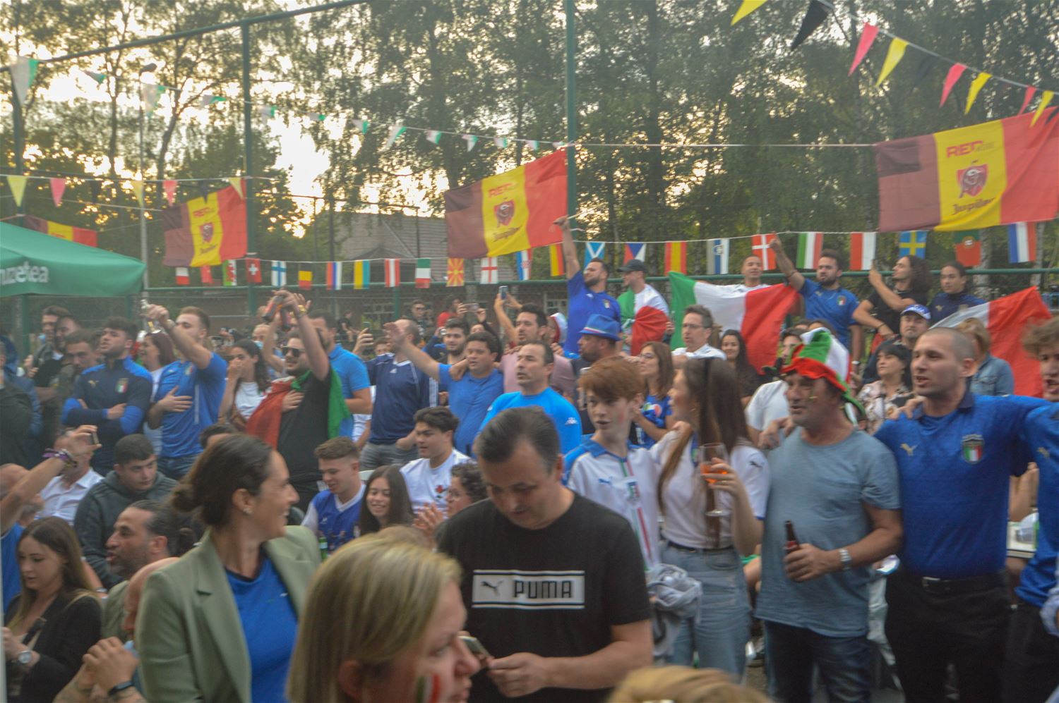Het zag er lang bekaaid uit en de massa Italiaanse supporters aan La Baracca vreesden dat er deze keer geen feestje inzat. Maar eindelijk besliste de laatste penalty over Europese winst voor de Azzurri. Voor de Belgen één troost: ze zijn uitgeschakeld door de Europese kampioenen. Maar op Lindeman barstte het feest los en dat zal nog wel een hele tijd voortduren. (Foto's David Amgad)70070