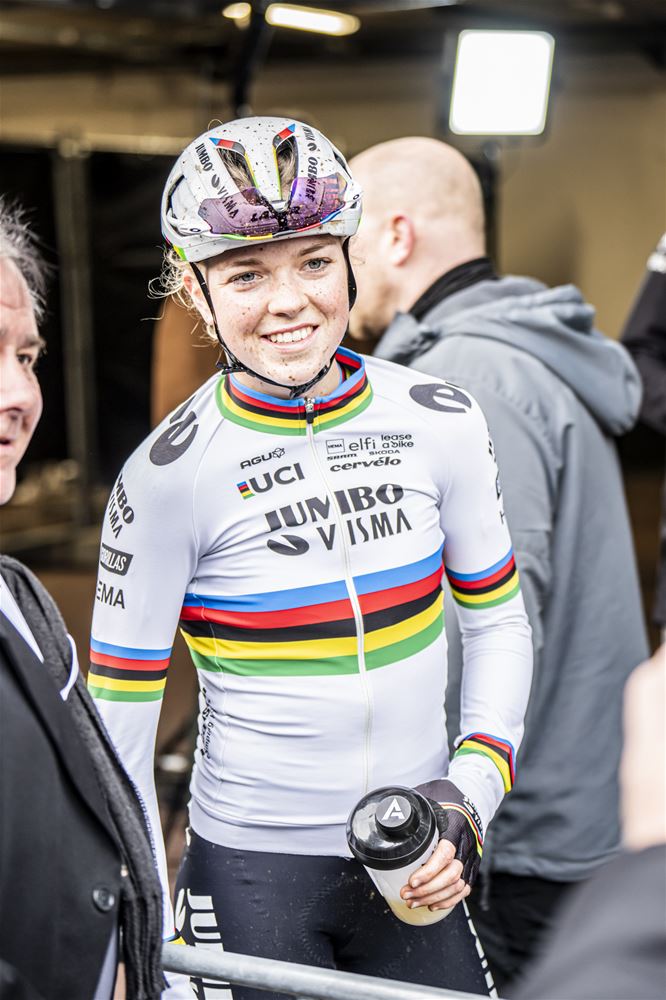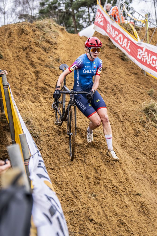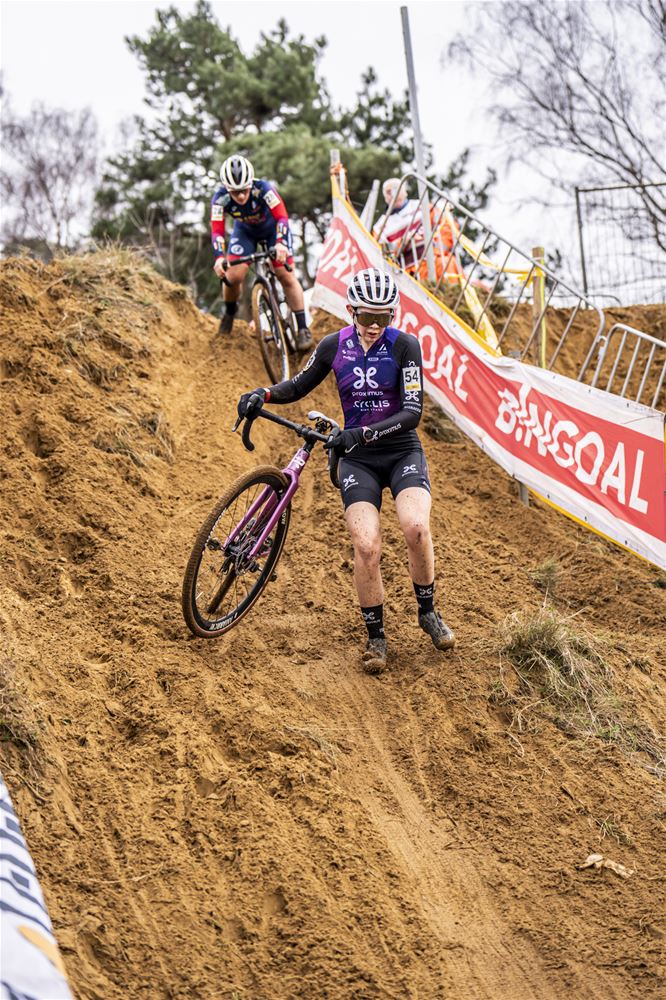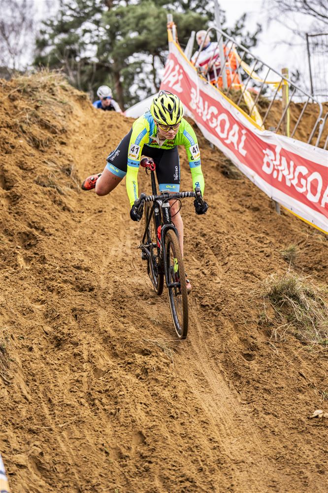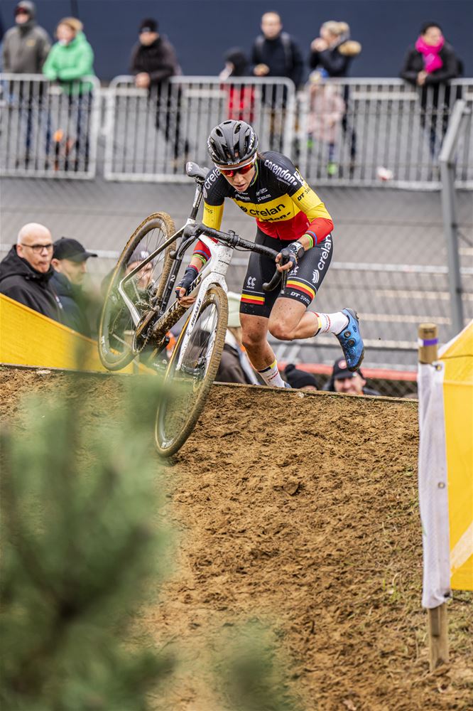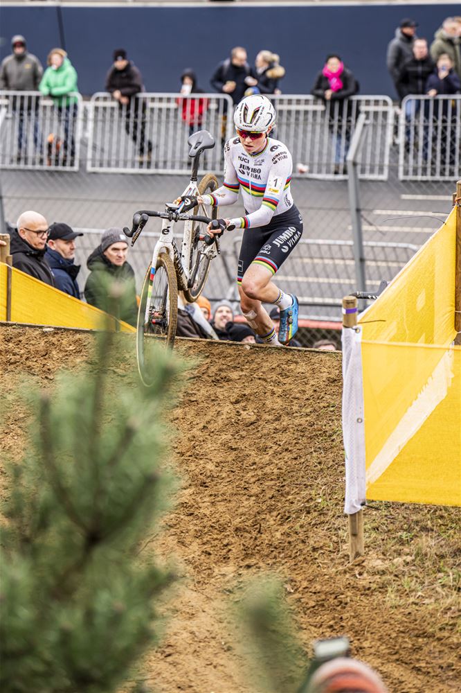 De vrouwen serveerden het publiek een prachtige manche van de Superprestige, met dank aan de Nederlandse toppers wereldkampioene Fem van Empel en Ceylin Alvarado. Even leek de tweestrijd in het water te vallen, toen Van Empel vroeg in de koers in een afdaling viel en terechtkwam op haar knie, die haar eerder al parten speelde. Ze zette evenwel een sterke achtervolging in, kwam terug bij Alvarado, beiden wilden elkaar geen duimbreed toegeven. Dat getouwtrek leidde in de slotronde zelfs tot twee kleine incidentjes, waarbij ze elkaar hinderden. Het kwam tot een spurt en daarin was de wereldkampioene andermaal de snelste. Inge van der Heijden maakte 16 seconden later het Nederlandse podium compleet. Belgisch kampioene Sanne Cant - luid toegejuicht langs het parcours - reed één van haar beste crossen van het seizoen en werd vierde op 40 seconden. Annemarie Worst - vandaag zesde - blijft aan de leiding in de Superprestige, maar houdt maar één punt meer over op eerste achtervolger Del Carmen Alvarado. (foto's Dirk Dekens)79603