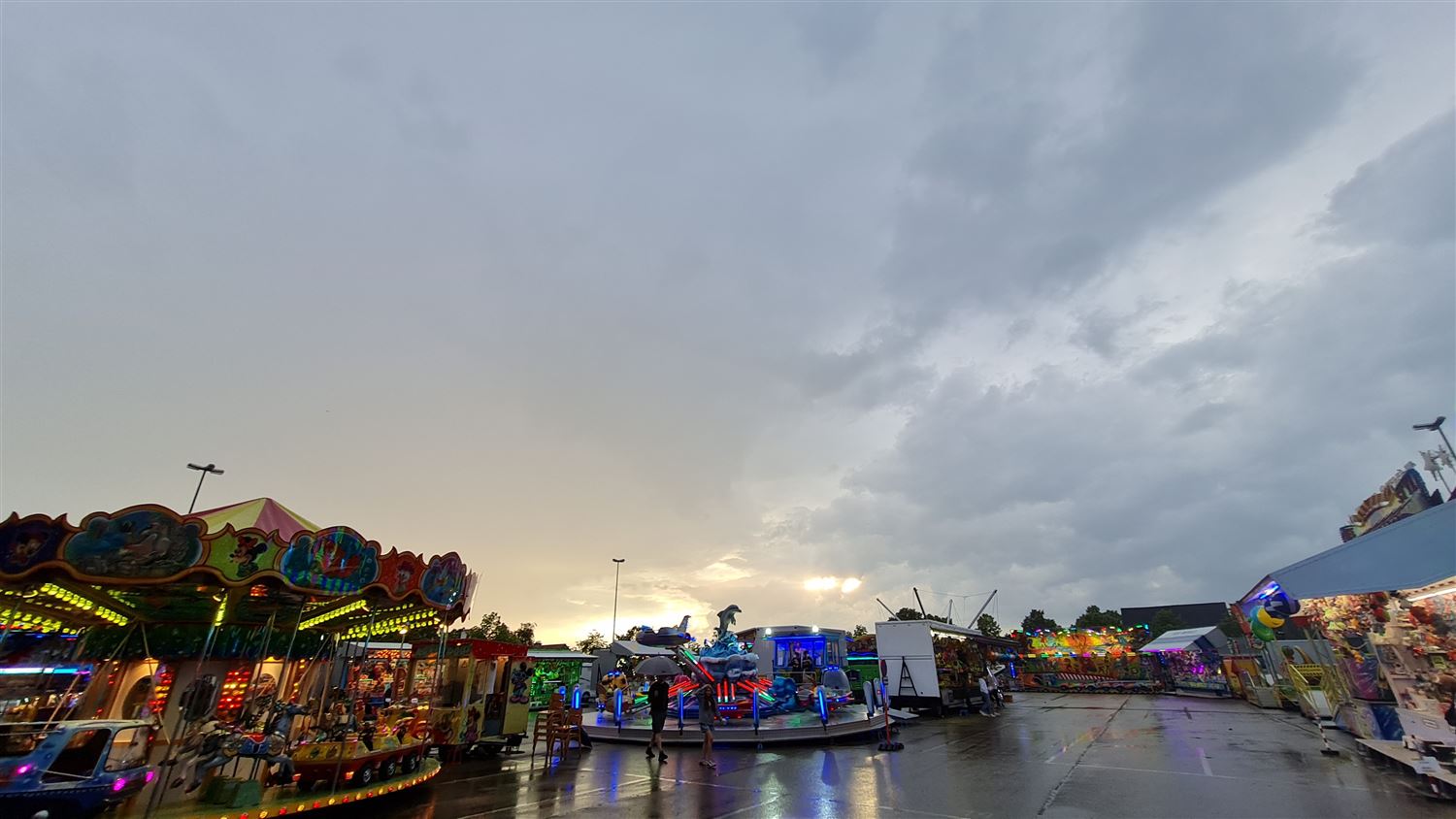Kort voor de aftrap van de match Portugal-België kwam de zon even piepen en wierp een mooie schijn over de Heusdense kermis. (foto Kim Adriaens)69926