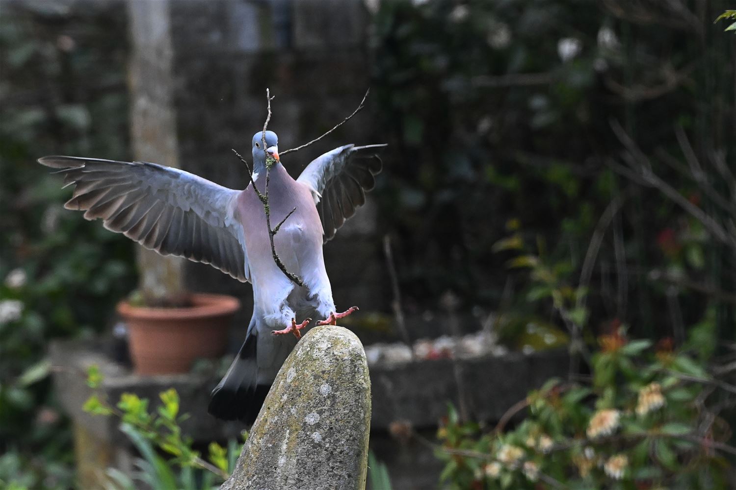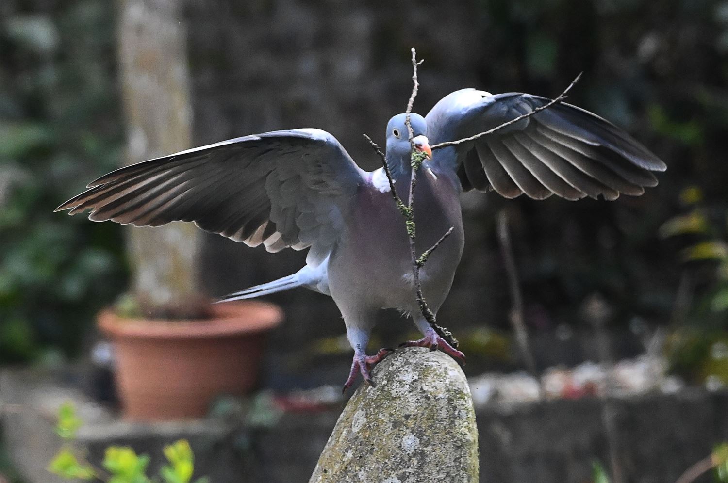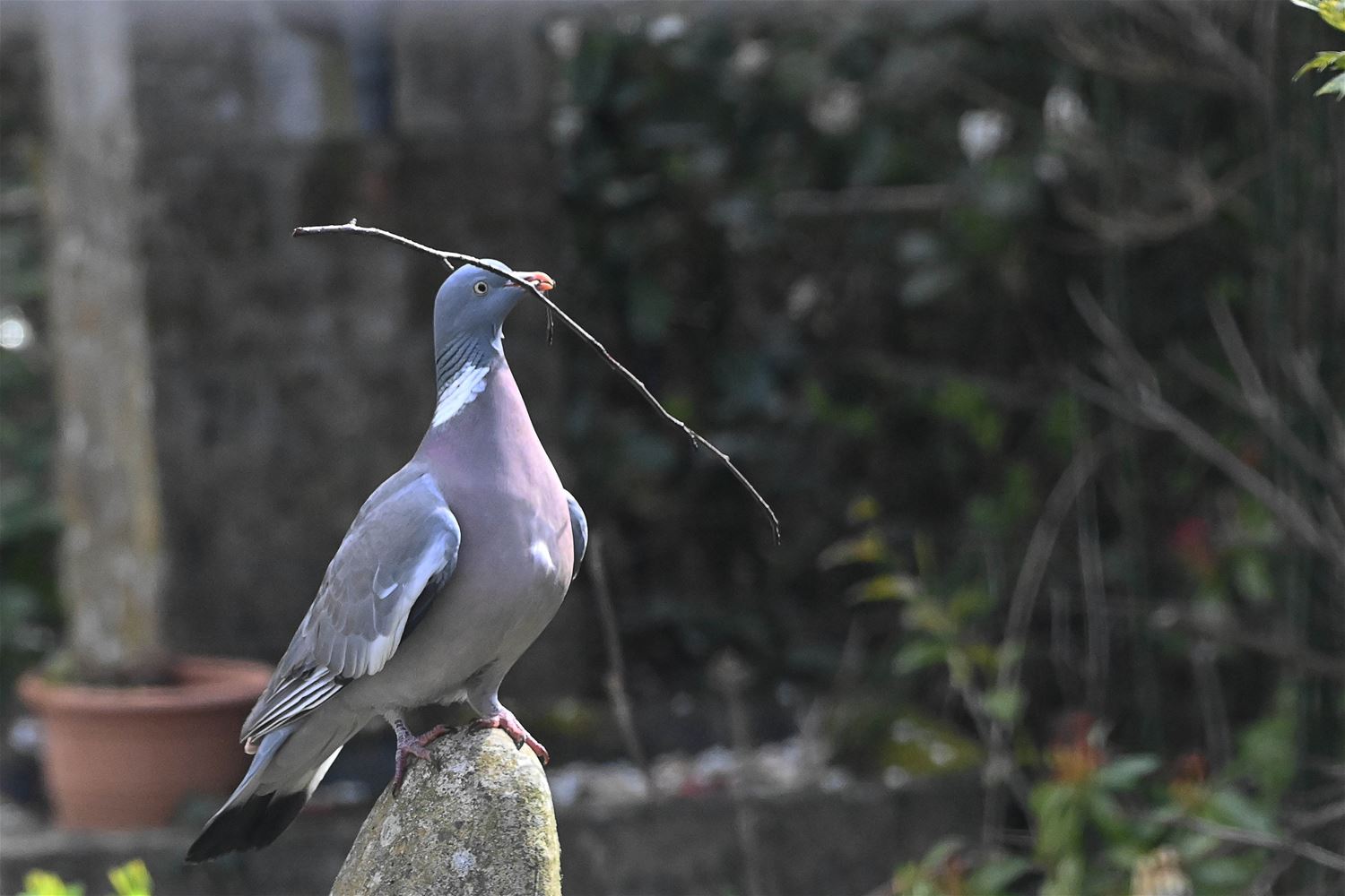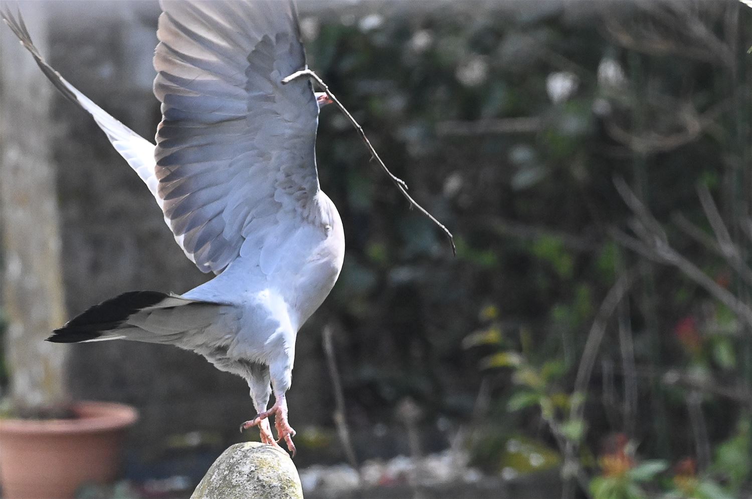 Lowie Gielis heeft vandaag een bosduif (houtduif) geobserveerd die druk in de weer was met takjes aan te voeren om haar nest te bouwen. Het was hard werken en voor de duif was de korte vakantie in de bouwsector dan ook duidelijk achter de rug. 69168