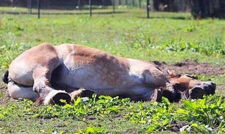 Even dacht onze fotograaf dat dit paard morsdood lag in een weide in Viversel. Maar even later bleek het springlevend. Het lag gewoon lekker lui te maffen in de zon. Ach, hoe zou je zelf zijn?3202
