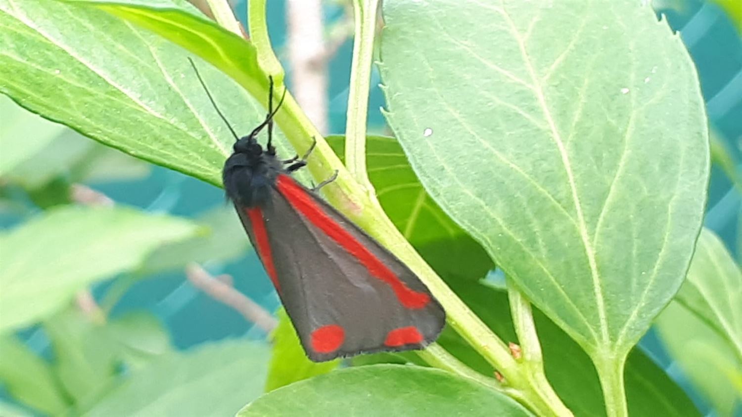 kreeg een Sint-Jacobsvlinder op bezoek in de tuin.