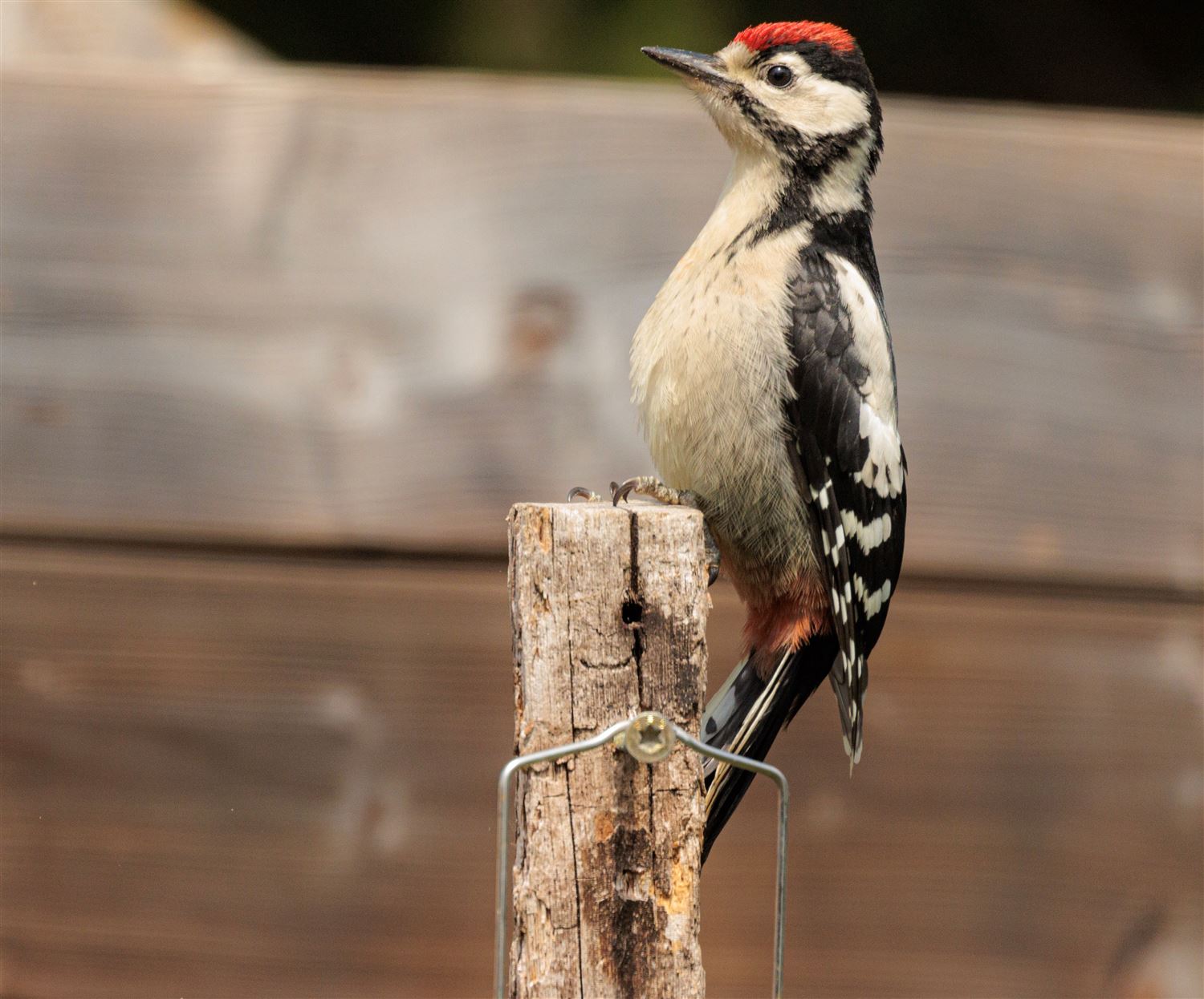 Neen, dit is geen totempaal, maar wel een jonge bonte specht die op de uitkijk zit. (foto Cedric Vancluysen)73226