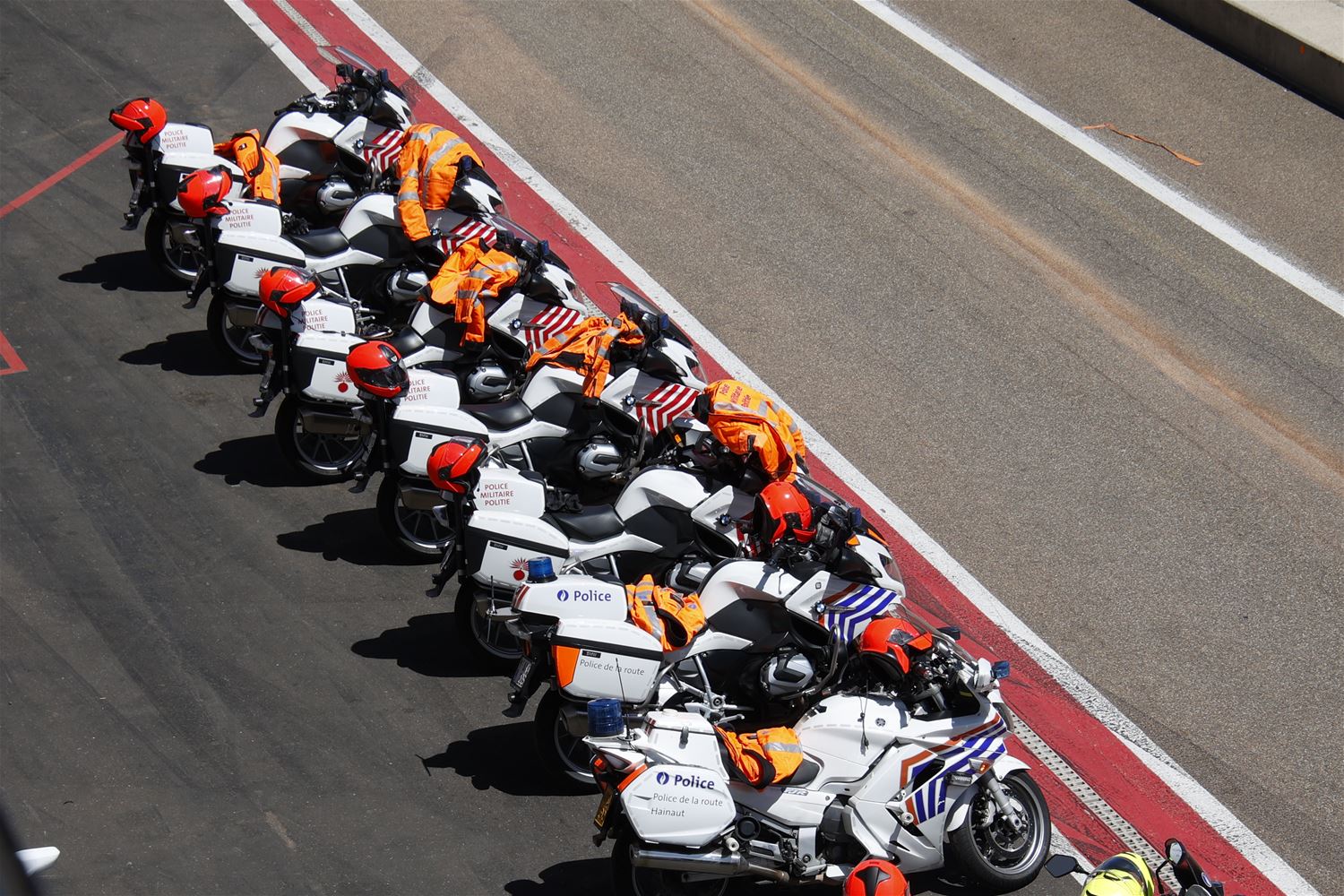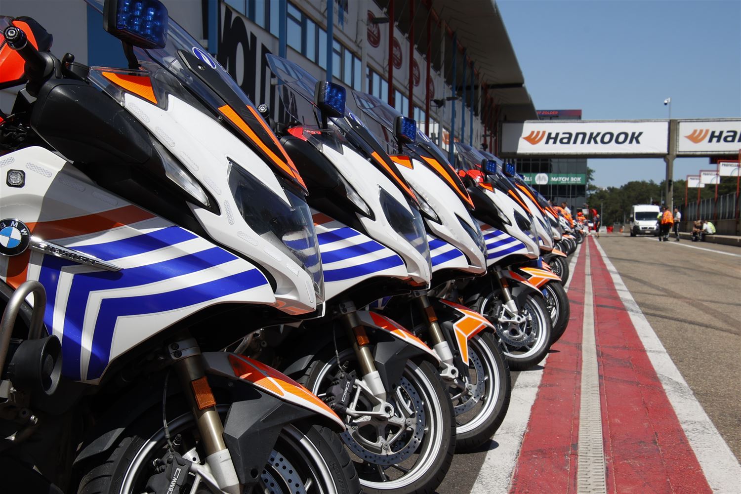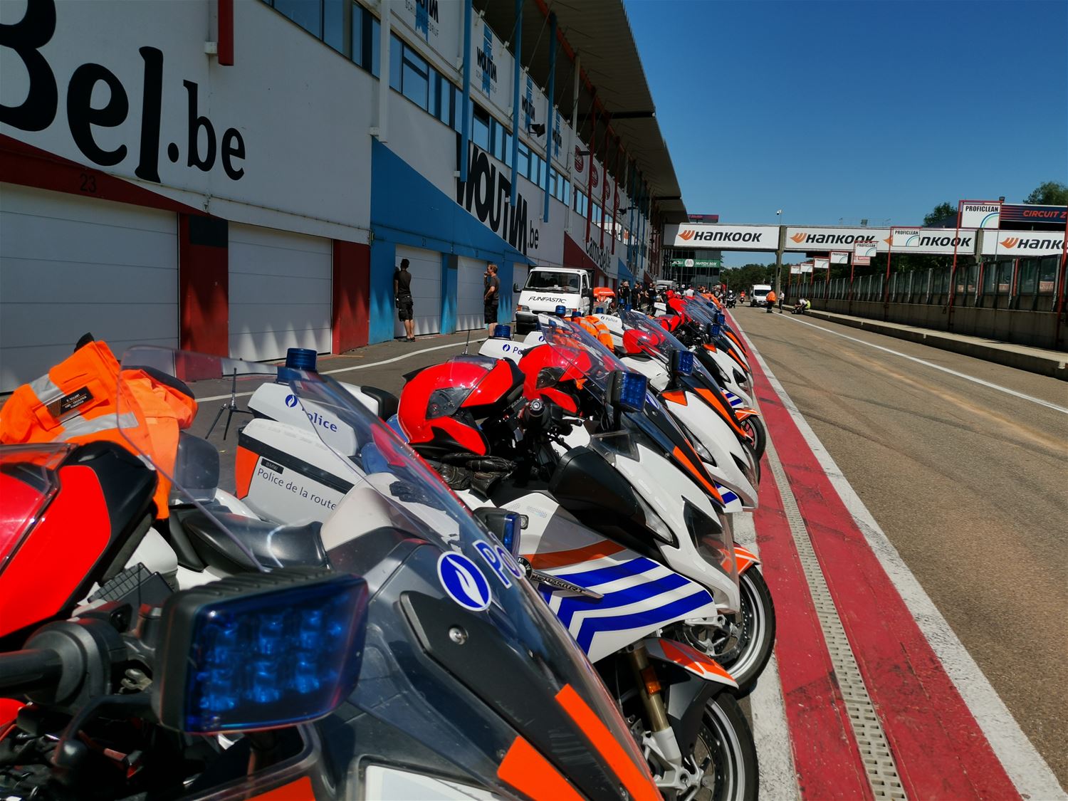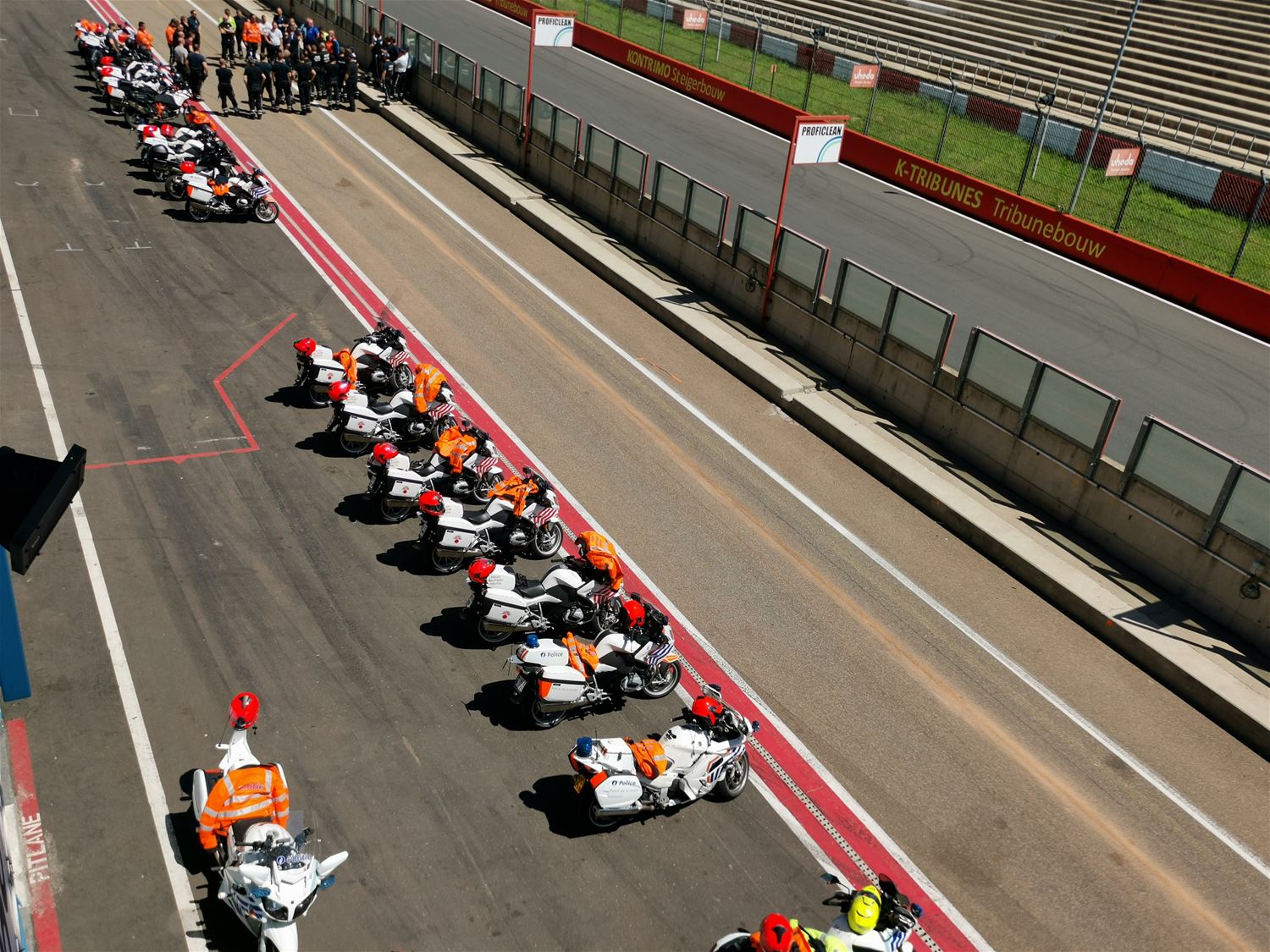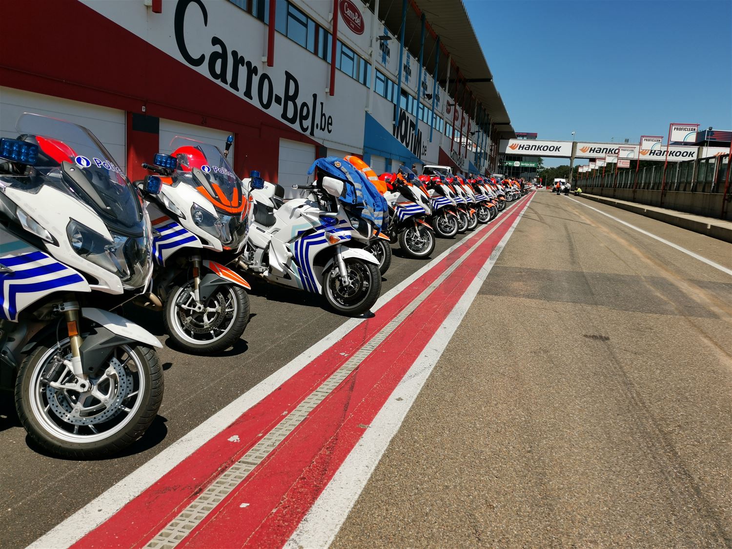 Normaal zitten zwaantjes op het water, maar zoveel als er vandaag op Circuit Zolder waren verzameld, hebben we er nog niet vaak op het droge gezien. Ze kwamen van de wegpolitie en de militaire politie uit het hele land. Het leek wel alsof het broedseizoen ten einde was gelopen. 73354