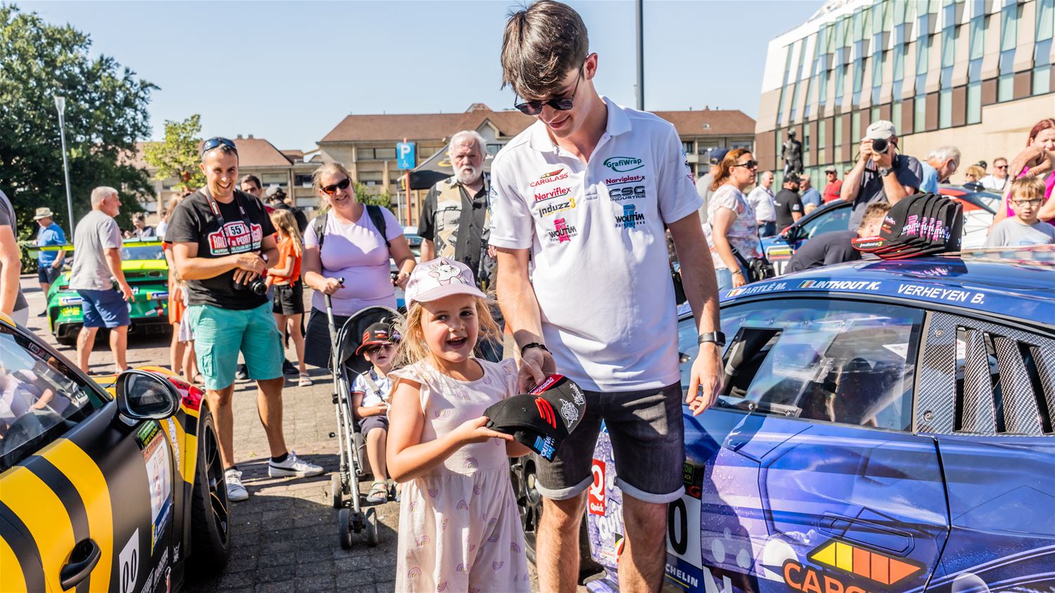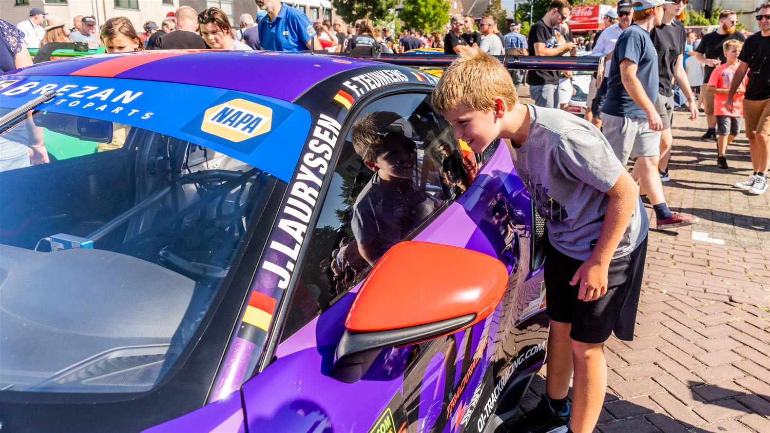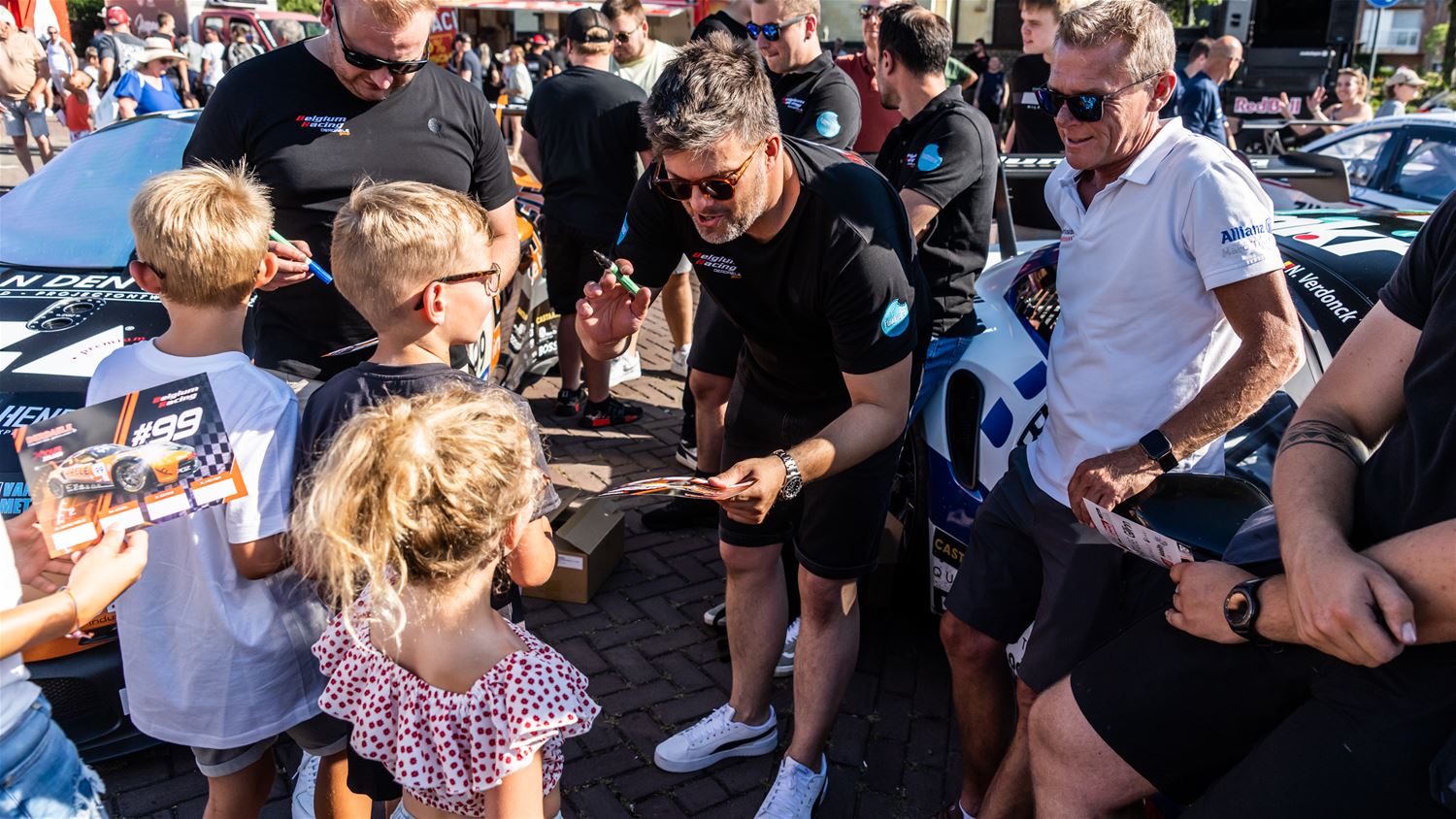 Er was erg veel belangstelling voor de static show van de deelnemers aan de 24 Uren van Zolder die in de late namiddag en vooravond verschillende uren op het Heldenplein vertoefden. Daar gebeurde de technische controle en kregen de teams ook een briefing. Jonge en minder jonge liefhebbers konden zich ondertussen van dichtbij vergapen aan de bolides, foto's schieten en op handtekeningen jagen bij de rijders. De meest gelukkigen mochten ook even aan het stuur plaatsnemen. Dreunende klanken zorgden voor de gepaste sfeer. Morgenavond rijden de deelnemers hun kwalificaties die uitlopen tot in het donker. (foto's Dirk Dekens)74861