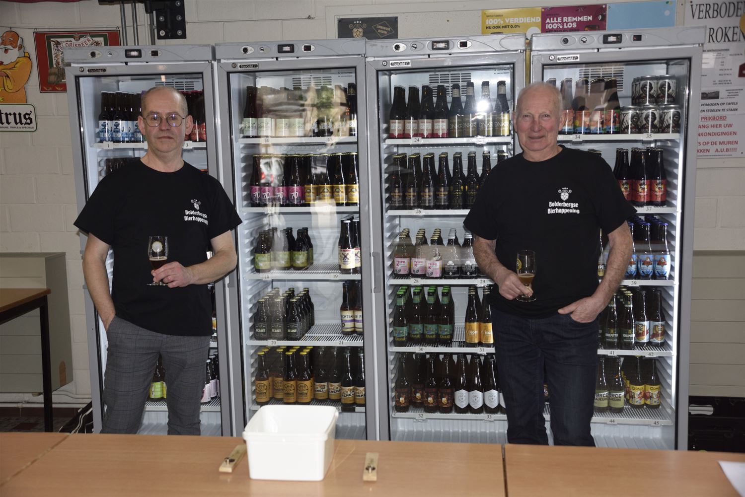 De Bolderbergse Bierhappening was zaterdag opnieuw een succes. Al in de vroege namiddag liep de Witte Zaal vol met bierliefhebbers. De happening heeft in de loop der jaren een trouw publiek opgebouwd en daarnaast ontdekken ieder jaar weer nieuwe bezoekers het event. ’t Is dan ook dé plek waar je een overzicht en aanbod krijgt van de Limburgse bieren. Ook die zitten nog steeds in de lift, elk jaar zijn er weer nieuwe soorten, soms met namen die tot de verbeelding spreken. En ook op de Bolderbergse Bierhappening kom je er niet omheen dat de alcoholvrije of -arme bieren aan populariteit winnen. Overigens, voor wie er nog nooit geweest is, proeven komt op de happening boven drinken. De meeste liefhebbers delen hun biertjes zodat ze er kunnen over praten en discussiëren en er meerdere bieren kunnen geproefd worden zonder overmaat. Tussendoor kon ook een frisdrank of een aangepast hapje genuttigd worden. Zaterdagavond laat konden de Bolderbergse biervrienden tevreden aan de opruim beginnen. (foto’s Roger Convents)87964