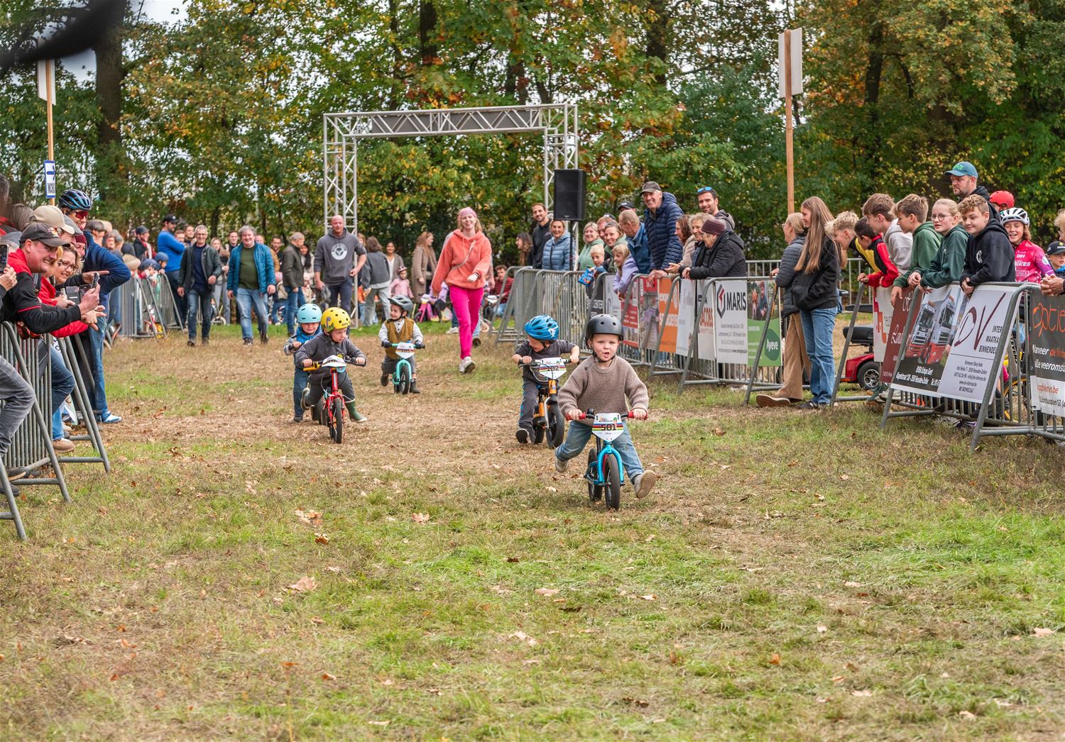 Eén van de hoogtepunten van de tweedaagse veldrijden van wielerclub Berg-Op Eversel, was de afsluiter van vandaag: het wereldkampioenschap loopfietsen, een organisatie samen met de Gezinsbond Bolderberg. Kleuters mochten in verschillende leeftijdscategorieën hun eigen wedstrijden betwisten, daarbij luid aangemoedigd door familie en supporters. Er waren enkele valse starts maar iedereen heeft glorierijk de finish gehaald. Daar wachtte een kleurrijk molentje als trofee. Misschien zien we sommigen over een aantal jaren terug bij de andere wedstrijden ... (video en foto's Ann Jordens)86657