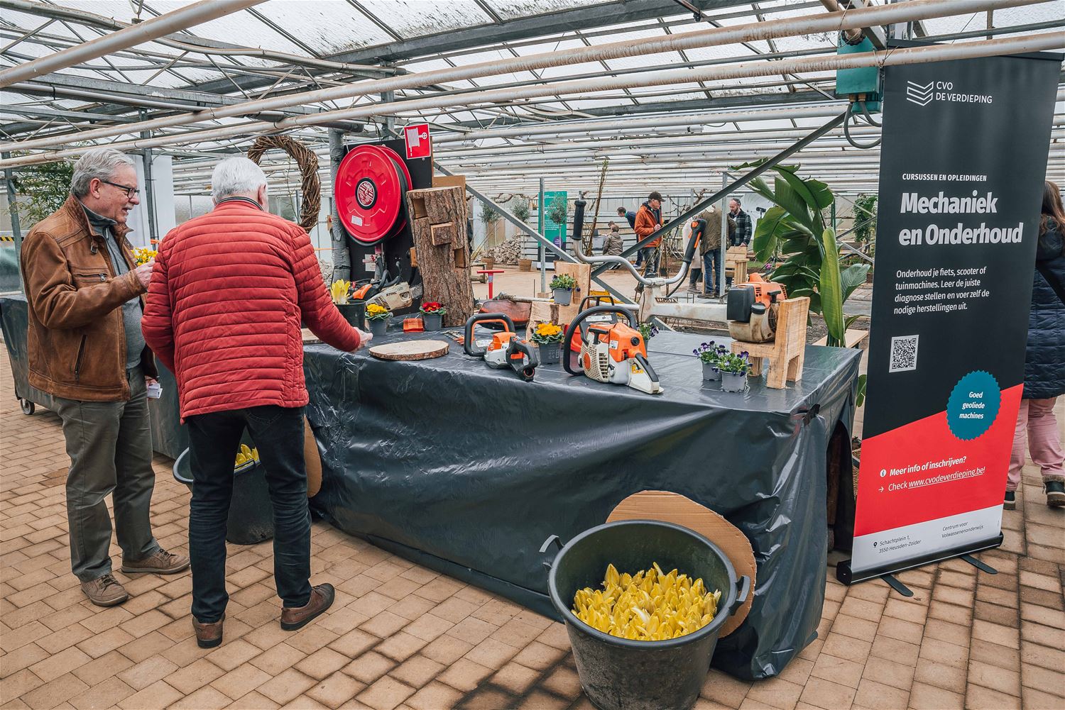 In de serres van CVO De Verdieping in de Ganzenstraat - en ook buiten - was het deze voormiddag erg druk voor de happening Buitengewoon Groen en Lekker. In de lente laten ze daar via demo’s, workshops, proeverijen en infomomenten al hun cursussen samenkomen die te maken hebben met zomer, lente, openlucht, … Zo was er veel belangstelling voor de cursussen rond tuinieren. Maar ook proeven en tips meekrijgen aan de barbecue is altijd een voltreffer, maar ook het bloemschikken, knutselen, de photobooth, … Heel wat bezoekers zijn met veel goesting en extra wijsheid teruggekeerd naar hun eigen tuin. (foto’s Ann Jordens)84771