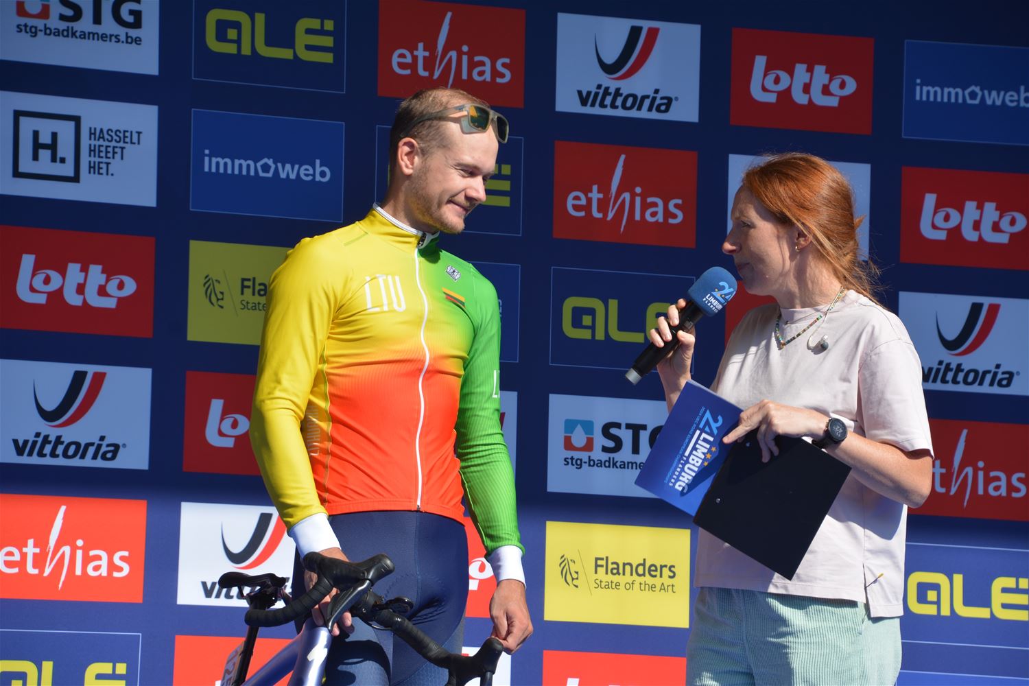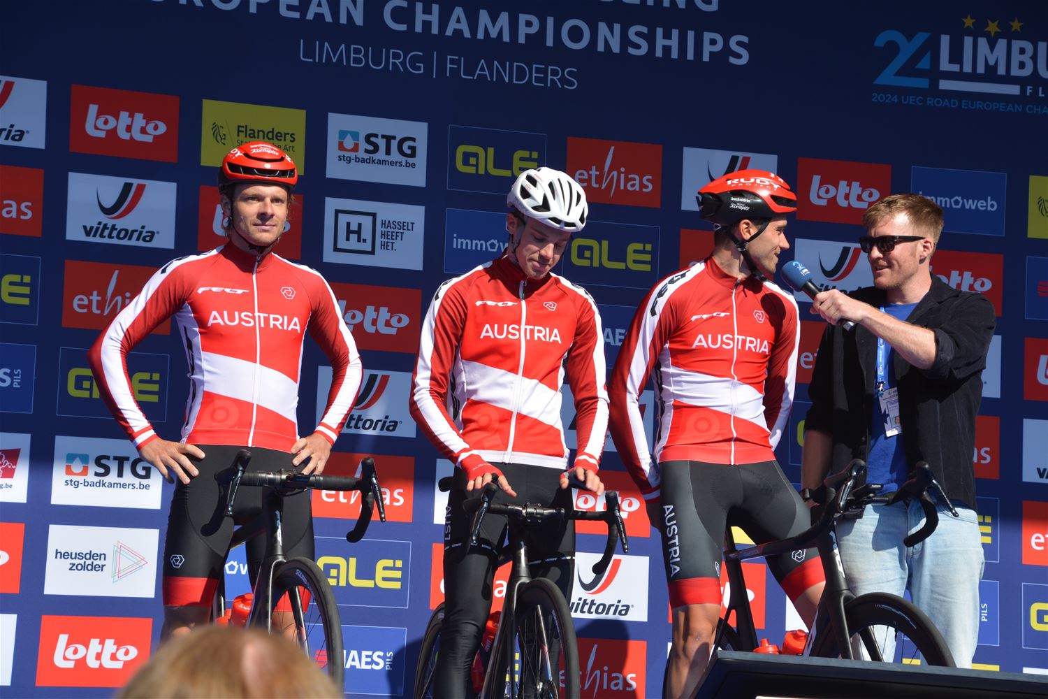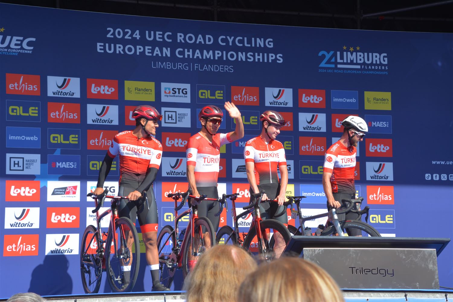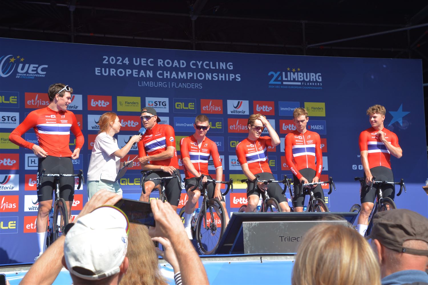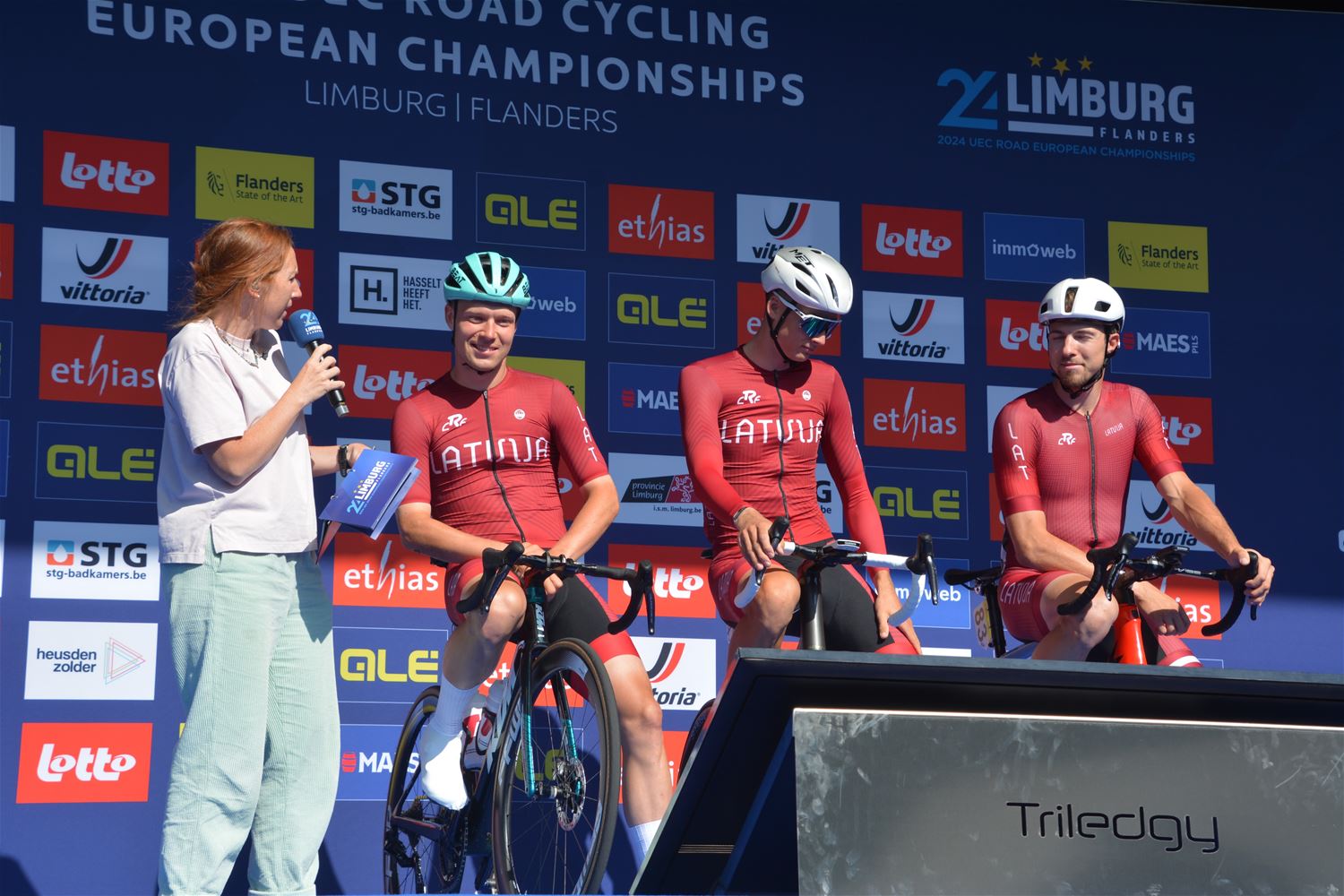 Er was vandaag veel volk opgedaagd voor de voorstelling van de eliterenners voor de wegrit. De fanzone was goed volgelopen toen op het podium de verschillende landenploegen werden voorgesteld, met ook een aantal interviews. De meeste renners oogden nog ontspannen en er konden nog wat grapjes af. Er vielen wat verrassingen te beleven onder meer een Litouwer en de renner van Vaticaanstad die beiden Nederlands bleken te spreken. Andere landenploegen mankeerden enkele renners wegens ziekte. En het Spaanse team kreeg zelfs exclusief een Limburgse vlaai cadeau. Voor Christophe Laporte en de andere Fransen klonk spontaan een Marseillaise uit het publiek. Een fel toegejuichte Mathieu van der Poel zag het helemaal zitten om voor de Europese trui te gaan die hij nog niet bezit, maar wil evenzeer de spurt aantrekken voor zijn landnoot Kooij. De Belgische spurtbommen Jasper Philipsen en Tim Merlier grapten dan weer dat ze elk een kant van de weg zouden kiezen. Ze konden in ieder geval rekenen op heel wat aanmoedigingen. (foto's Marina Poelmans)83043