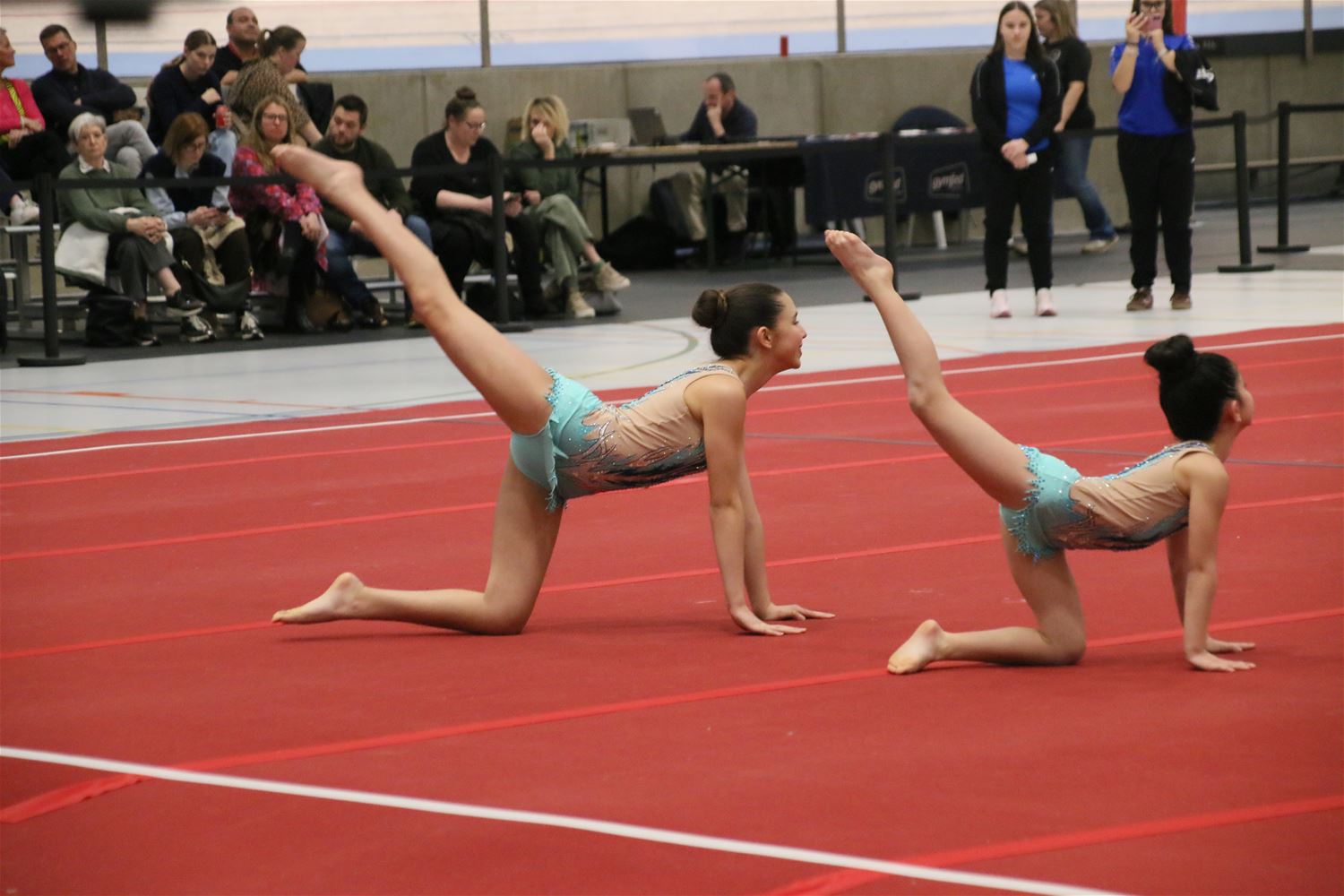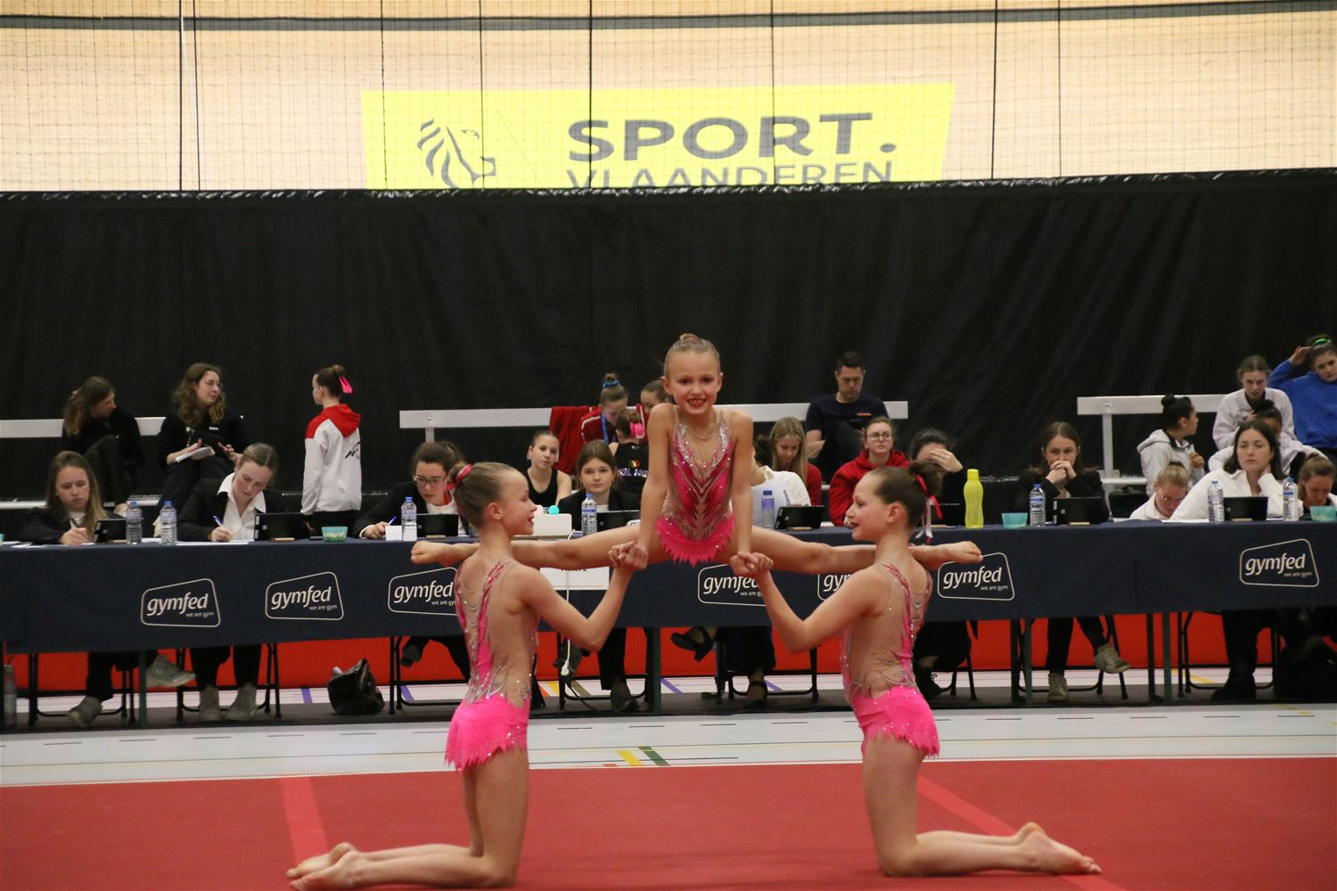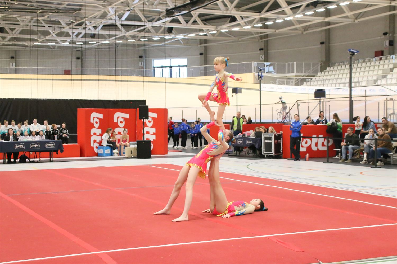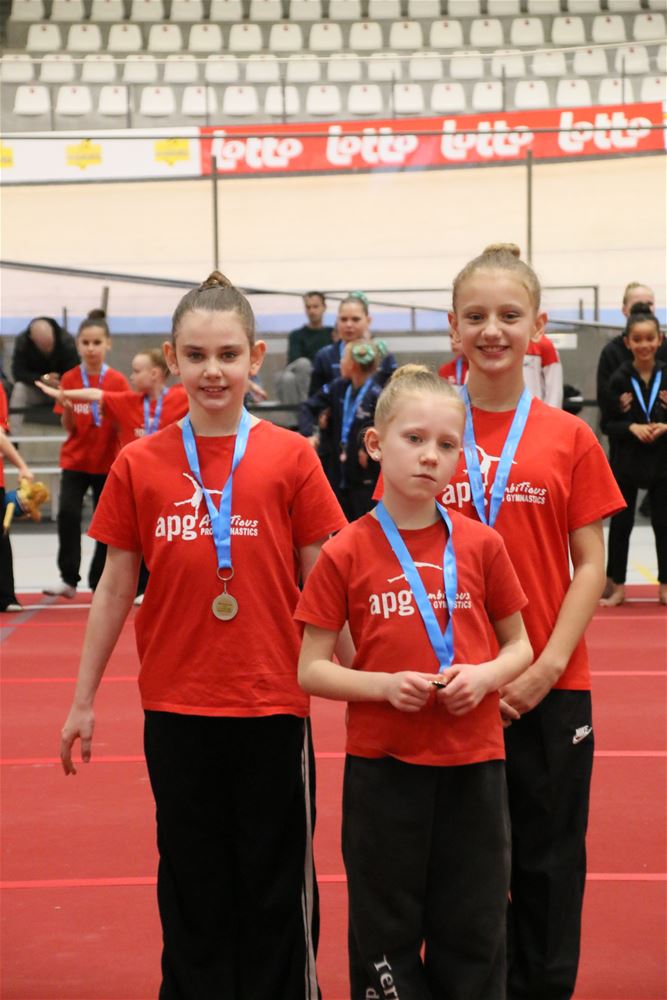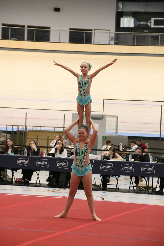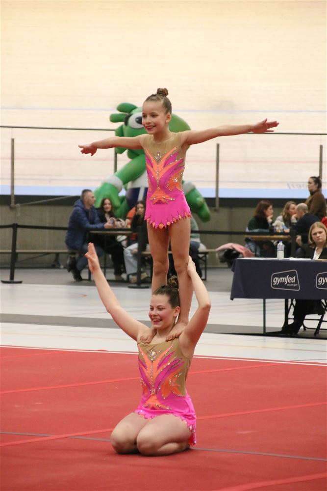 Op de eerste dag van het acro-tornooi voor recreanten dat Moed en Volharding in de Velodroom organiseert viel er al heel wat te beleven. Het publiek was bijzonder talrijk aanwezig en kreeg prachtige acro-nummers voorgeschoteld. Ook de allerjongste deelnemers dwongen bewondering af met hetgeen zij al op de mat presteerden. Overigens gaat het hier om gymnasten die tussen 2 en 5 uur per week trainen. En de ultieme beloning voor de jonge deelnemers was natuurlijk de medaille die aan het einde wachtte. Vandaag waren er drie sessies, morgen staan er nog twee op het programma. (foto’s Kyano Liefsoens)87844