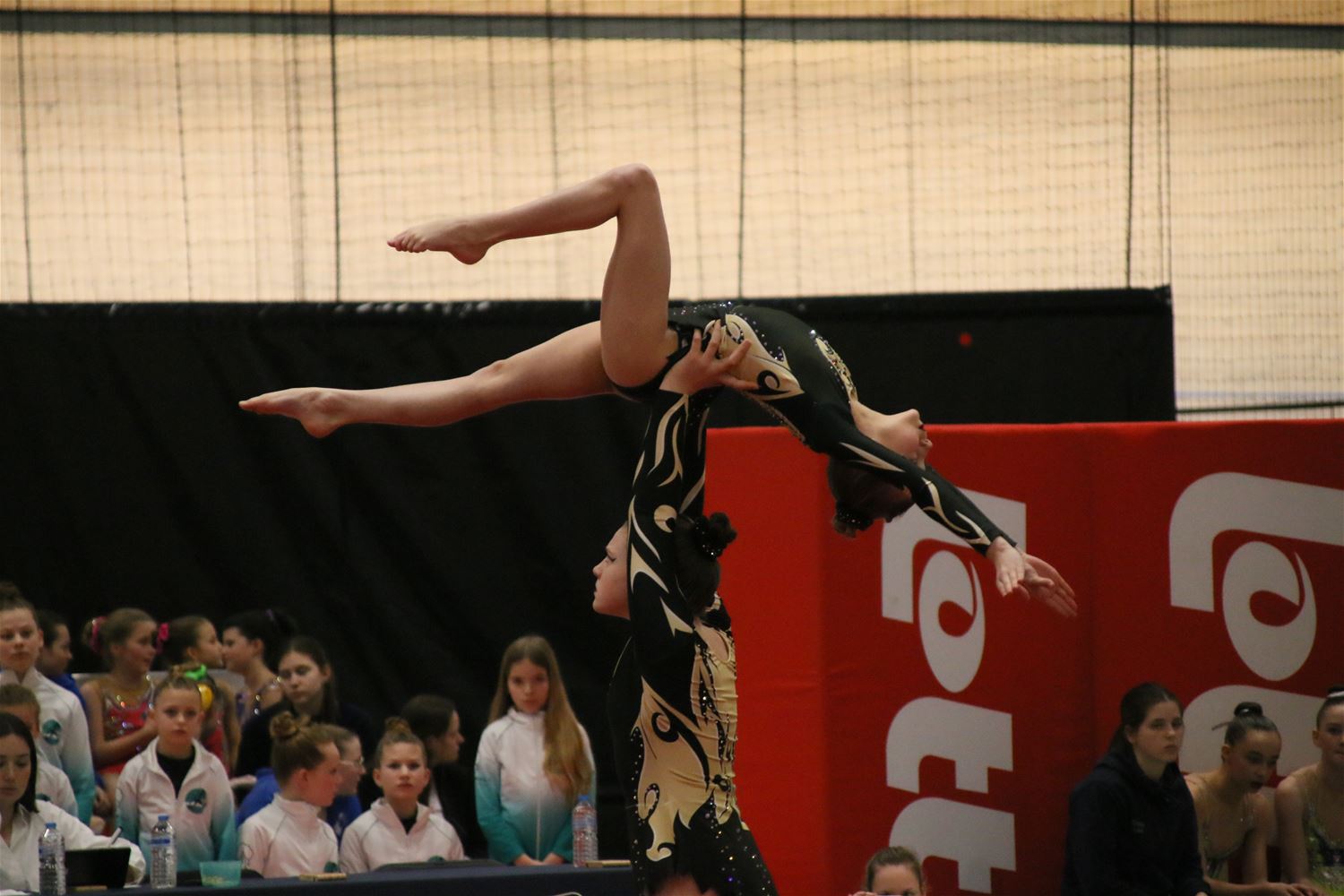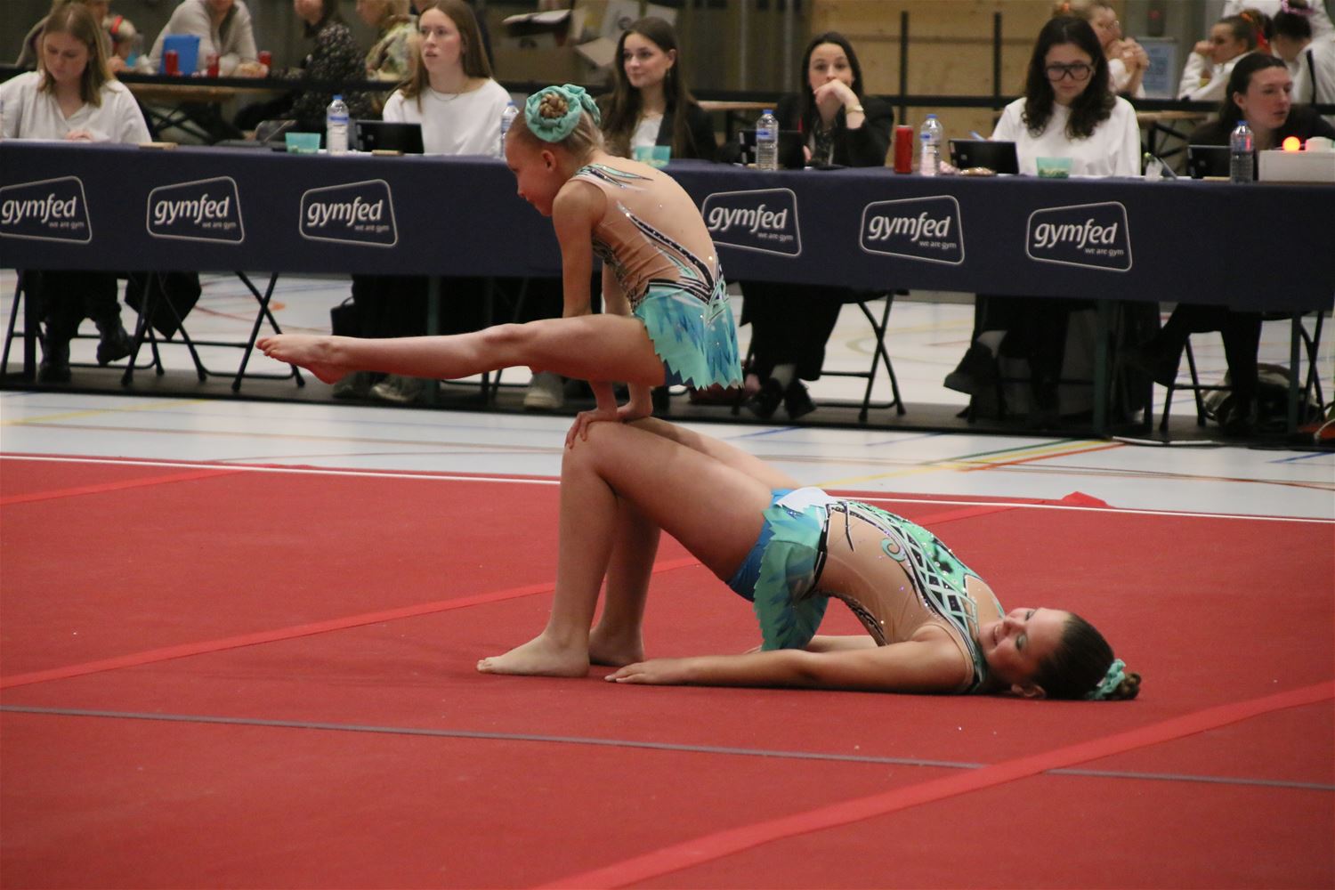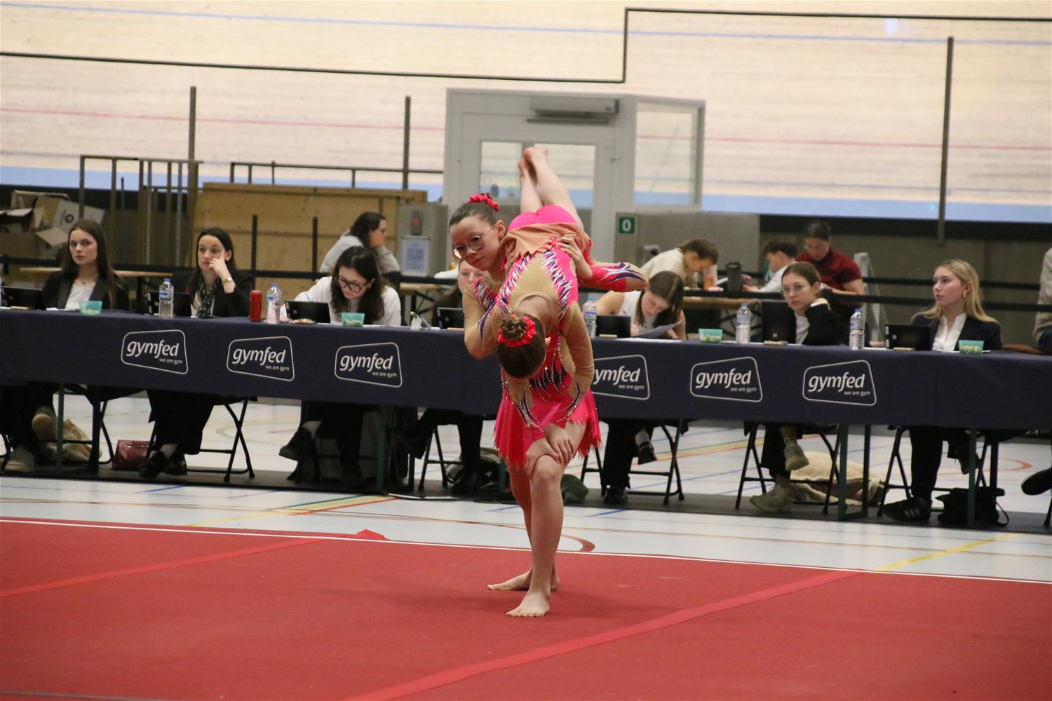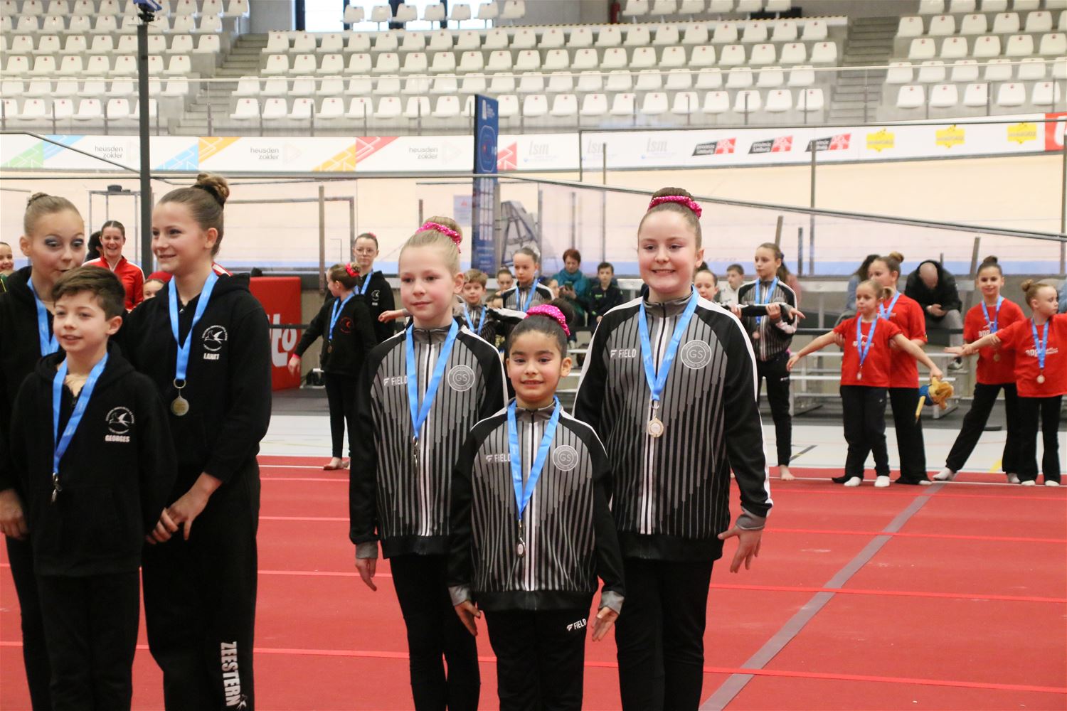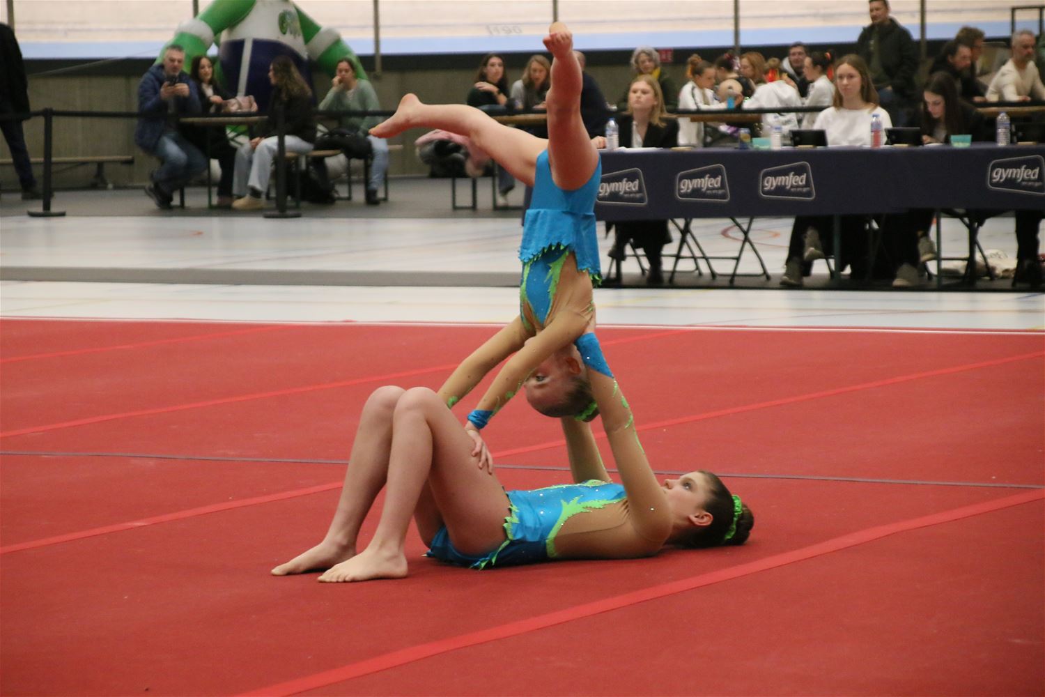 Op de eerste dag van het acro-tornooi voor recreanten dat Moed en Volharding in de Velodroom organiseert viel er al heel wat te beleven. Het publiek was bijzonder talrijk aanwezig en kreeg prachtige acro-nummers voorgeschoteld. Ook de allerjongste deelnemers dwongen bewondering af met hetgeen zij al op de mat presteerden. Overigens gaat het hier om gymnasten die tussen 2 en 5 uur per week trainen. En de ultieme beloning voor de jonge deelnemers was natuurlijk de medaille die aan het einde wachtte. Vandaag waren er drie sessies, morgen staan er nog twee op het programma. (foto’s Kyano Liefsoens)87844