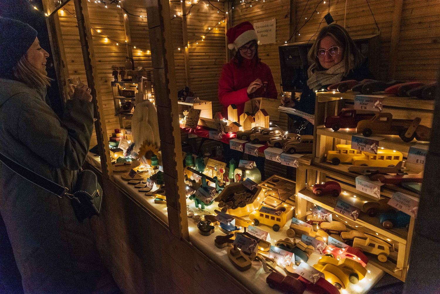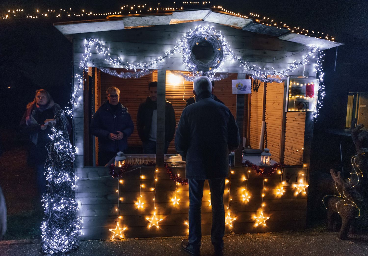 Het Wonderland herschiep het domein van 't Weyerke vanavond in een sfeervol kerstdorp. Niets was onverlet gelaten om er iets moois van te maken. Er kwam dan ook veel volk naar afgezakt, op zoek naar gezelligheid, naar lekkere drankjes en hapjes, maar ook naar cadeautjes voor de eindejaarsfeesten. En wat dat laatste betreft, was er een heel aanbod om uit te kiezen. Ook de kinderen waren niet vergeten, voor hen was er een draaimolen en animatie. (foto's Ann Jordens)79485