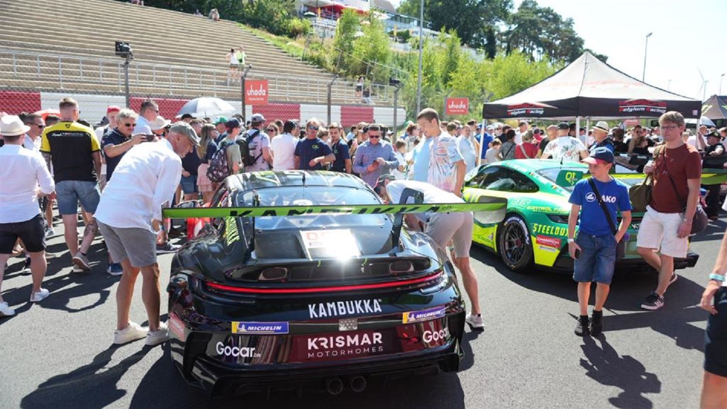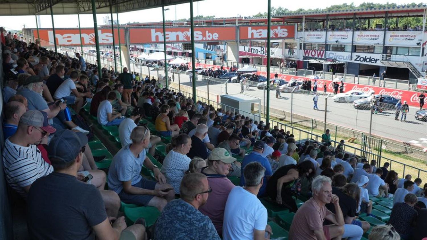 Onder een erg grote belangstelling - ondanks de verzengende hitte - is om 16 uur groen licht gegeven voor de 24 Uren van Zolder. Voor de start was de aankomstzone al overspoeld met liefhebbers voor de gridwalk. Nadien zochten heel wat mensen de schaduw van de overdekte tribune en de mezzanine op. Na bijna 2,5 race rijdt de Porsche 992 van Q1 Racing met Tommy Rau achter het stuur aan de leiding, vlakbij gevolgd door Sam Dejonghe in de Porsche 911 GT3 Cup van RED ANT Racing en Hans Thiers in de Porsche 992 van Russel Racing. Binnen de eerste 10 rijden 9 Porsches en Audi, maar uiteraard is in deze fase van de race alles nog mogelijk. Ondertussen is de race wel een tijd geneutraliseerd na een zware crash tussen een BMW en een Porsche, de Porsche sloeg zelfs over de kop. De rijders zouden ongedeerd zijn. Ondertussen ziet het er niet goed uit voor Cédric Wauters en co die de pole hadden veroverd. In de eerste bocht hadden ze al een probleem en hebben een hele tijd in de pits gestaan, het team telt nu 22 rondes achterstand op de leiders. (foto's Dirk Dekens)74883