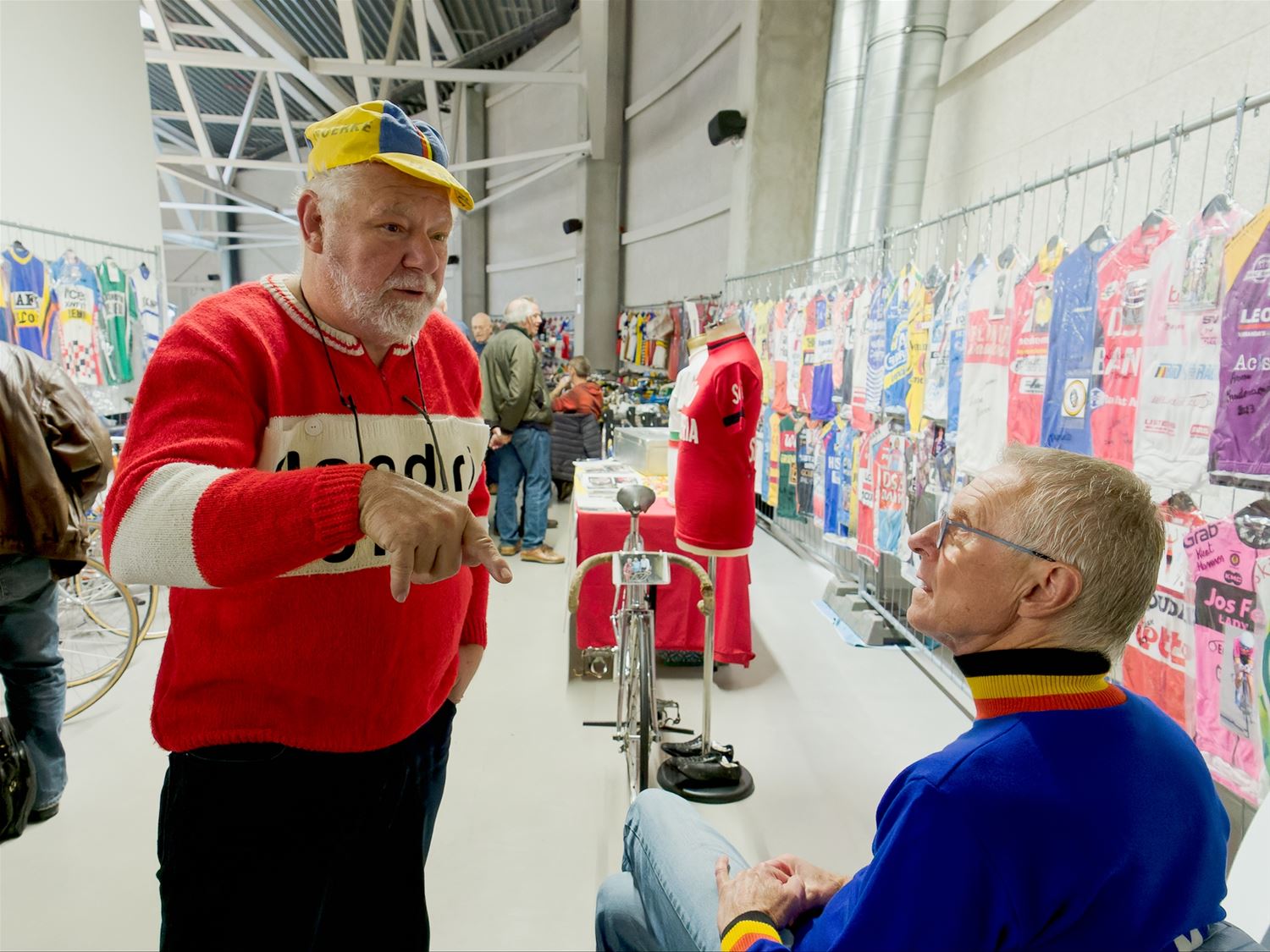 In de velodroom had vandaag een beurs plaats voor verzamelaars van wieler- en voetbalattributen. Het aanbod was verrassend breed, heel wat shirts uit het voetbal en vooral wielrennen, maar bijvoorbeeld ook koersfietsen, miniatuurwielrennertjes, boeken, prentjes, foto's, ... kortom een walhalla voor de liefhebbers. Organisator Gilbert Vanoppen was in zijn nopjes met het aanbod, iets waarin Luc Cops hem alleen maar kon bijtreden. (foto's Robrecht Froyman)83392