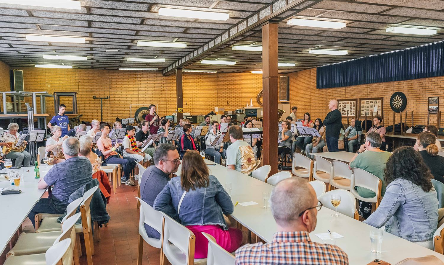 De Koninklijke Harmonie De Verenigde Vrienden heeft er een traditie van gemaakt om bij het begin van de zomervakantie enkele creatieve muziekdagen te organiseren met tussendoor heel wat ruimte voor pret en ontspanning. Deze keer was het thema 'Olympische Spelen'. Vandaag in de vooravond volgde dan de apotheose in de harmoniezaal met een themaconcert. Mooie muziekstukken en fijn uitgevoerd, dit had wat meer publiek verdiend. (foto's Ann Jordens)81484