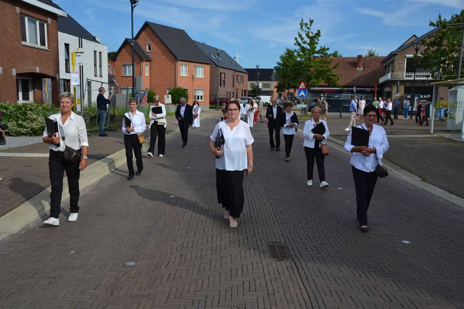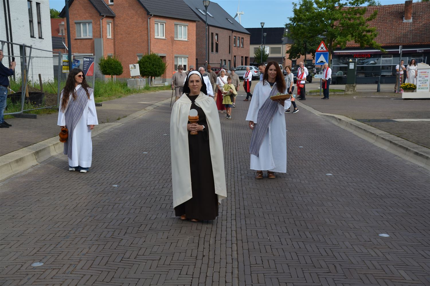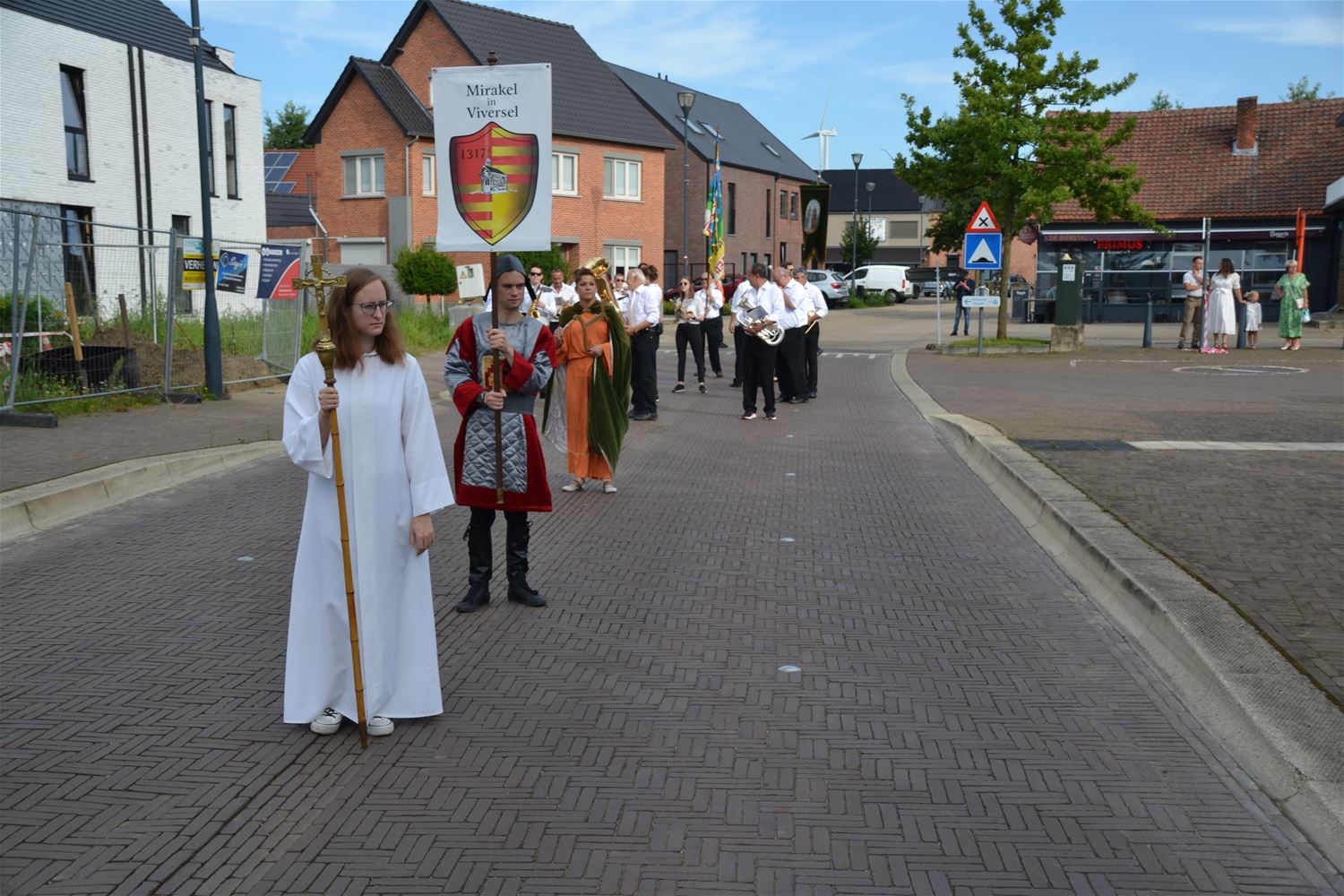 Het was vandaag ideaal weer voor de Sacramentsprocessie van Viversel die traditiegetrouw uittrekt op Maria Hemelvaart. Heel wat inwoners van Viversel hadden zich weer geëngageerd om deel uit te maken van de groepen die de legendes en historische gebeurtenissen uitbeelden. De harmonie zorgde voor de muzikale opluistering van de processie. Het zangkoor deed hetzelfde voor de eucharistie aan de Sacramentskapel die baadde in een bloemrijke omgeving waar Francis Bosmans voor had gezorgd. Een weetje: de jongeman die met het wierrookvat voor het sacrament uittrok was Zonhovenaar Bart Pluymers die binnenkort tot priester wordt gewijd. Achteraf bleven heel wat deelnemers wat napraten over een geslaagde processie, dat laatste vonden trouwens ook de organistoren Carien en Margot. (foto's Lode Beylemans)78291