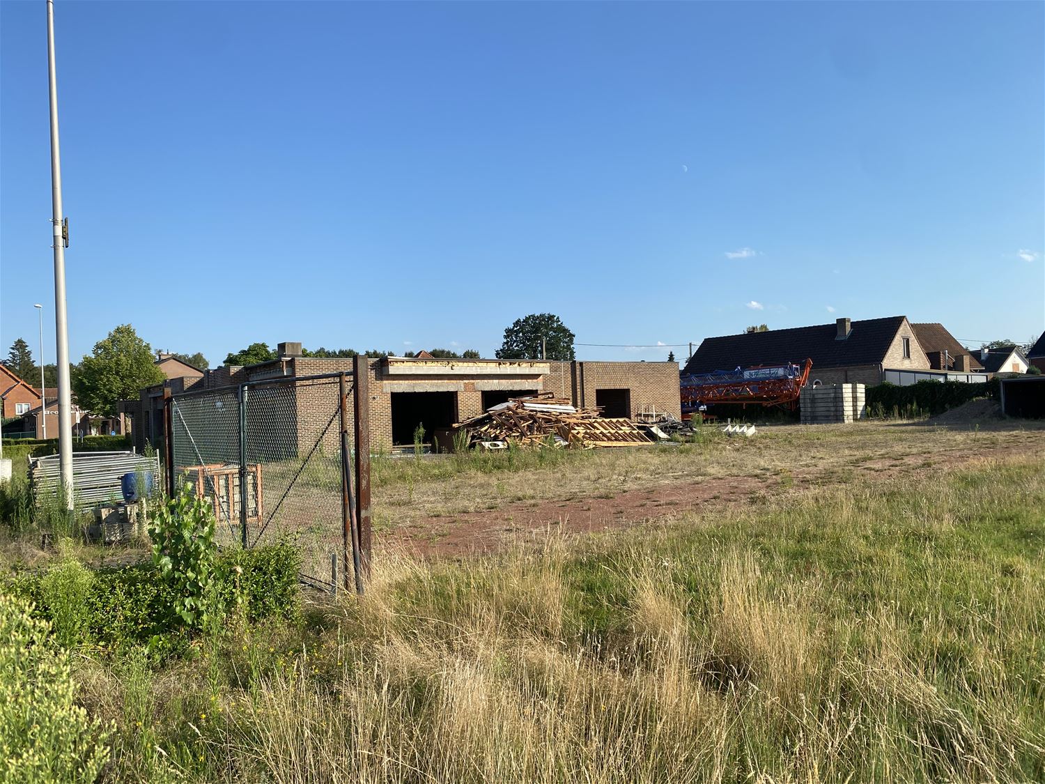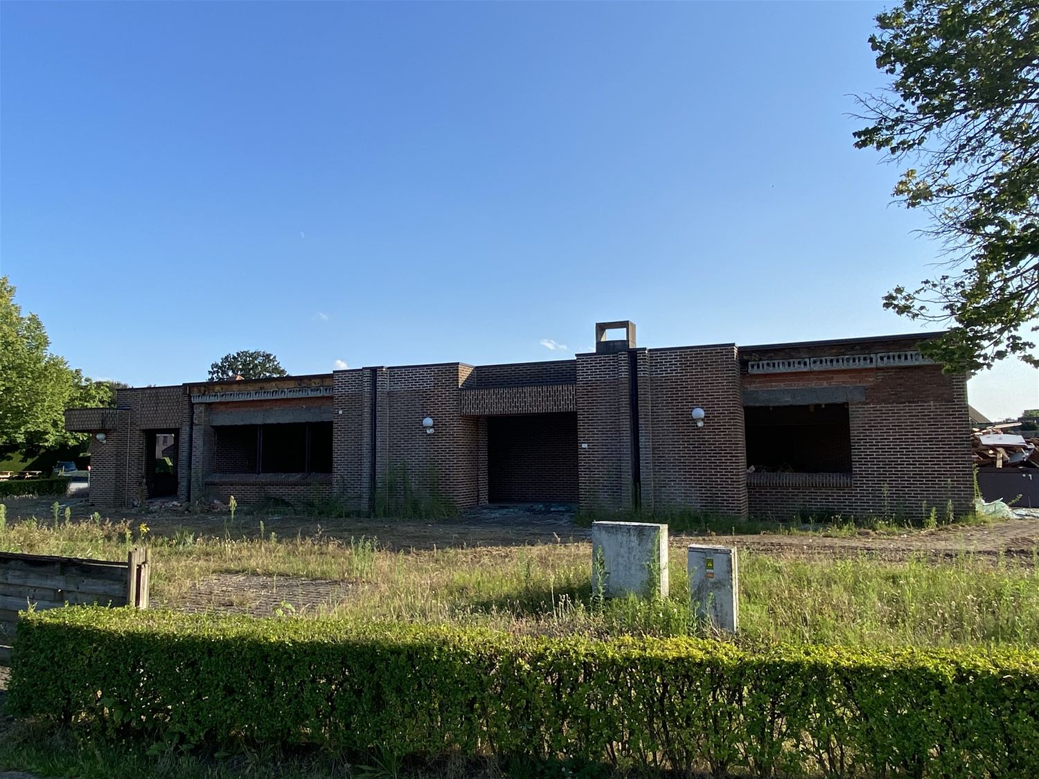 Langs de Meylandtlaan is de ontmanteling gestart van de vroegere feestzaal De Klimroos. Die maakt zoals bekend plaats voor een nieuw restaurant van McDonalds. Ramen en deuren zijn al verwijderd, ook de binnenkant en het houtwerk zijn grotendeels weggehaald. De nadar ligt klaar om de werfzone af te bakenen. Na de afbraak kunnen de werkzaamheden voor de bouw van de McDonalds van start gaan. De bouw van die restaurants vordert doorgaans vrij snel, maar in dit geval worden ook nog het snellaadstation voor 12 elektrische voertuigen van Q8 gebouwd worden, net als een fietsenstalling met oplaadpunten voor elektrische fietsen. De eerste hamburgers zullen dus de eerste maanden nog niet verorberd worden. (foto's Michiel Reynders)82692