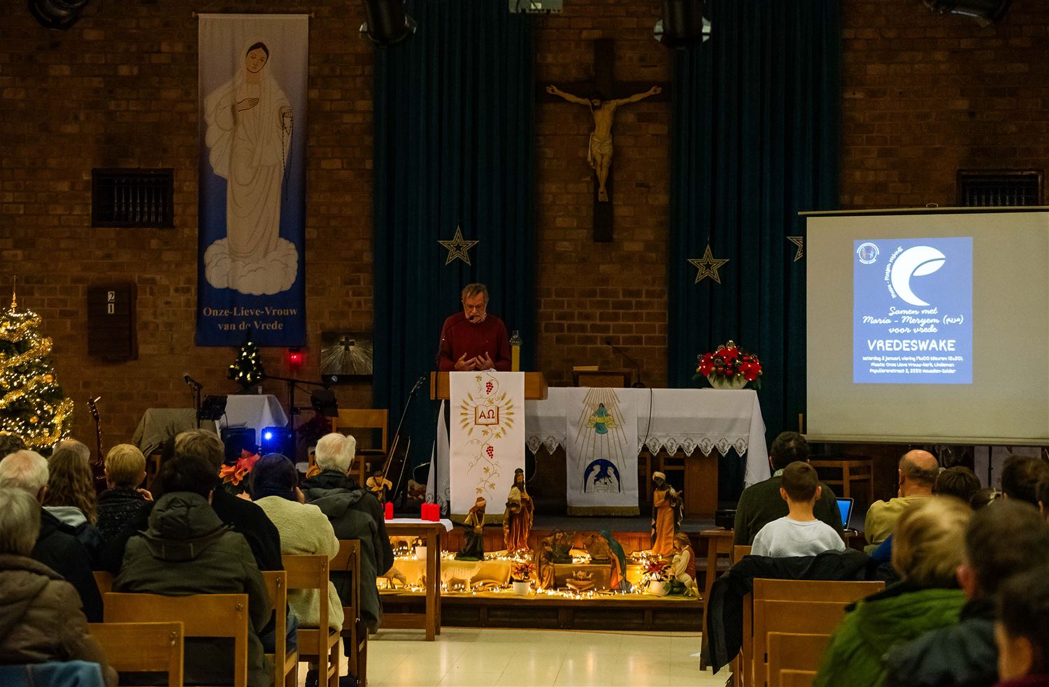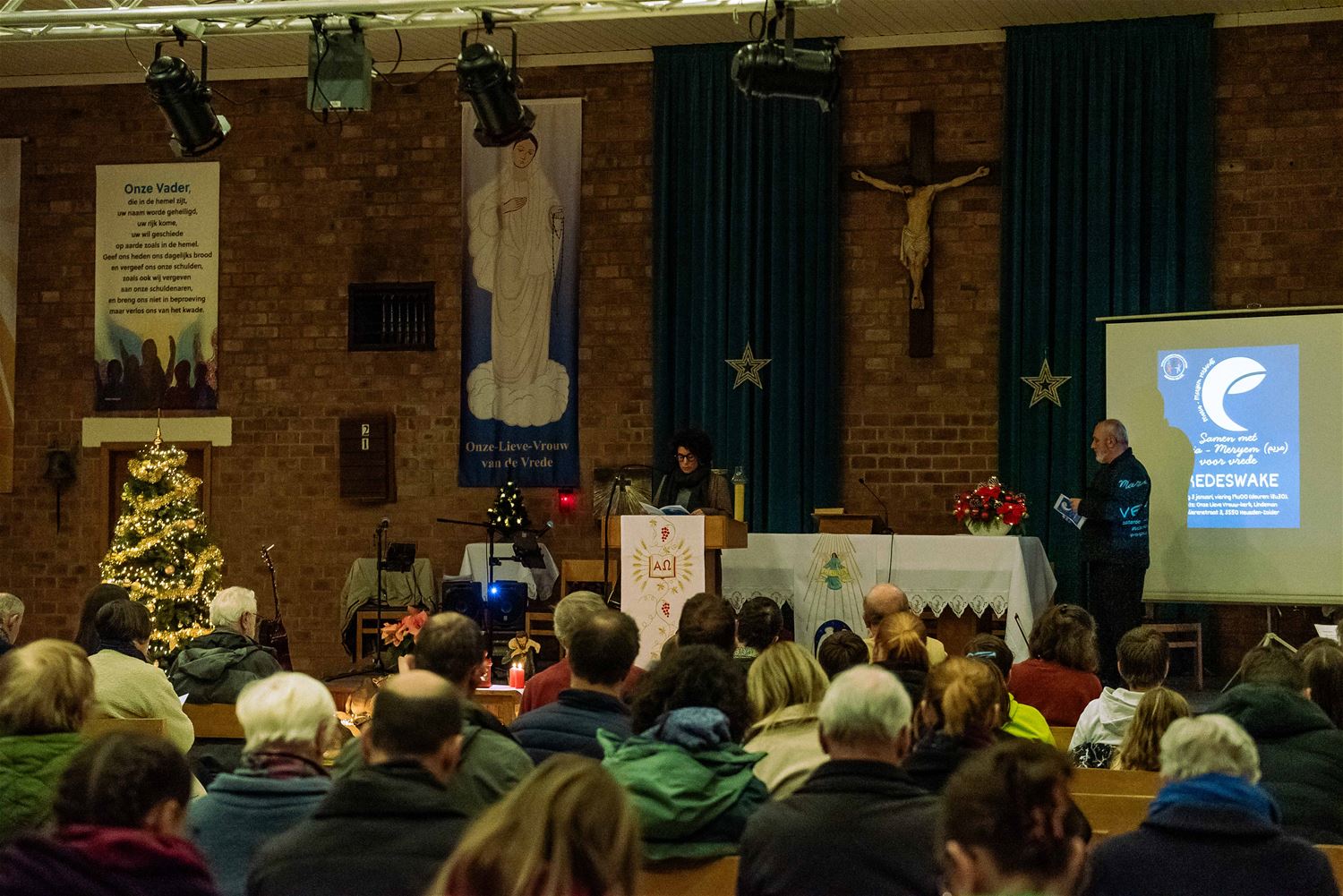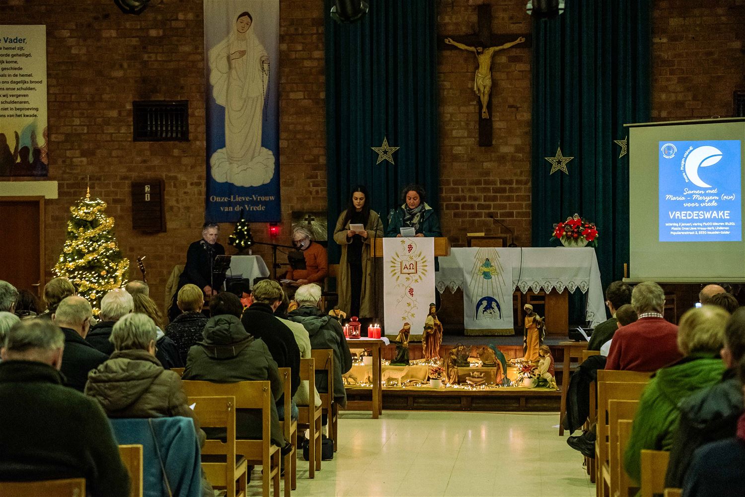 De OLV kerk van Lindeman was goed gevuld voor de jaarlijkse vredeswake die in het teken stond van ‘Samen met Maria-Meryem voor vrede’. Christenen, islamieten en alevieten kwamen samen om Maria te eren, een naam die in al deze godsdiensten voorkomt. Er werden teksten voorgelezen en er werd gezongen. Daarna werd er een gemeenschappelijke verklaring met een engagement voorgelezen en ondertekend. Elke aanwezige kreeg een aandenken, en na de vredeswake werd een receptie aangeboden door parochie. (foto’s Ann Jordens)87390