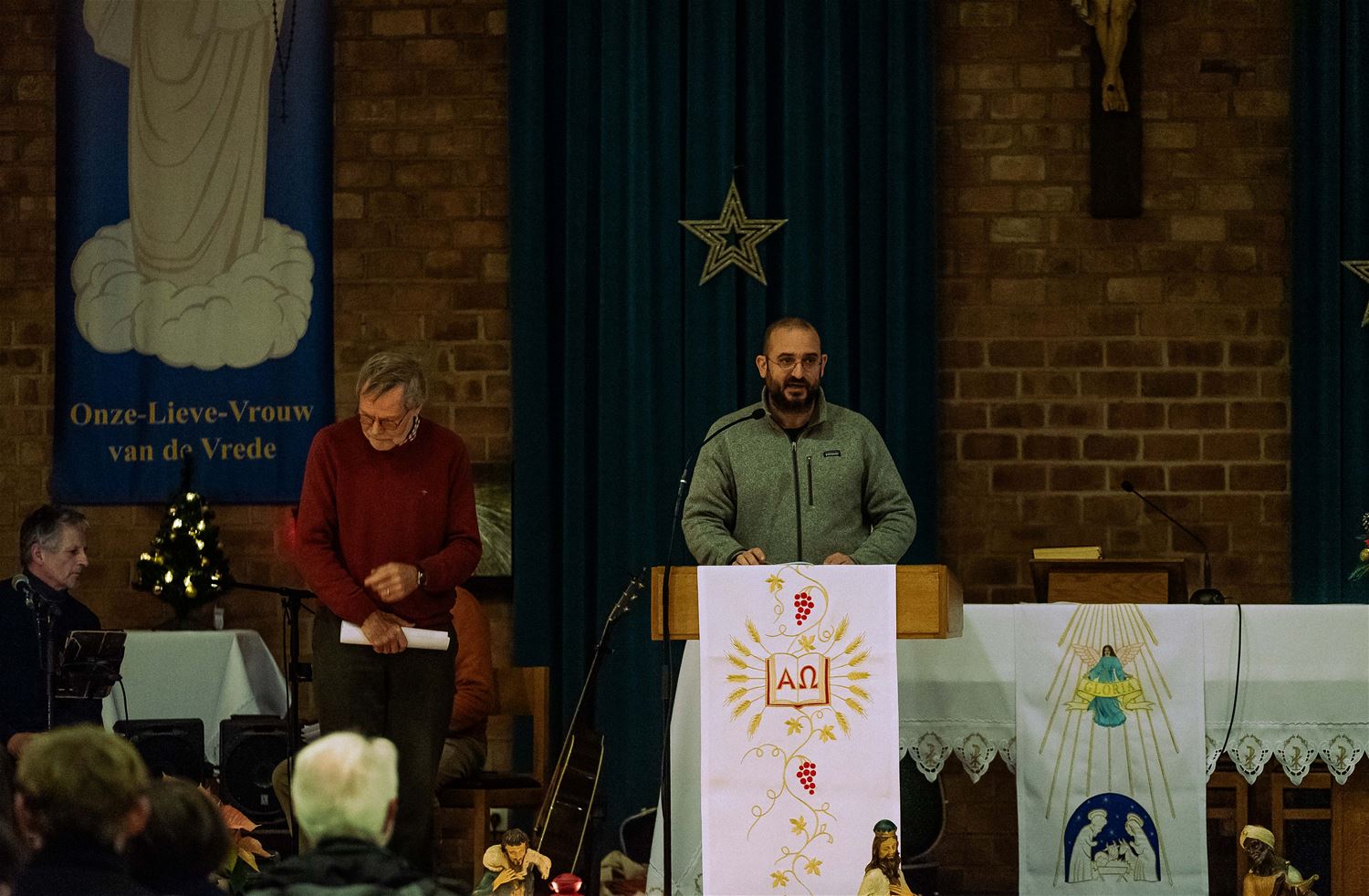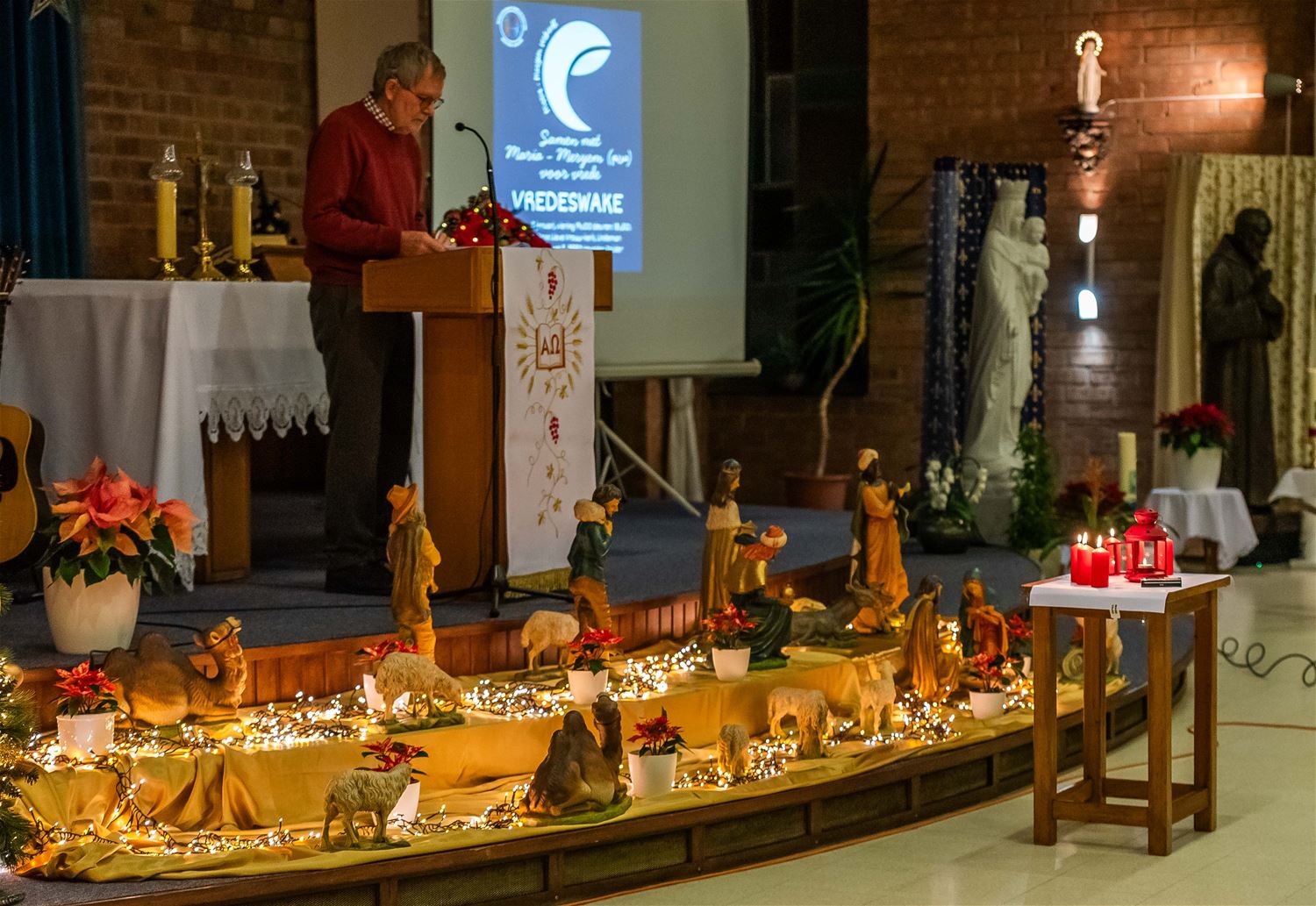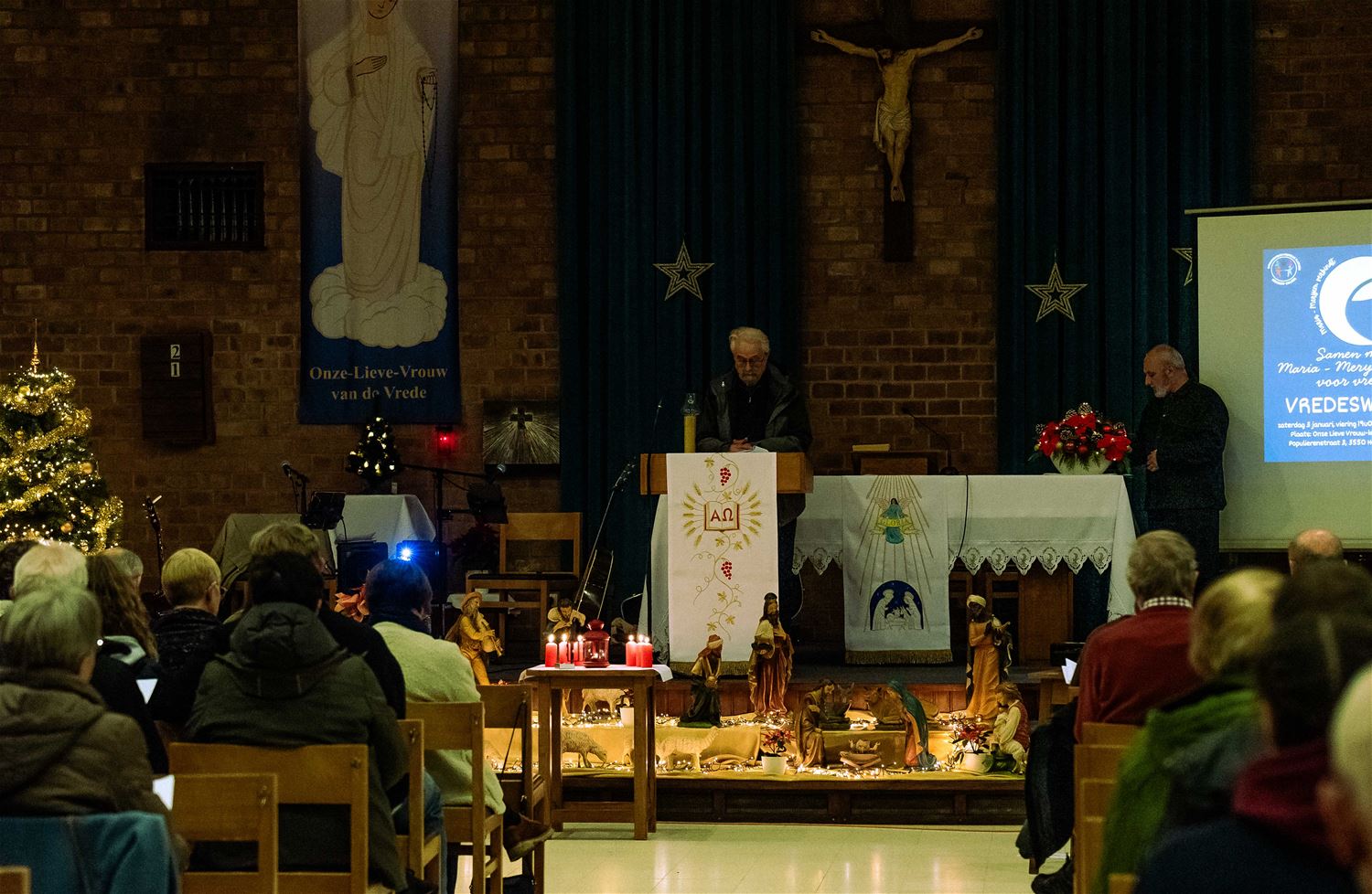 De OLV kerk van Lindeman was goed gevuld voor de jaarlijkse vredeswake die in het teken stond van ‘Samen met Maria-Meryem voor vrede’. Christenen, islamieten en alevieten kwamen samen om Maria te eren, een naam die in al deze godsdiensten voorkomt. Er werden teksten voorgelezen en er werd gezongen. Daarna werd er een gemeenschappelijke verklaring met een engagement voorgelezen en ondertekend. Elke aanwezige kreeg een aandenken, en na de vredeswake werd een receptie aangeboden door parochie. (foto’s Ann Jordens)87390