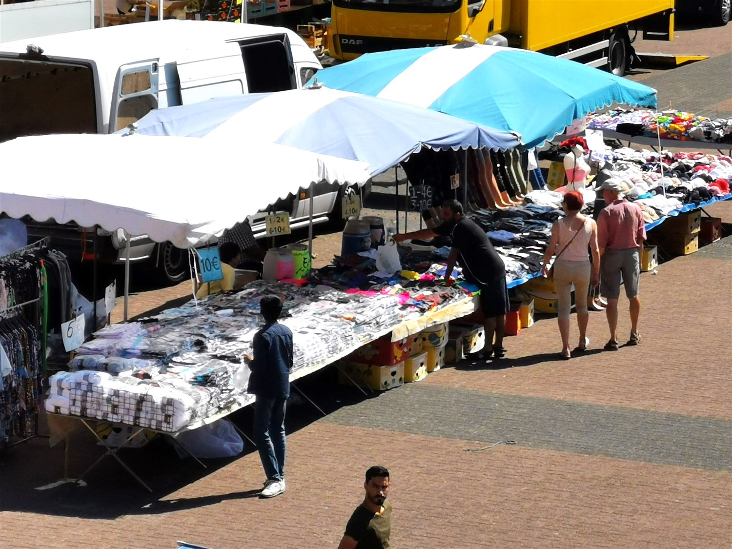 Op de Mijnmarkt heerste een vakantiesfeertje, maar het was vandaag zeker geen overrompeling. Ongetwijfeld speelde de hitte daarbij een rol. En moet het nog gezegd dat artikelen als ventilatoren en zomerkleding het goed deden?74857