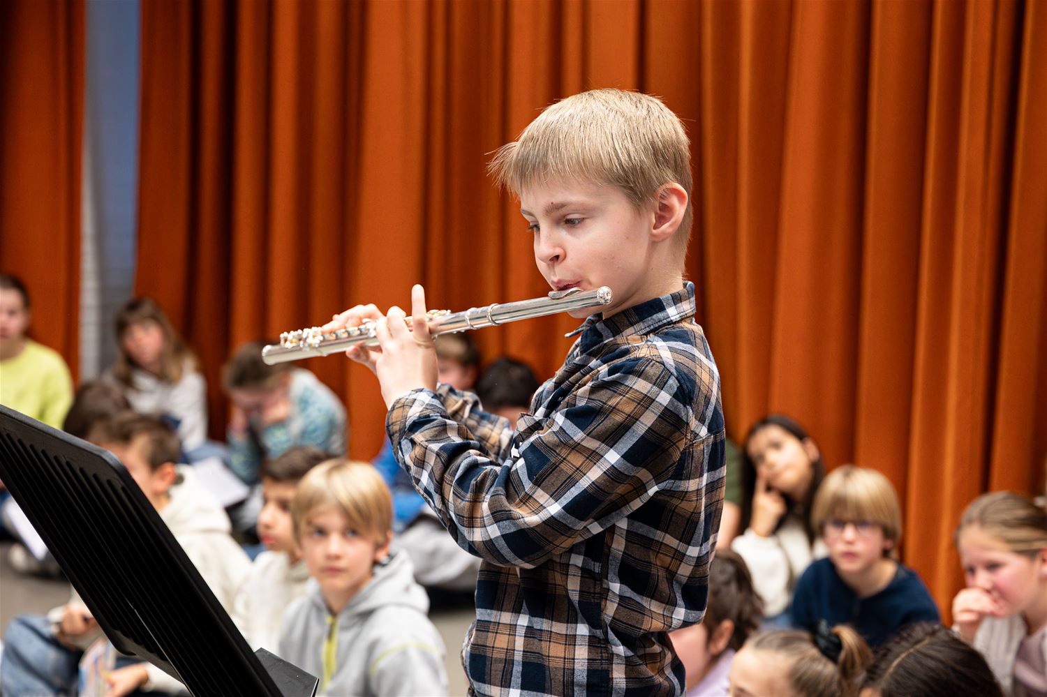 De poëzieweek kende een feestelijk moment deze voormiddag in de bibliotheek. Daar brachten leerlingen van de lokale afdeling van de Academie voor Woord en Muziek een programma rond het centrale thema ‘Metamorfose’. Ze speelden muziek, zongen, dansten en sloten af met ‘Vrolijke Vrienden’. Het zaaltje was volgelopen met vooral ouders en grootouders, en die zagen en hoorden dat het goed was. (foto’s Roman Martyka)87653