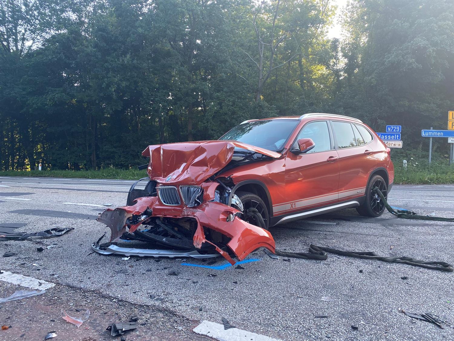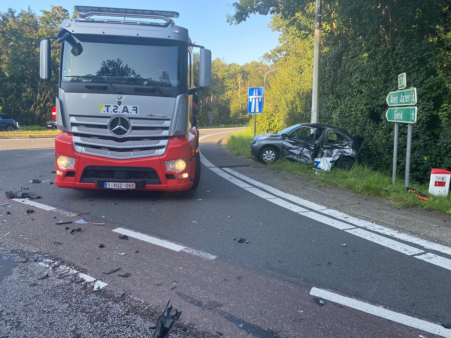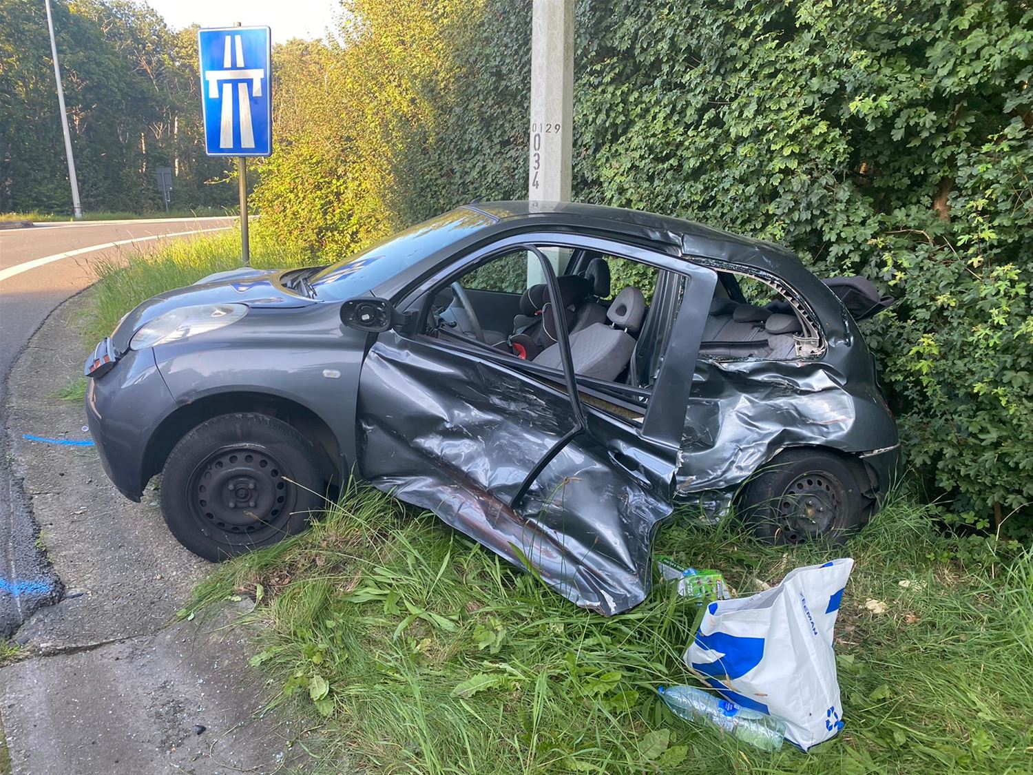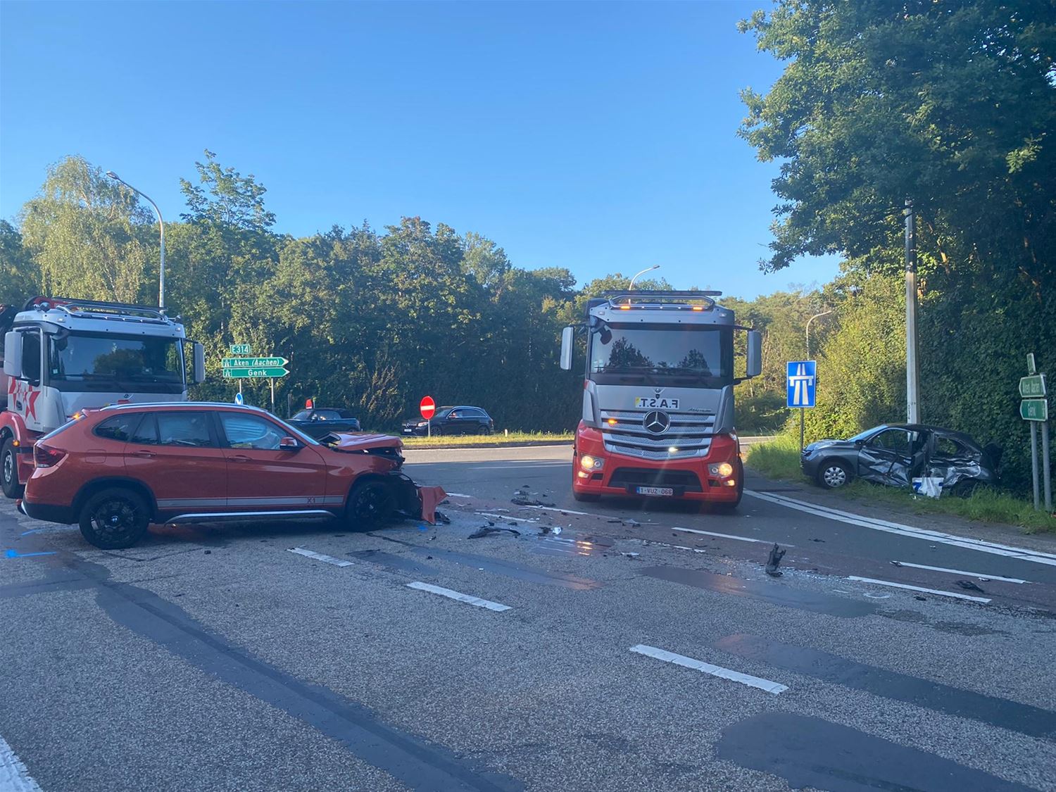 Vanavond is een zware botsing gebeurd op het kruispunt van de Terlaemenlaan en de Westlaan. Twee wagens knalden op elkaar en werden weggeslingerd. In één auto raakten en vrouw en kind gewond en moesten naar het ziekenhuis gebracht worden. Beide auto' s werden herleid tot schroot. (foto's Geert Schops)