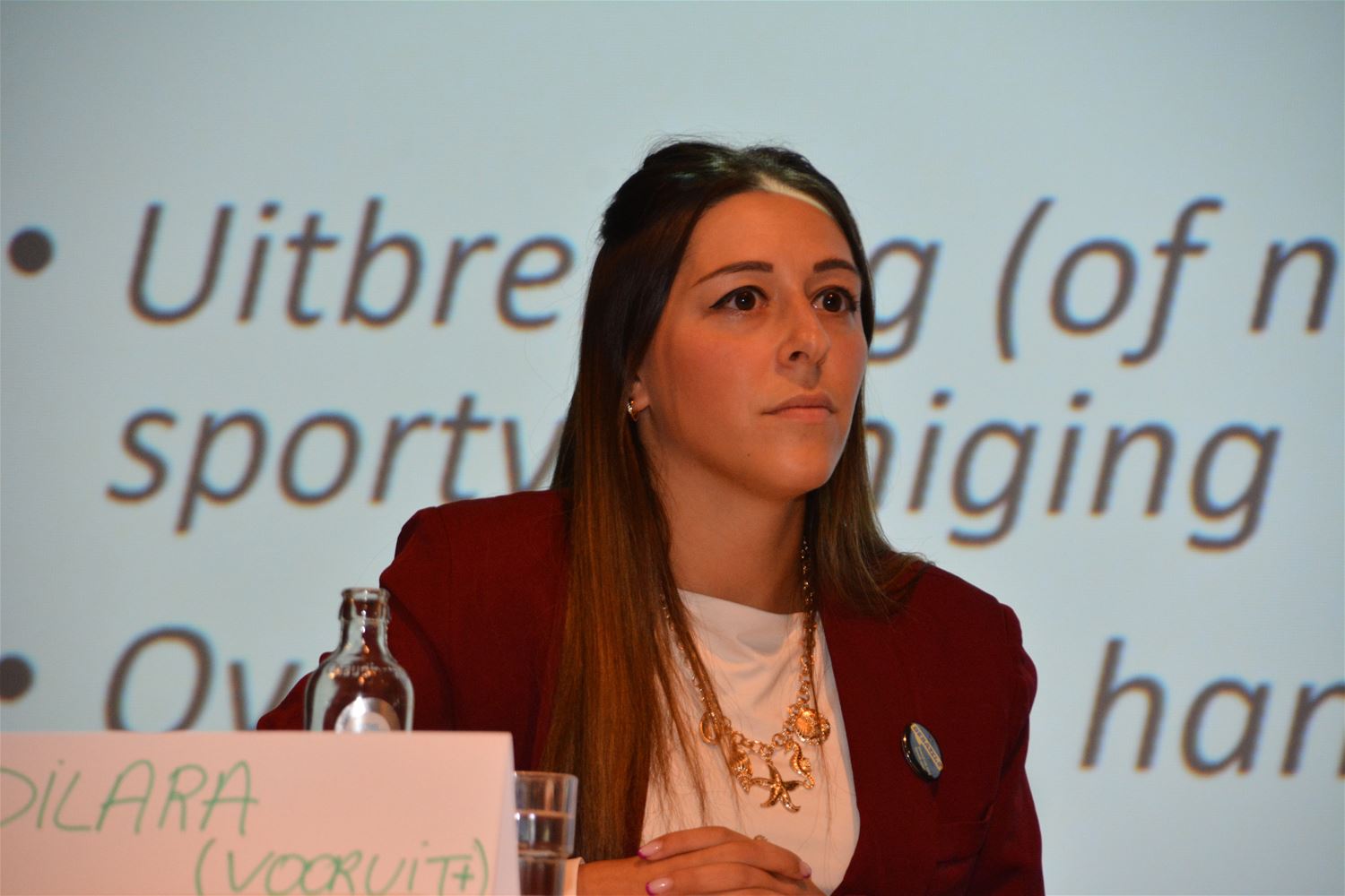 In de Franciscuszaal van het college organiseerde de jeugdraad vanavond het Debattle, een verkiezingsdebat over items die de jongeren zelf naar voor hadden geschoven. De meeste partijen hadden daarvoor een jongerenkandidaat afgevaardigd zoals Dilara Raemaekers (Vooruit) , Lauren Leyssens (N-VA), Gilles Vanoppré (Vlaams Belang), Britt Custers (GOED) en Yasin Gül (NeXt). Na het welkomstwoord van afscheidnemende schepen van Jeugd Dirk Schops, konden ze elk kort hun partijstandpunt verkondigen over items uit het memorandum van de jeugdraad met betrekking tot jongeren in de openbare ruimte, het verenigingsleven en jongeren in de samenleving. Blikvangers waren onder meer fietsknelpunten en speelplaatsen, die de aanwezigen vooraf op een grote kaart hadden aangeduid. In een stellingenspel moesten de panelleden kleur bekennen bij een tiental stellingen. Over het algemeen werden vrij duidelijke standpunten verkondigd. Er was een behoorlijke opkomst, jammer genoeg lieten vooral de onafhankelijke jongeren - die niet bij een partij horen - het afweten. (foto's Marina Poelmans)83173