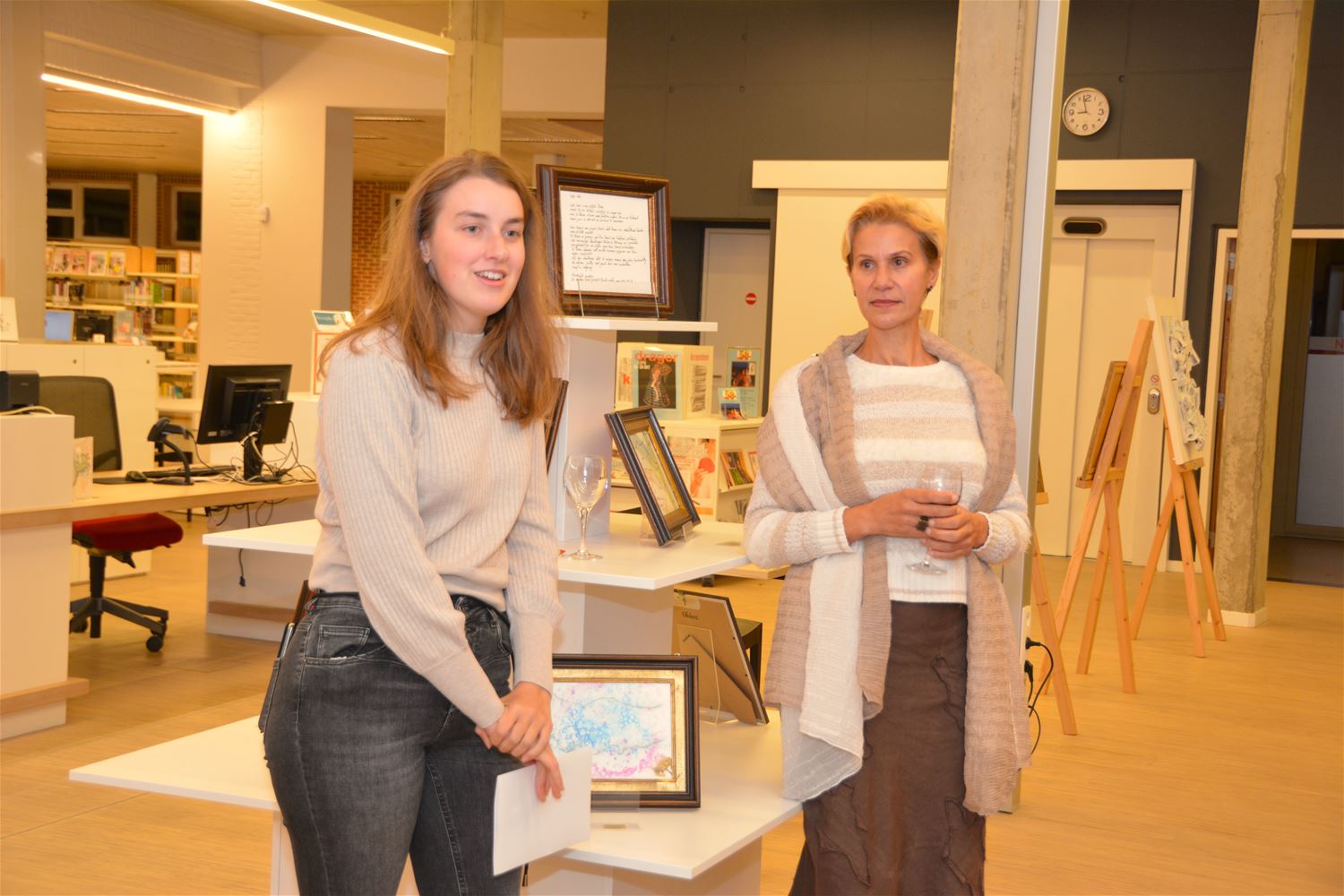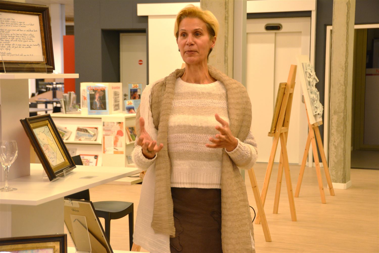 In de bibliotheek is vanavond de tentoonstelling 'Wabi Sabi' geopend. Niets is eeuwig. Niets is af. Niets is perfect. Met deze Japanse filosofie gingen de kunstenaars van kunstkringen Filokalia, Kunst-Werk en Hazet aan de slag. 18 kunstenaars leverden 35 kunstwerken af, zeer divers werk dat schoonheid uitstraalt, maar tegelijk geen volledigheid, perfectie of onvergankelijkheid pretendeert. Sarah Vermeer van de bibliotheek kaderde de expo in de bredere werking en de tentoonstellingstraditie van de bib. Kunstenares Laila Abdelmalek gaf meer uitleg bij de kunstkringen en hun samenwerkingsverband rond deze expo. 'Wabi Sabi', kun je nog tot 30 november bezoeken tijdens de openingsuren van de bibliotheek. 78995