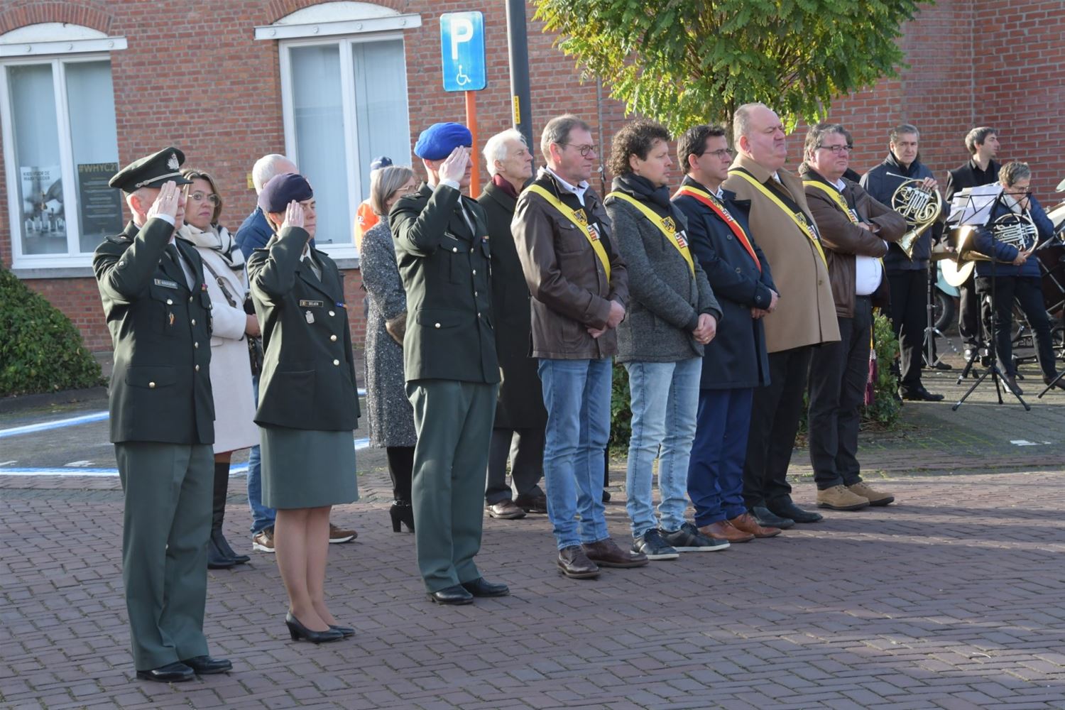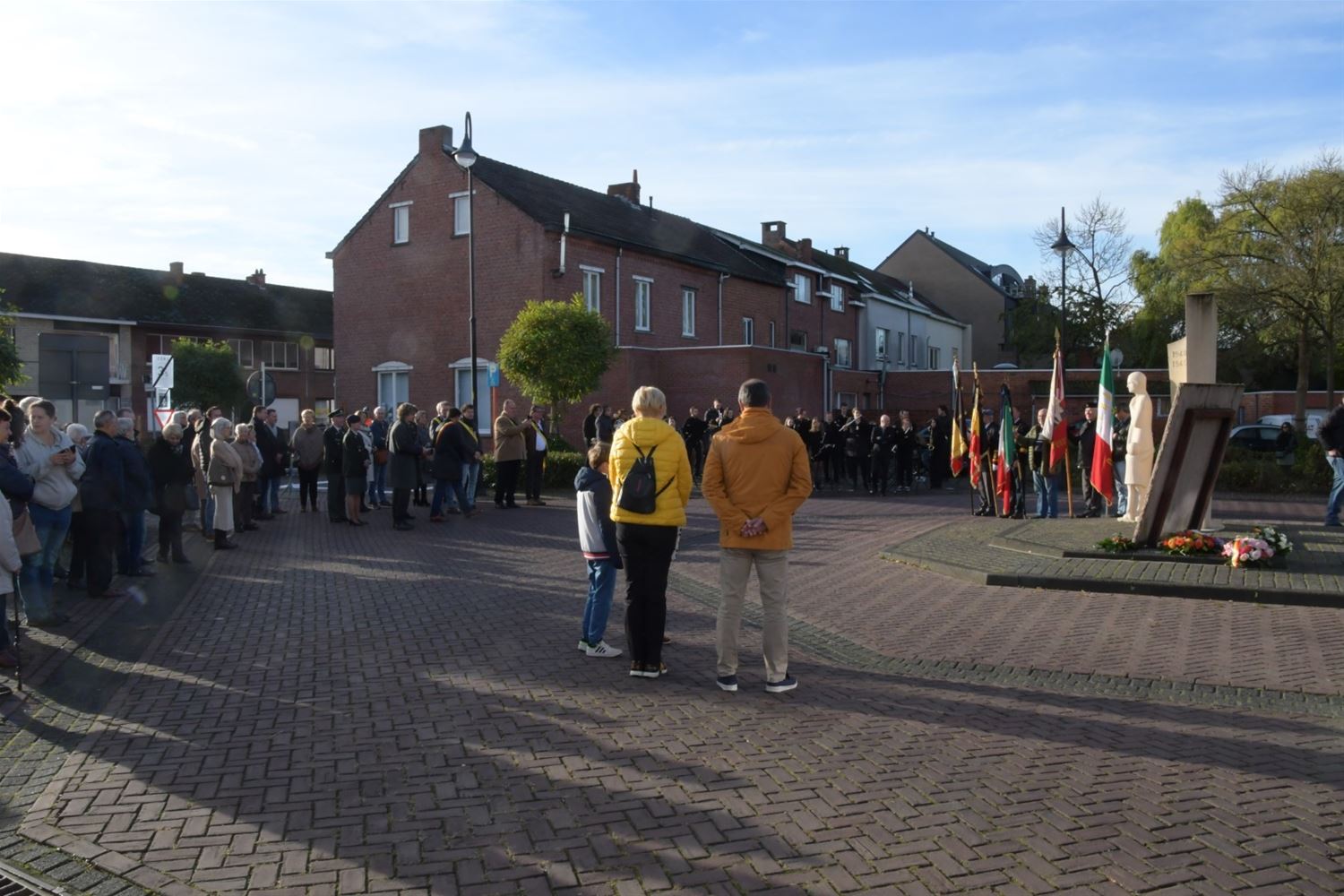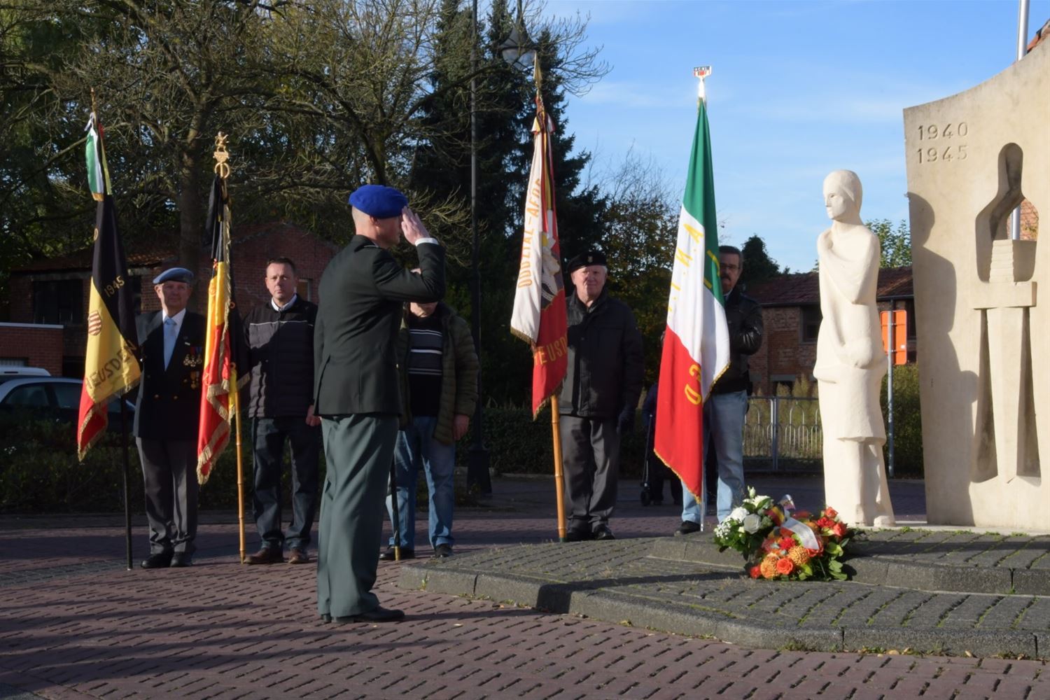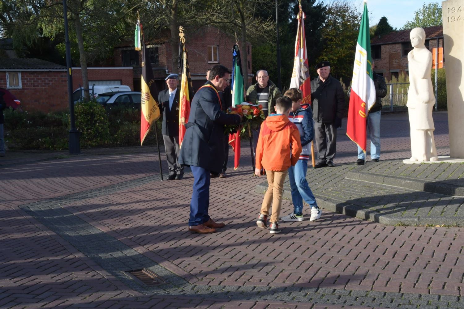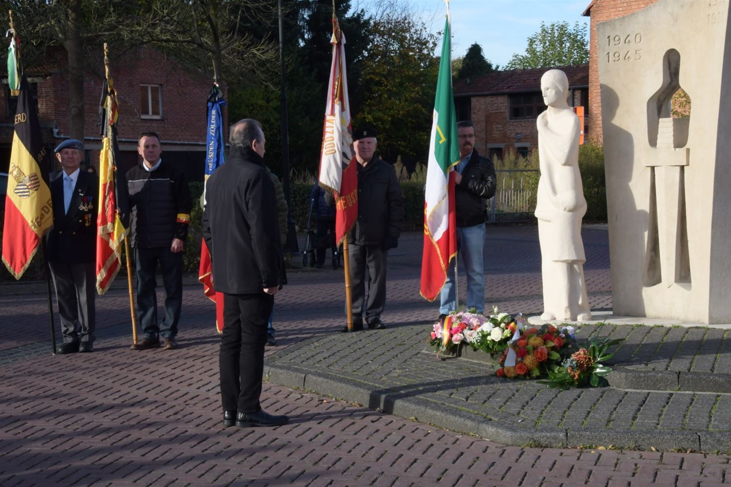 De hoofdplechtigheid voor de 11 november-viering had vandaag plaats in Heusden-Centrum. Na de eucharistieviering verplaatste het gezelschap zich naar het monument voor een bloemenhulde door de burgemeester, de oudstrijdersverenigingen en de petereenheid van het leger. Leerlingen van De Brug, die ook al hun rol hadden in de eucharistieviering, brachten de bloemen aan. Pastoor De Waegeneere sprak een gebed uit en Koninklijke Harmonie De Heidegalm speelde de hymnes. Later volgde ook nog een bloemenhulde aan het monument in Zolder. Op deze Wapenstilstand worden niet alleen de slachtoffers van beide wereldoorlogen herdacht maar ook de Belgische slachtoffers tijdens vredesmissies. (foto's Michiel Reynders)75799
