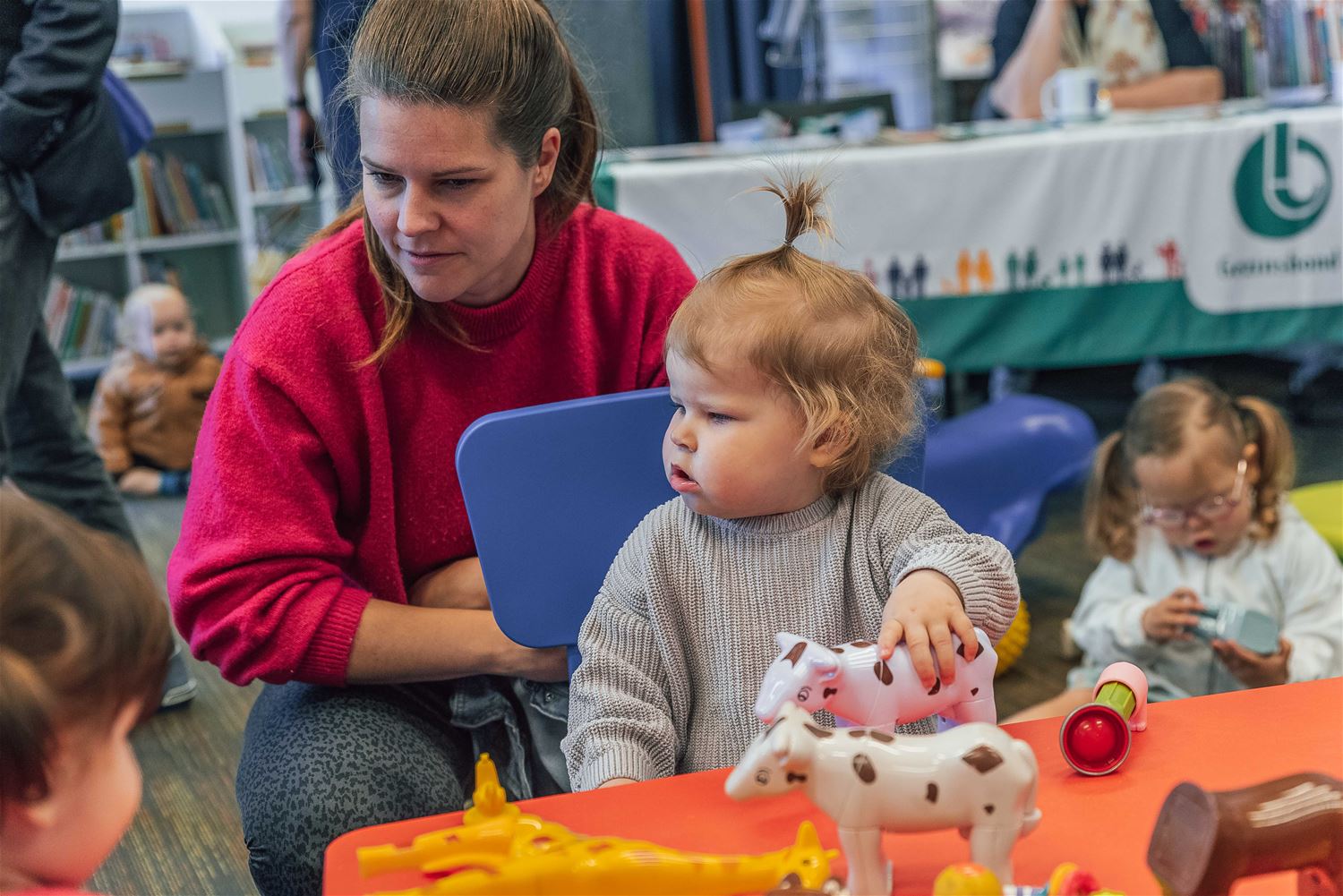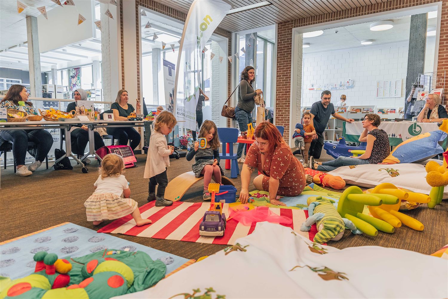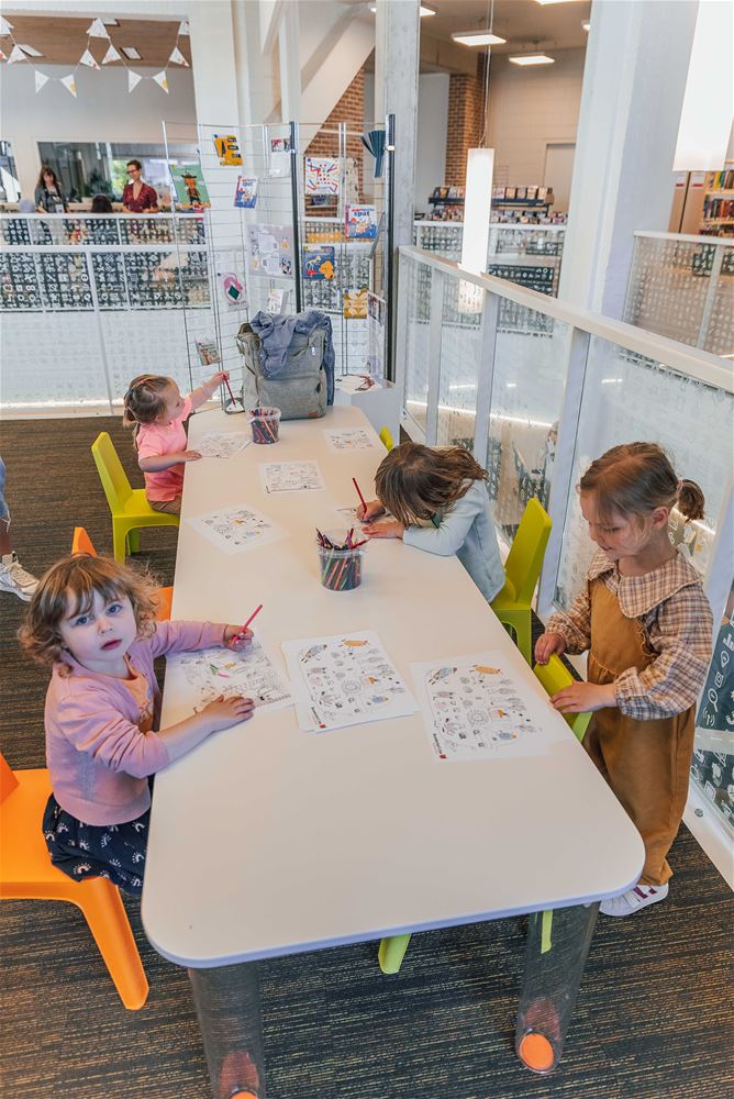 Het zat deze week nog prominent in het nieuws, het begrijpend lezen gaat er op achteruit bij de jeugd. De Boekstartdag die de bibliotheek vanochtend - net als een 100-tal andere in Vlaanderen - organiseerde, kon dan ook niet op een symbolisch beter moment komen. Via workshops en info werden de allerkleinsten en hun gezin geconfronteerd met mooie boekjes, vertelkoffertjes, leuke spelletjes, enz. Aan de ingang konden ze knuffelen met allerlei levende dieren, die trouwens heel vaak het onderwerp van kinderboekjes vormen. Hopelijk nemen ook de ouders de positieve leesboodschap mee naar huis, maar uiteraard, wie met zijn kind naar zo'n initiatief afzakt, is al een stuk geëngageerd en geïnteresseerd. (foto's Ann Jordens)77565