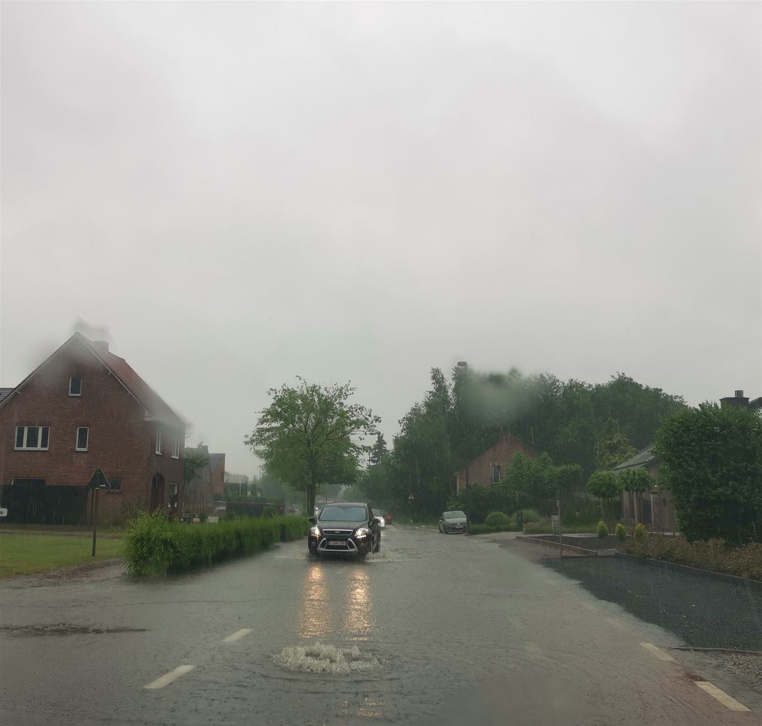 Op alsmaar meer plaatsen in Heusden-Zolder zorgt de regen voor wateroverlast. Zo staat de Belikstraat voor een groot deel blank. (foto's). De Vogelsancklaan is ontoegankelijk bij de op- en afrit aan de Kleine Lust. Aan de Boekterheide worden door vele water de putdeksels omhoog gedrukt, wat tot gevaarlijke toestanden leidt. (foto rechtsonder) 73257