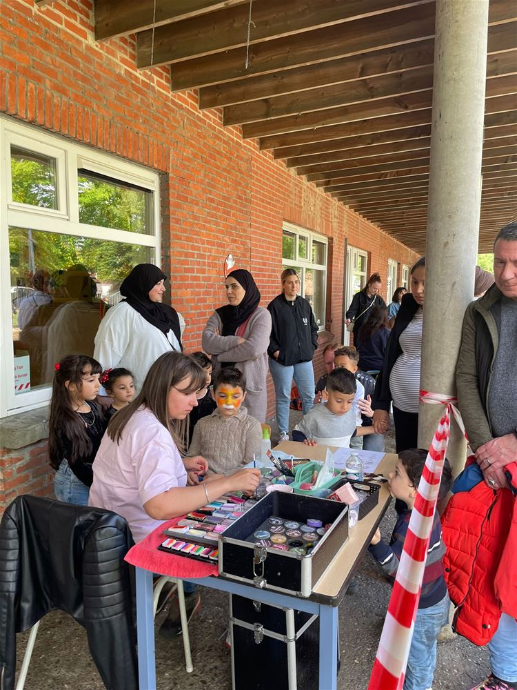 Ruim 800 kinderen en volwassenen zijn deze namiddag afgezakt naar Lindeman voor het Wereldfeest. De weergoden zijn dezer dagen in een gemene bui maar ze waren wel zo sportief om te wachten tot het feest was afgelopen - jammer voor de opruimers - om de hemelsluizen open te zetten. En zo werd het dan toch nog een zonnige editie, blijkbaar de succesrijkste tot nu toe. De kinderen konden genieten van spelletjes, animatie, schmink, djembéspelers en liefst 20 workshops creativiteit en duurzaamheid als leidraad. Er waren heel wat drankjes en vele lekkere hapjes geschonken door de moeders uit de wijk. Trouwens, terwijl de kinderen zich amuseerden genoten de ouders ook van een terrasje. En ook al beleven we een sombere periode, in de wijk Lindeman was het een namiddagje hoogzomer.81015
