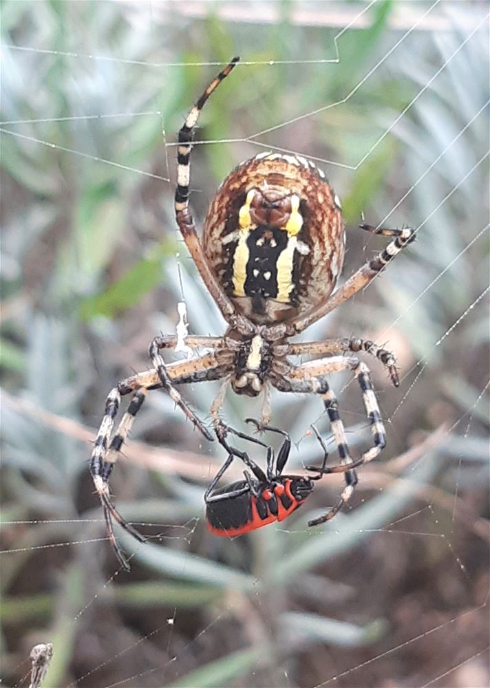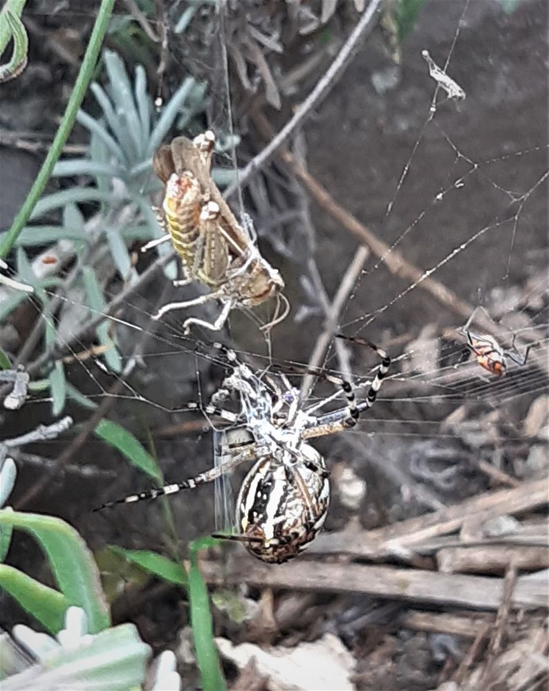 Stefan Was kon in zijn tuin een wespenspin filmen die een sprinkhaan in haar web krijgt en meteen inpakt als een mummie. Let wel, het filmpje lijkt versneld, maar is wel degelijk in normale snelheid opgenomen, zo bliksemsnel opereert de spin. Onder ook nog foto's van onder meer een wants die er eveneens moest aan geloven. 75008