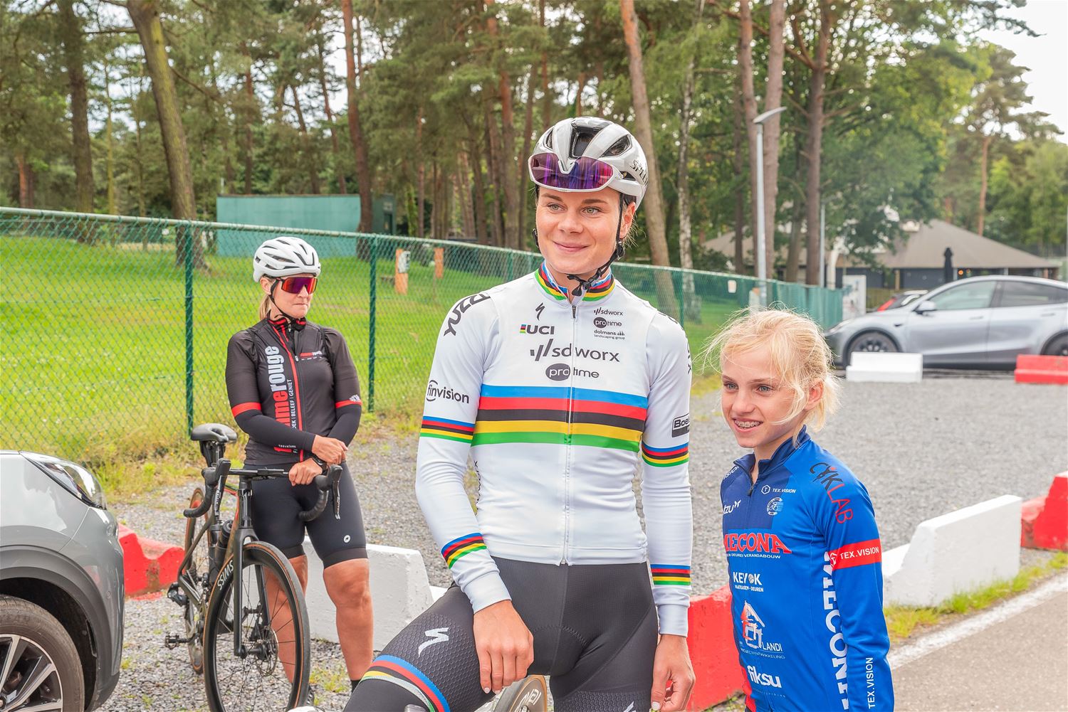 Voor de dames die de afgelopen maanden de opleidingen en trainingen voor het project 'Women on Wheels' volgden, ging vanavond een droom in vervulling. Op de fiets voor een tocht door Heusden-Zolder samen met Lotte Kopecky. Bij de start werd de wereldkampioene al door piepjonge wielrensters in spé aangeklampt voor een handtekening. Waarop ze met plezier inging, want de promotie van de wielersport bij de jongedames is zowat een missie voor Lotte. Daarom dat ze ook met plezier de toer door Heusden-Zolder maakte, met bevoorradingsstop aan ZLDR Luchtfabriek. Opnieuw ook weer een promotie voor het EK wielrennen in september. Maar de belangrijkste uitdaging is om de 'Women on Wheels' op de fiets te houden en hun voorbeeld als een olievlek door sportief Heusden-Zolder te laten vloeien. De tocht met Lotte is alvast een extra stimulans. (foto's Ann Jordens)81198