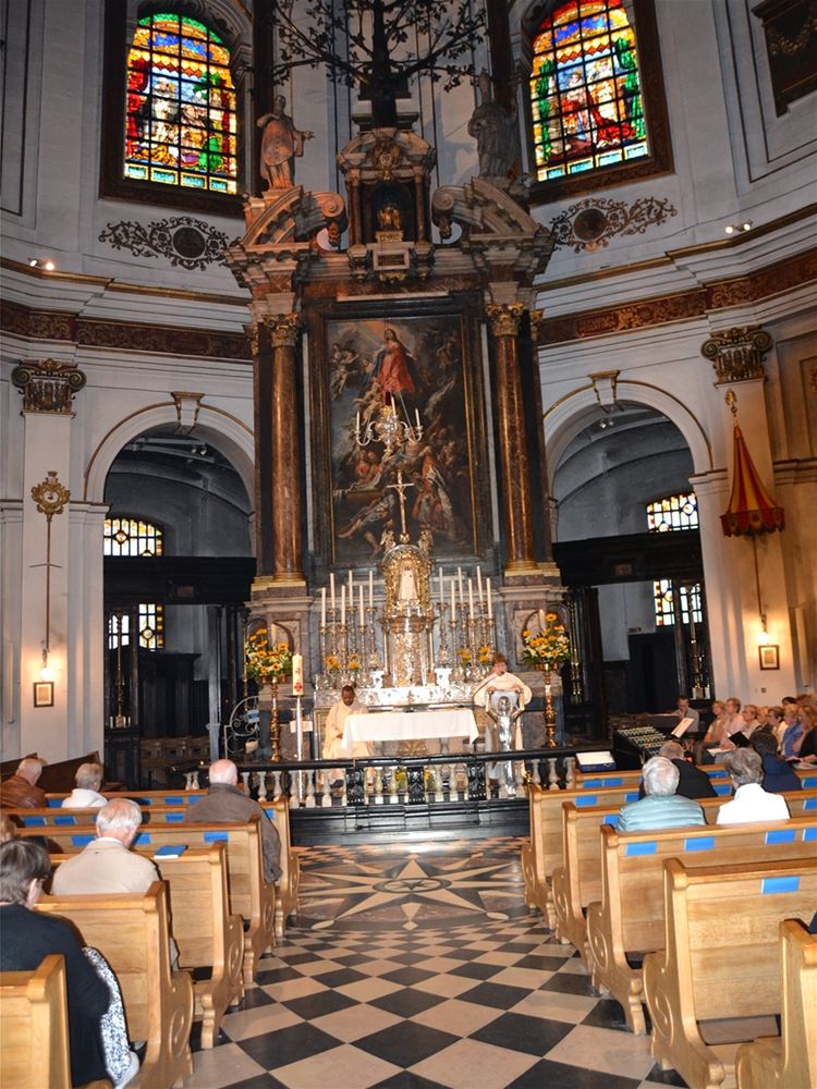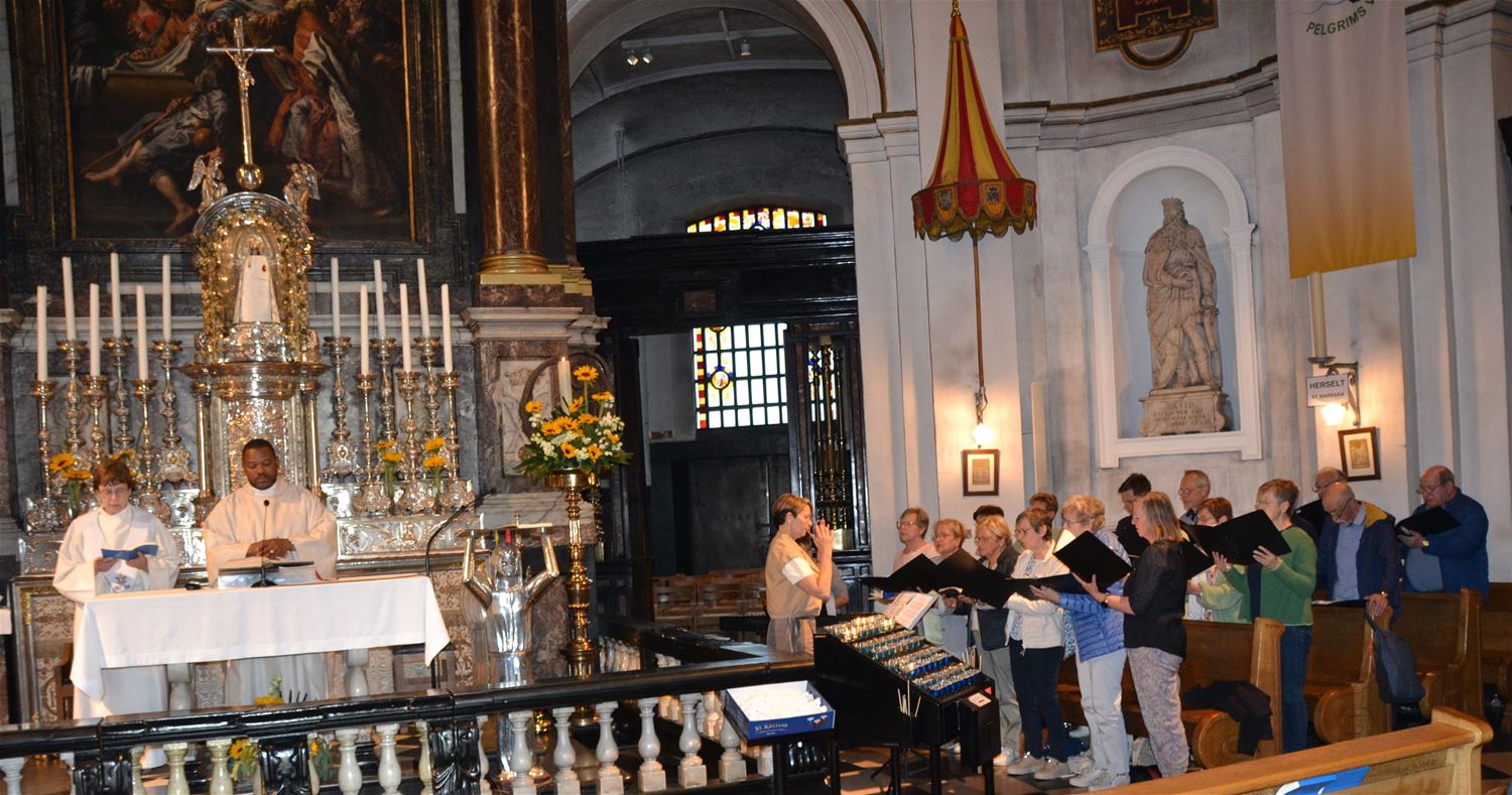De federatie Zolder hield gisteren haar jaarlijkse pelgrimstocht naar de Basiliek van Scherpenheuvel. De organisatie lag in handen van het parochieteam van Viversel. Een 50-tal gelovigen uit alle Zolderse parochies nam deel aan de uitstap. In de basiliek gingen pastoor Ghislain en parochie-assistent Brigitte voor in de mis. Voor de vocale begeleiding zorgde het zangkoor van Viversel en Bolderberg met Wim Van Laer op het orgel. (foto’s Lode Beylemans)85476